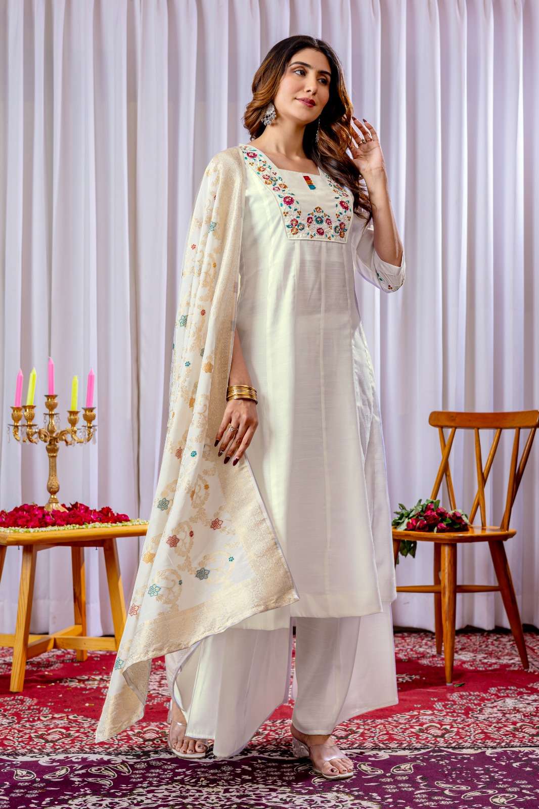 👉🏻 *Dupatta*👇🏻 Fabric :- Maslin Silk Work :- jacquard Mina Work Length :- 2.25 Meter Package Contains :- Kurti, plazo, Dupatta Weight: 0.750 kg