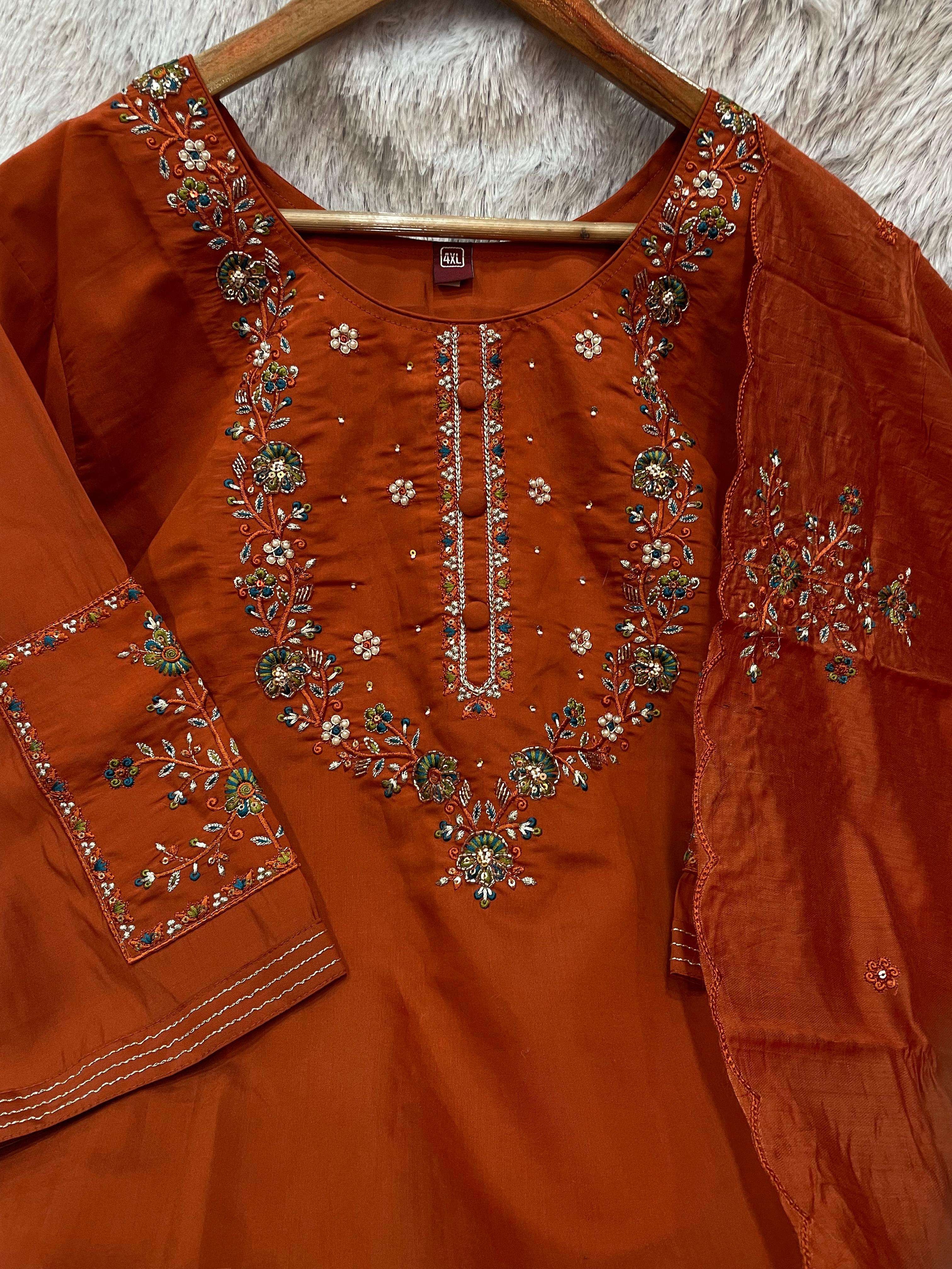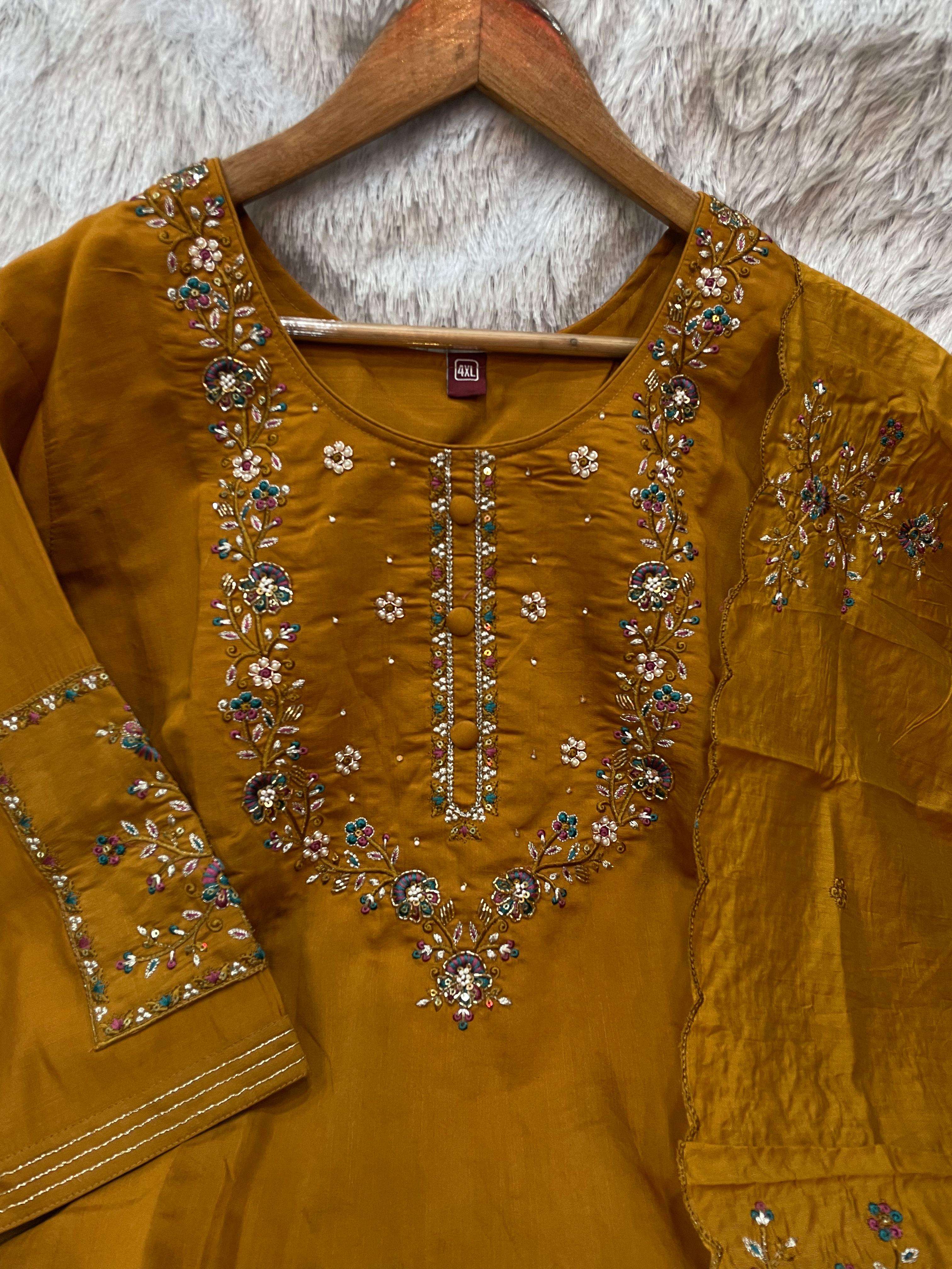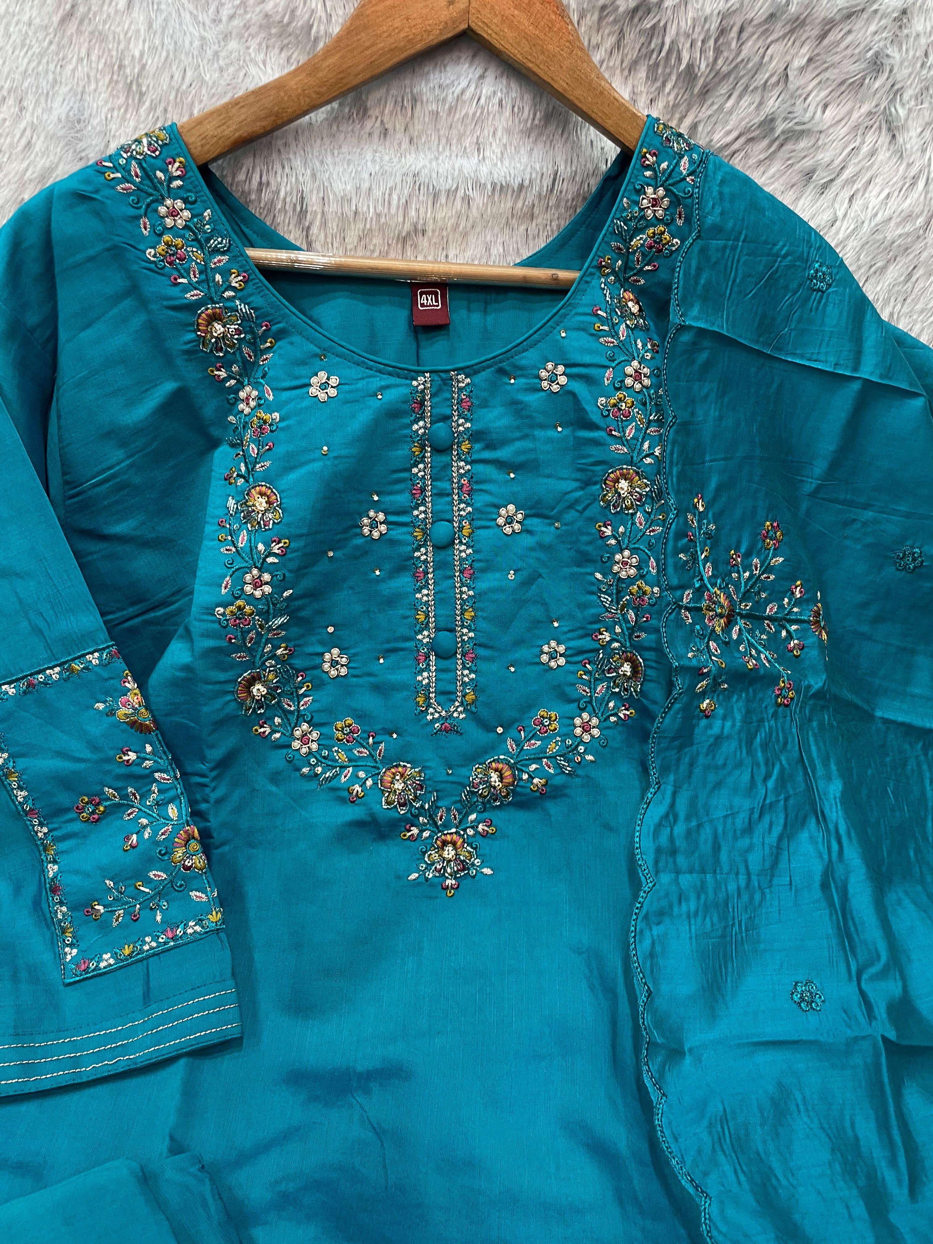 *Pant (Stitched)* Fabric :- Marina Silk Work :- Multi Embroidery Thread Work Length: 38”