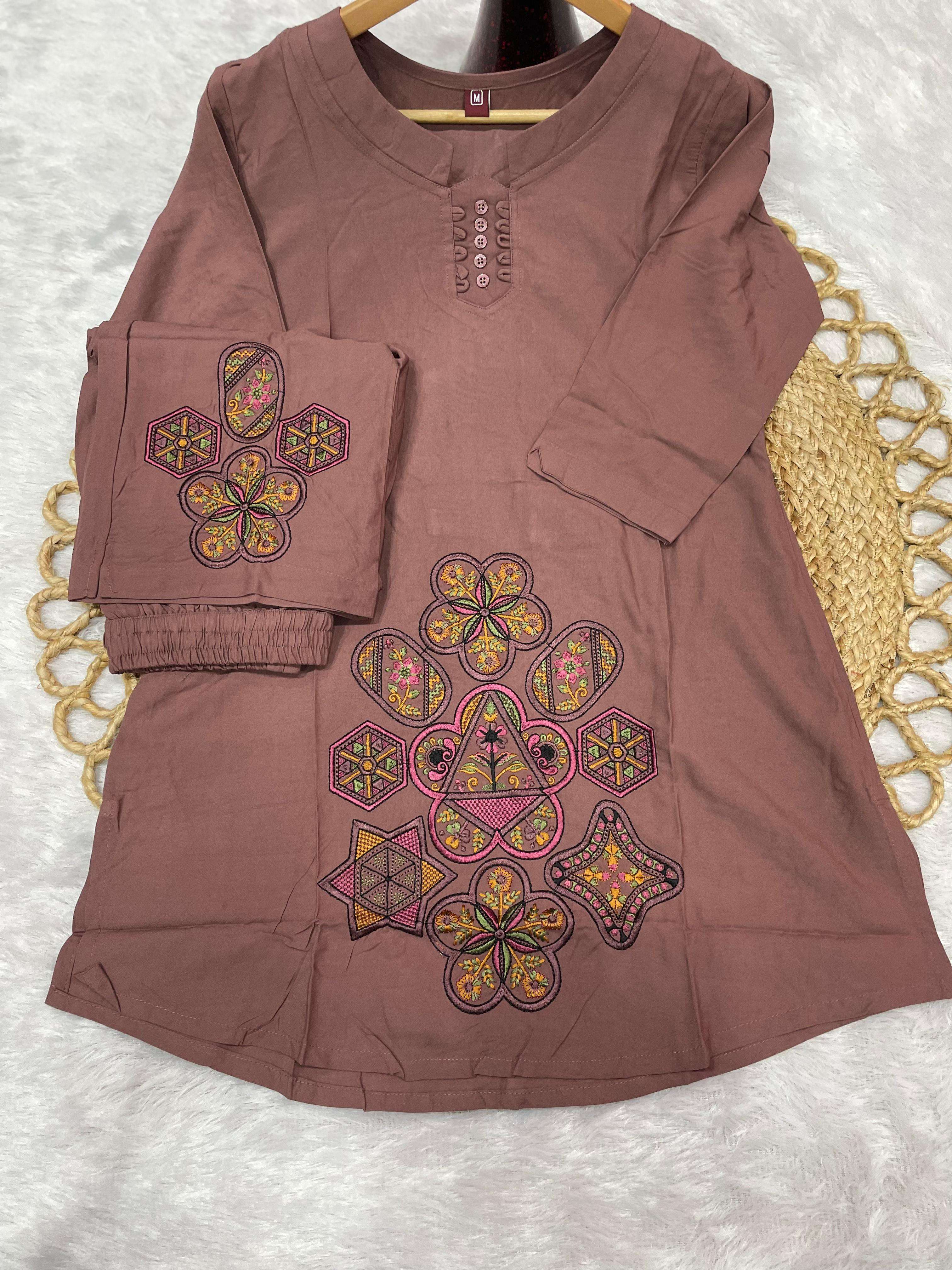 👖 Pant Details • Fabric: Heavy Rayon • Work: Multi Embroidery Thread Work • Style: Straight-Cut Pant for a Sleek Look • Length: 39”