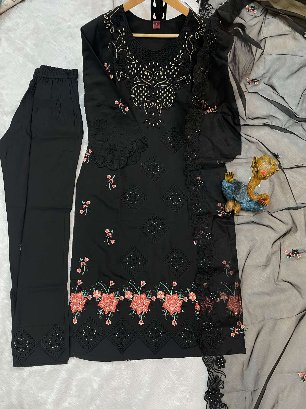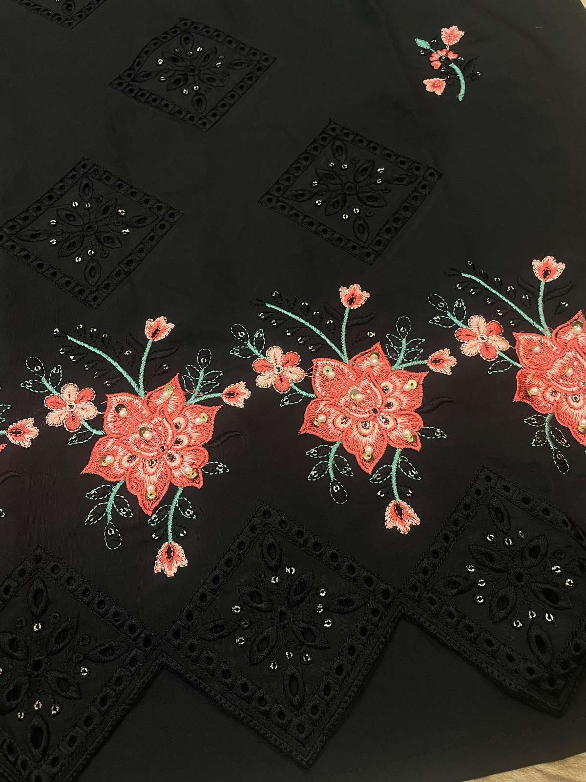 *👖 Pant Details 👖* ✔️ Fabric: Heavy Viscose Roman ✔️Work:- Boring Embroidery with Sequins ✔️ Length: 39” (Fully Stitched)