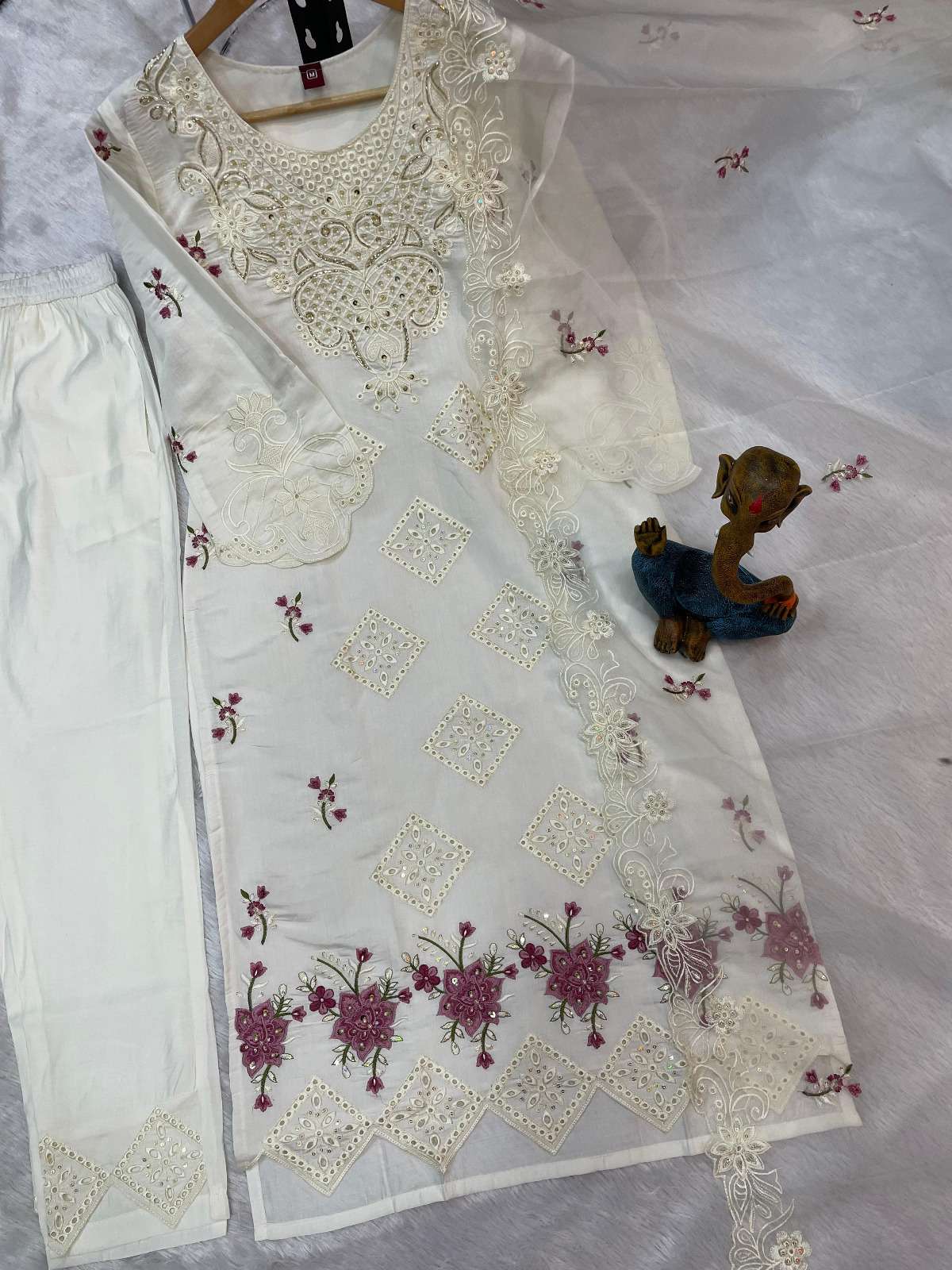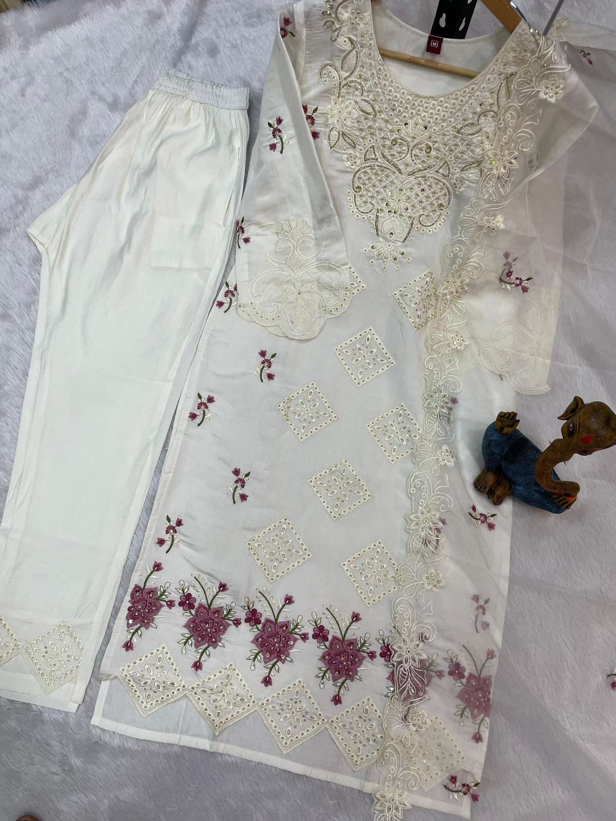 🧣 *Dupatta Details 🧣* ✔️ Fabric: Organza ✔️ Work: Heavy Embroidery with Sequins ✔️ Size: 2.25 mtr ⚖️ Weight: 650 gm