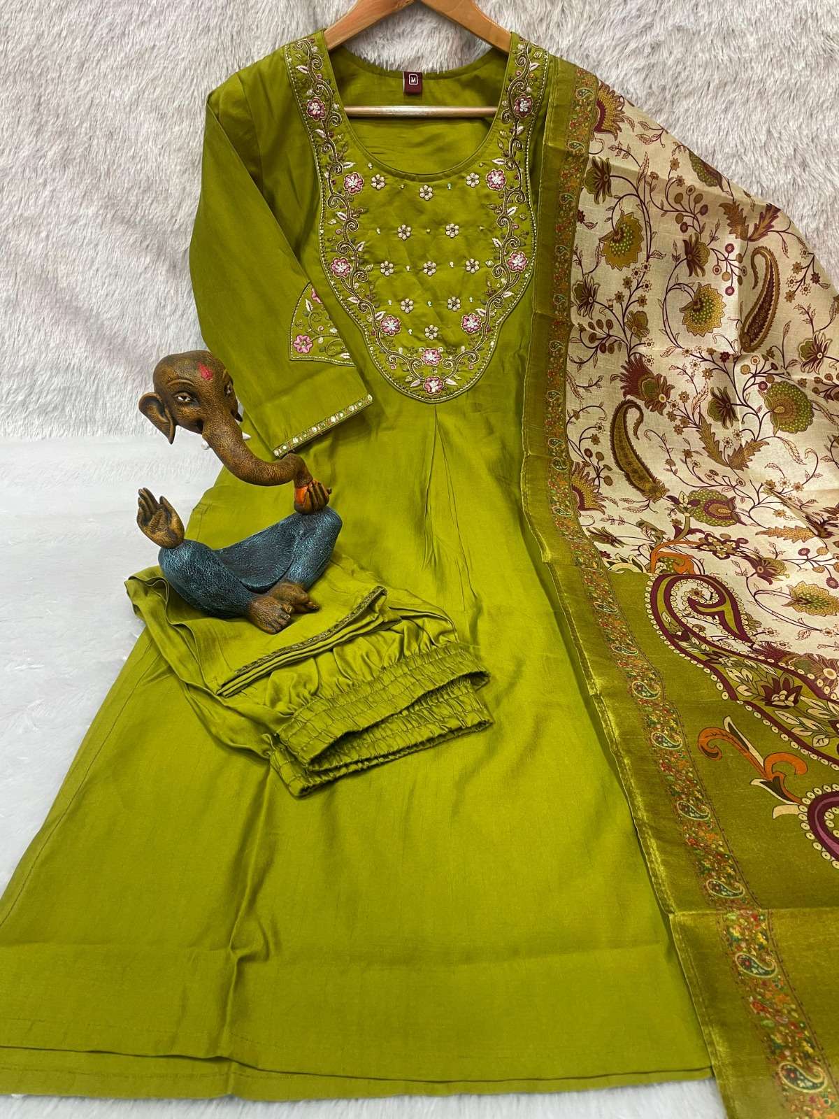 🧣 *Dupatta* • Fabric: Zarana Silk • Work: Elegant Digital Print • Length: 2.25 Meter 🎁 Package Includes: Kurti + Pant + Dupatta ⚖ Weight: 0.55 kg