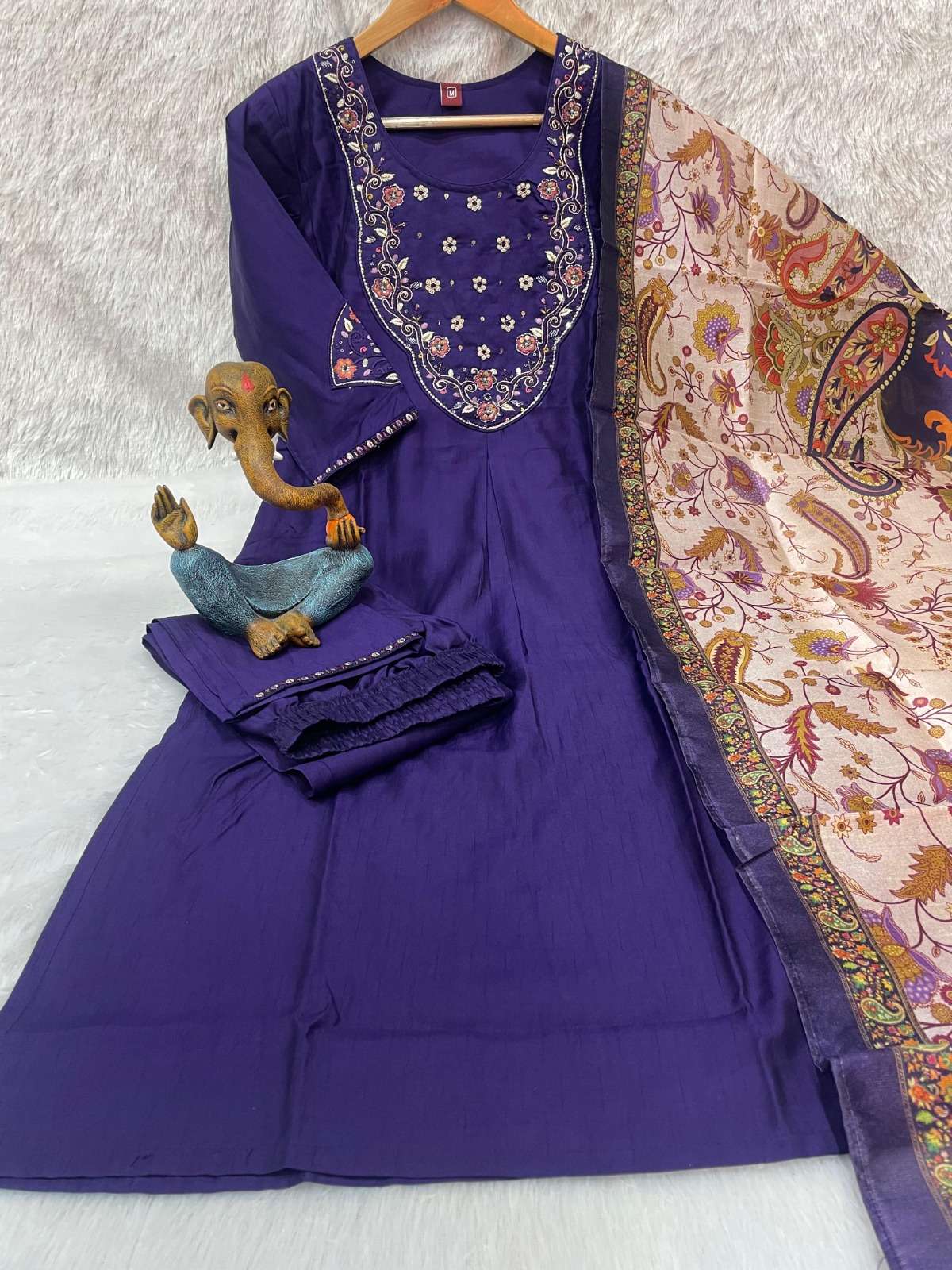 👖 *Pant (Stitched)* • Fabric: Marina Silk • Work: Multi Embroidery Thread • Length: 38”