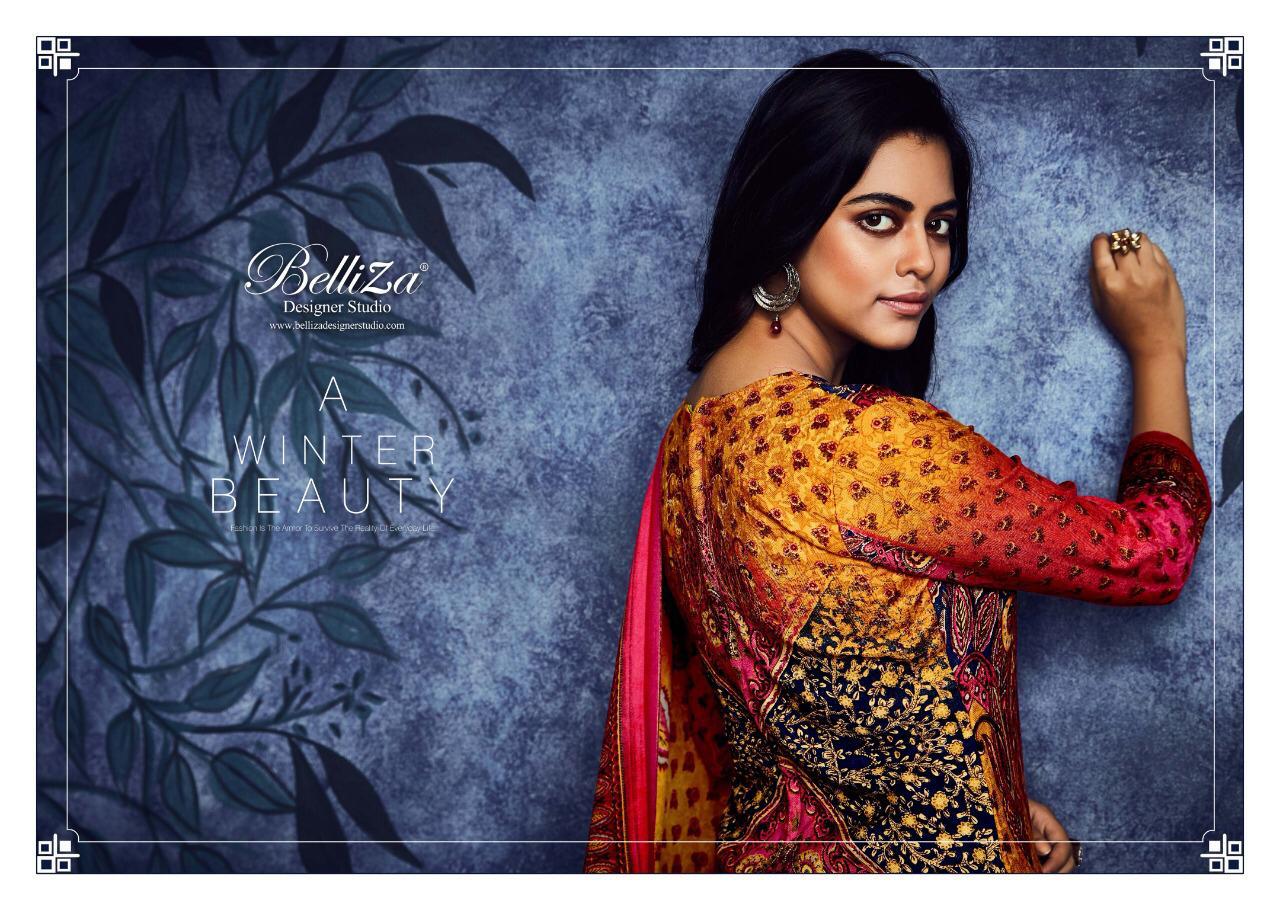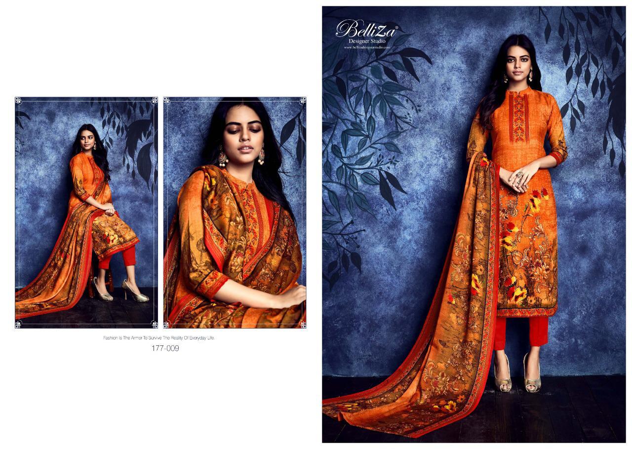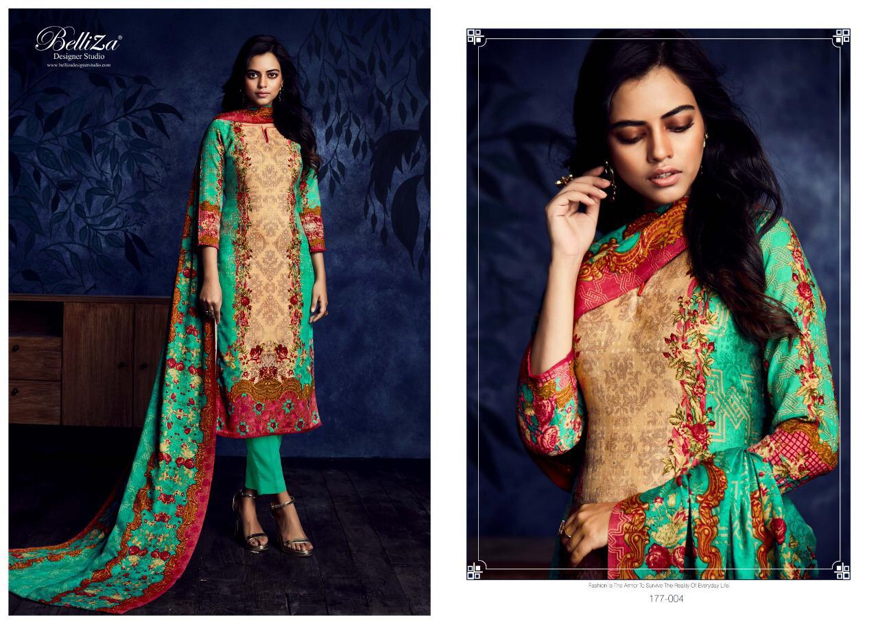 Al Marina By Belliza Deaigner Studio 177001 Series Pure Pashmina Digital Printed Salwar Kameez Catlog Wholesaler Surat