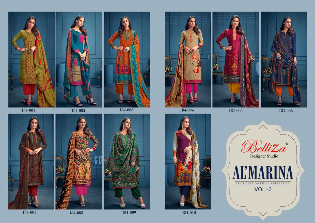 Buy Online Al Marina By Belliza Designer Studio 184001 Series Fancy Pashmina Digital Printed Salwar Kameez Catlog Wholesale Dealer Surat 10 Pcs of Full Catalogue at Wholesale Price. Looking for Al Marina By Belliza Designer Studio 184001 Series Fancy Pashmina Digital Printed Salwar Kameez Catlog Wholesale Dealer Surat Full Catalouge at Best Price? Buy Now Al Marina By Belliza Designer Studio 184001 Series Fancy Pashmina Digital Printed Salwar Kameez Catlog Wholesale Dealer Surat at Wholesale Rate of Rs 4950 with Total 10 Pcs from authroized dealer and supplier of Belliza Designer studio Brand. Cost of Each piece is just only Rs 495 which is very low and affordable price to resale the product in your retail store ,This is Surat based Wholesale Supplier & Dealer of Belliza Designer studio Brand. Click on Brand name to Know more about Belliza Designer studio Brand's products.Call or Whatsapp on 9898838984 for booking or enquiry