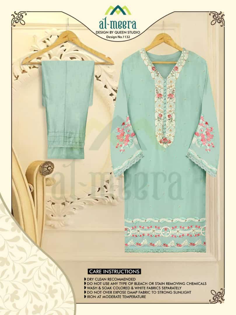 Buy Online Al Meera D No 1132 Design By Queen Studio Wholesale Supplier Traders In Surat 2 Pcs of Full Catalogue at Wholesale Price. Looking for Al Meera D No 1132 Design By Queen Studio Wholesale Supplier Traders In Surat Full Catalouge at Best Price? Buy Now Al Meera D No 1132 Design By Queen Studio Wholesale Supplier Traders In Surat at Wholesale Rate of Rs 2198 with Total 2 Pcs from authroized dealer and supplier of Brand. Cost of Each piece is just only Rs 1099 which is very low and affordable price to resale the product in your retail store ,This is Surat based Wholesale Supplier & Dealer of Brand. Click on Brand name to Know more about Brand's products.Call or Whatsapp on 9898838984 for booking or enquiry