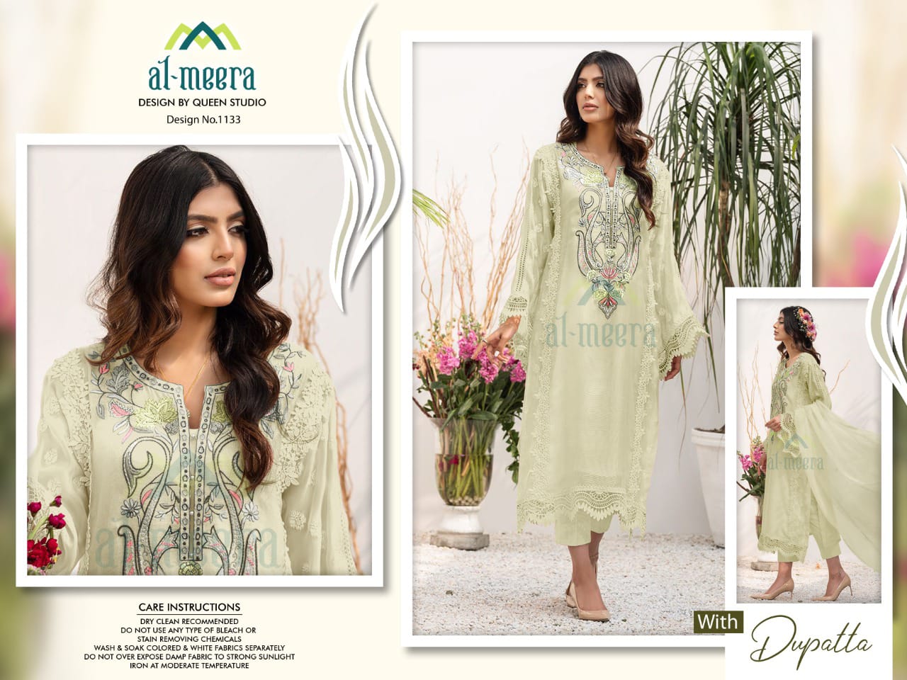 Buy Online Al Meera D No 1133 Wholesaler Supplier From Surat 3 Pcs of Full Catalogue at Wholesale Price. Looking for Al Meera D No 1133 Wholesaler Supplier From Surat Full Catalouge at Best Price? Buy Now Al Meera D No 1133 Wholesaler Supplier From Surat at Wholesale Rate of Rs 3690 with Total 3 Pcs from authroized dealer and supplier of Brand. Cost of Each piece is just only Rs 1230 which is very low and affordable price to resale the product in your retail store ,This is Surat based Wholesale Supplier & Dealer of Brand. Click on Brand name to Know more about Brand's products.Call or Whatsapp on 9898838984 for booking or enquiry