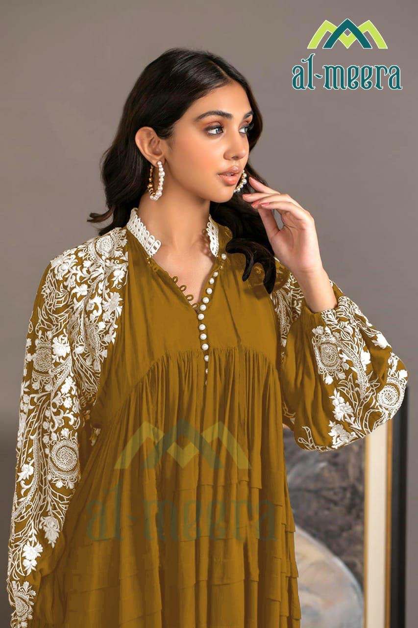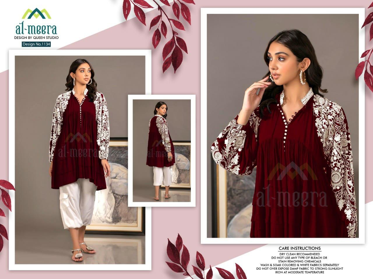 Buy Online Al Meera D No 1134 Laxuria Pret Collection Design By Queen Studio 6 Pcs of Full Catalogue at Wholesale Price. Looking for Al Meera D No 1134 Laxuria Pret Collection Design By Queen Studio Full Catalouge at Best Price? Buy Now Al Meera D No 1134 Laxuria Pret Collection Design By Queen Studio at Wholesale Rate of Rs 6480 with Total 6 Pcs from authroized dealer and supplier of Brand. Cost of Each piece is just only Rs 1080 which is very low and affordable price to resale the product in your retail store ,This is Surat based Wholesale Supplier & Dealer of Brand. Click on Brand name to Know more about Brand's products.Call or Whatsapp on 9898838984 for booking or enquiry