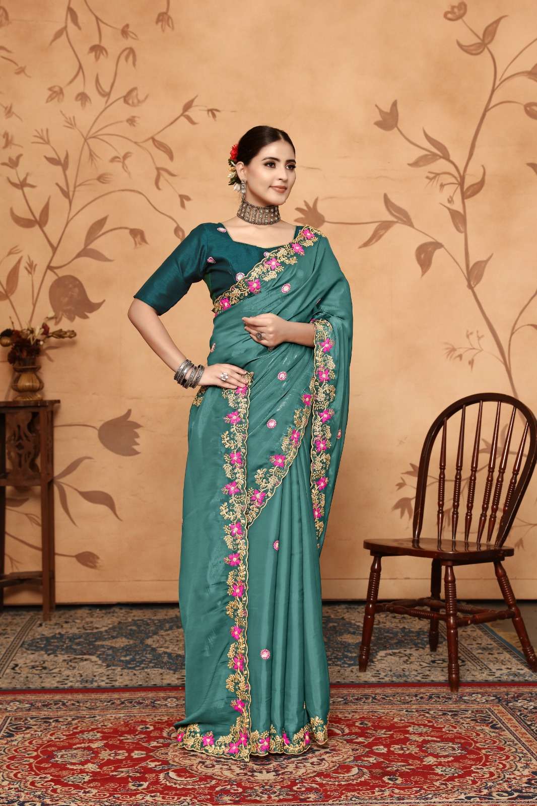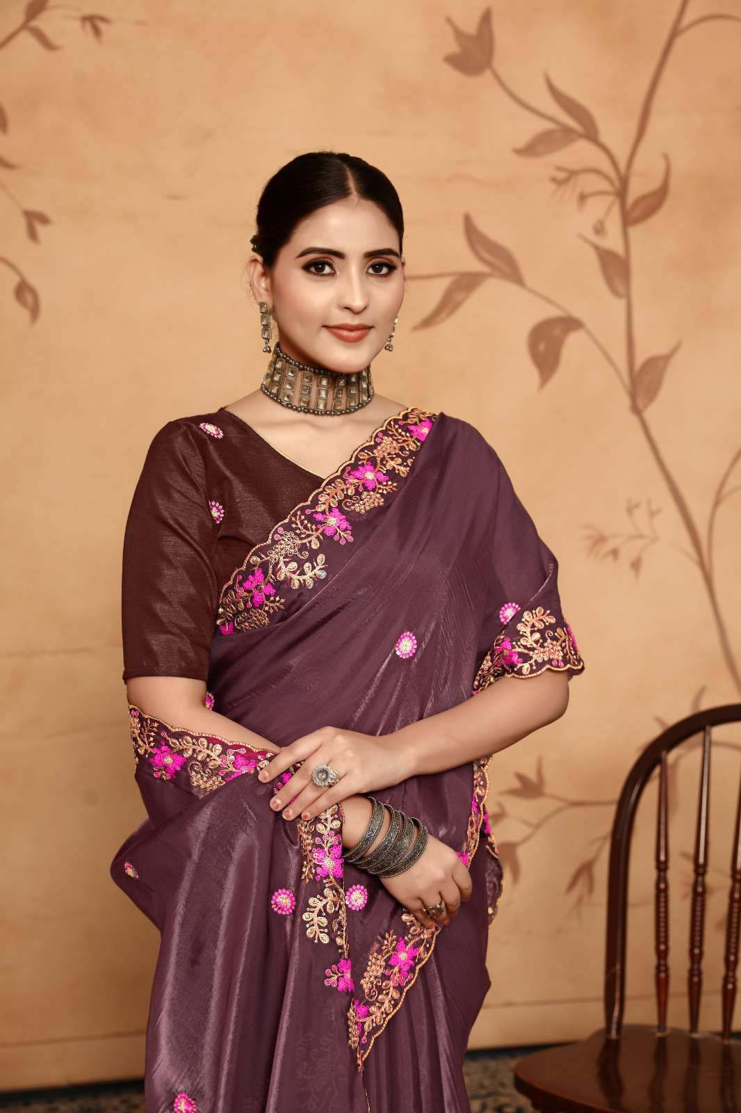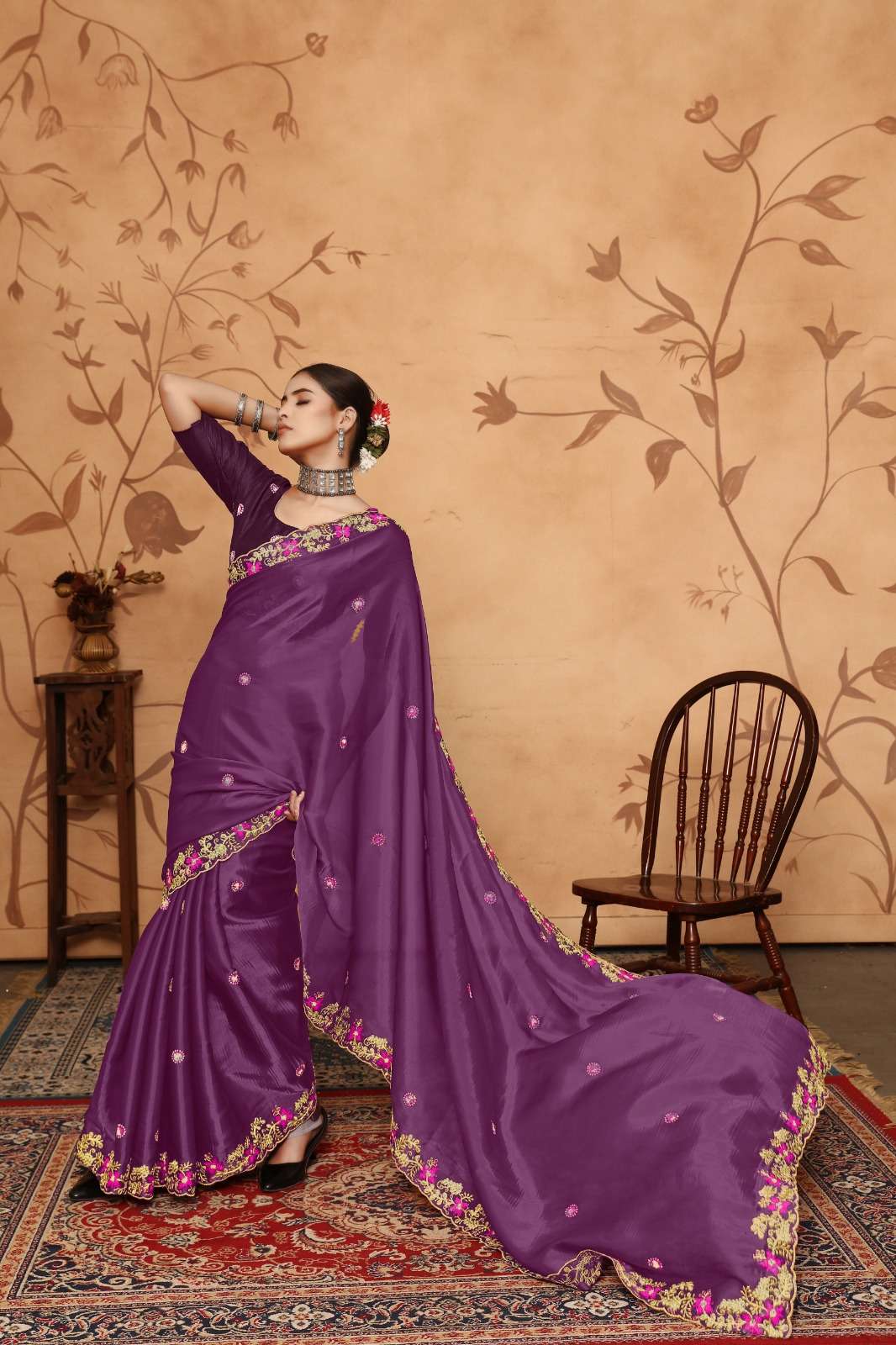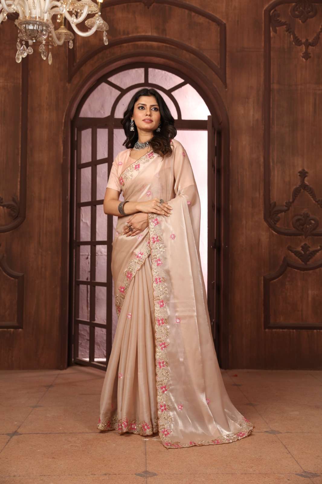 SAREE FABRIC- jimmi choo SAREE LENGTH- 5.50 Mtr SAREE WORK- double Sequance embrodary work with cording work c pallu cut work in jimmi choo fabrics saree