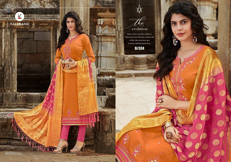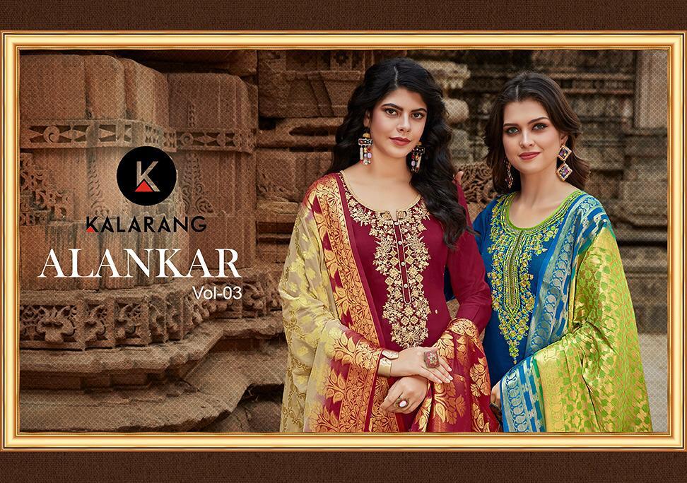Alankar Vol 3 By Kalarang 331 Series Fancy Jam Silk Cotton Embroidery Salwar Kameez Catlog Wholesale Dealer Surat