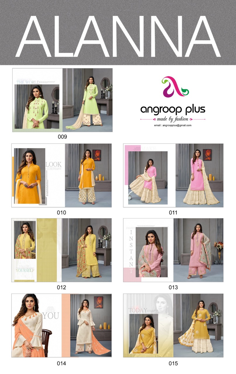 Buy Online Alanna By Angroop Plus Cotton Designer Plazzo Suits Wholesale Supplier Nd Dealer Gujarat 7 Pcs of Full Catalogue at Wholesale Price. Looking for Alanna By Angroop Plus Cotton Designer Plazzo Suits Wholesale Supplier Nd Dealer Gujarat Full Catalouge at Best Price? Buy Now Alanna By Angroop Plus Cotton Designer Plazzo Suits Wholesale Supplier Nd Dealer Gujarat at Wholesale Rate of Rs 4725 with Total 7 Pcs from authroized dealer and supplier of ANGROOP PLUS Brand. Cost of Each piece is just only Rs 675 which is very low and affordable price to resale the product in your retail store ,This is Surat based Wholesale Supplier & Dealer of ANGROOP PLUS Brand. Click on Brand name to Know more about ANGROOP PLUS Brand's products.Call or Whatsapp on 9898838984 for booking or enquiry