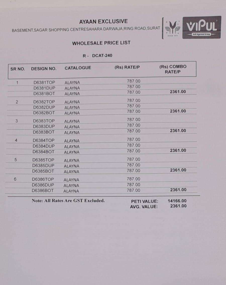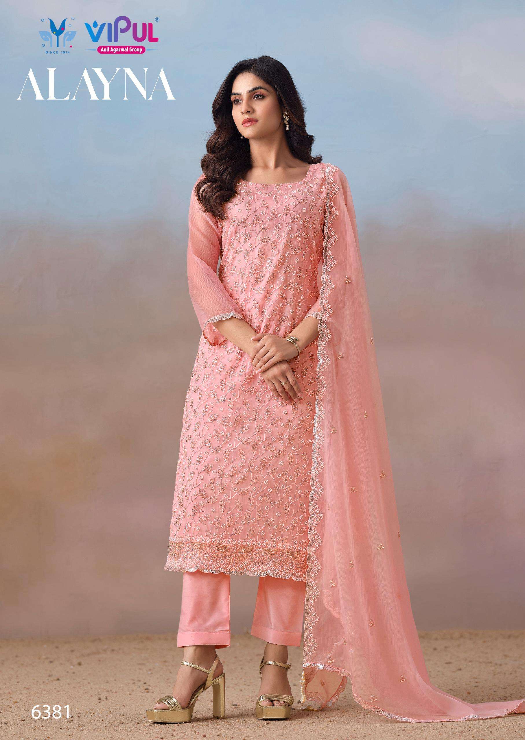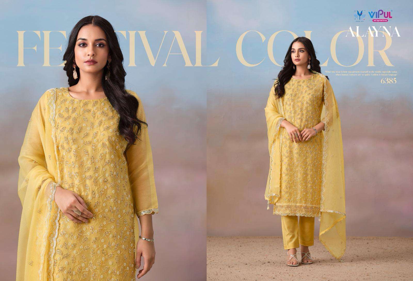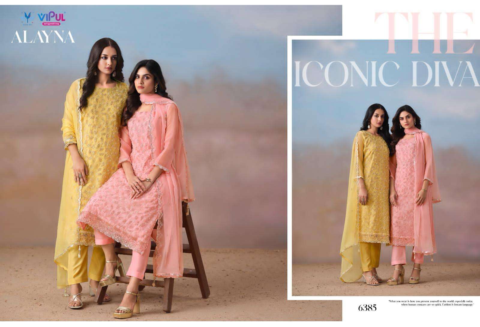 Buy Online Alayna by vipul chiffon suit collection manufacturer surat 6 Pcs of Full Catalogue at Wholesale Price. Looking for Alayna by vipul chiffon suit collection manufacturer surat Full Catalouge at Best Price? Buy Now Alayna by vipul chiffon suit collection manufacturer surat at Wholesale Rate of Rs 14166 with Total 6 Pcs from authroized dealer and supplier of VIPUL Brand. Cost of Each piece is just only Rs 2361 which is very low and affordable price to resale the product in your retail store ,This is Surat based Wholesale Supplier & Dealer of VIPUL Brand. Click on Brand name to Know more about VIPUL Brand's products.Call or Whatsapp on 9898838984 for booking or enquiry