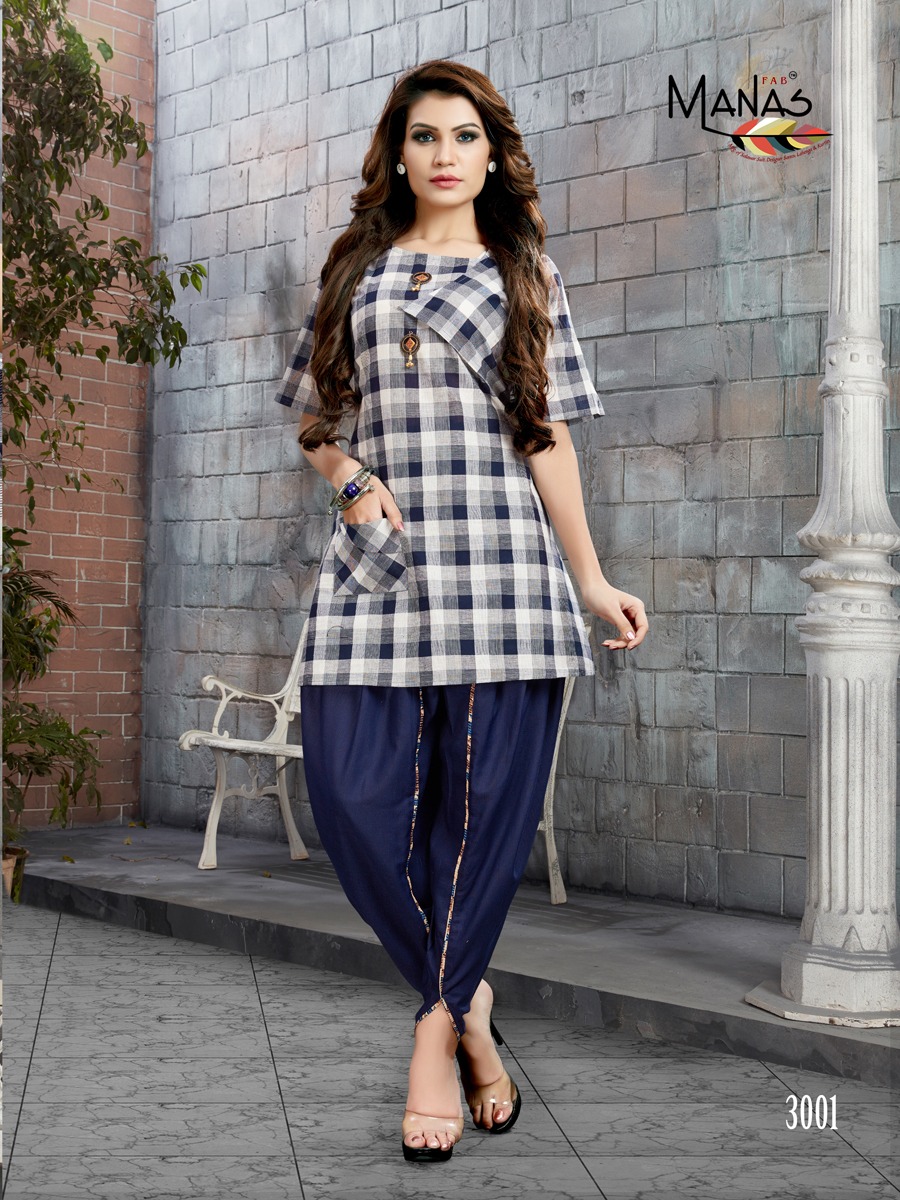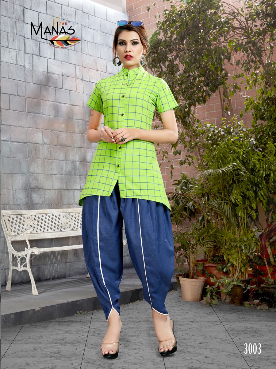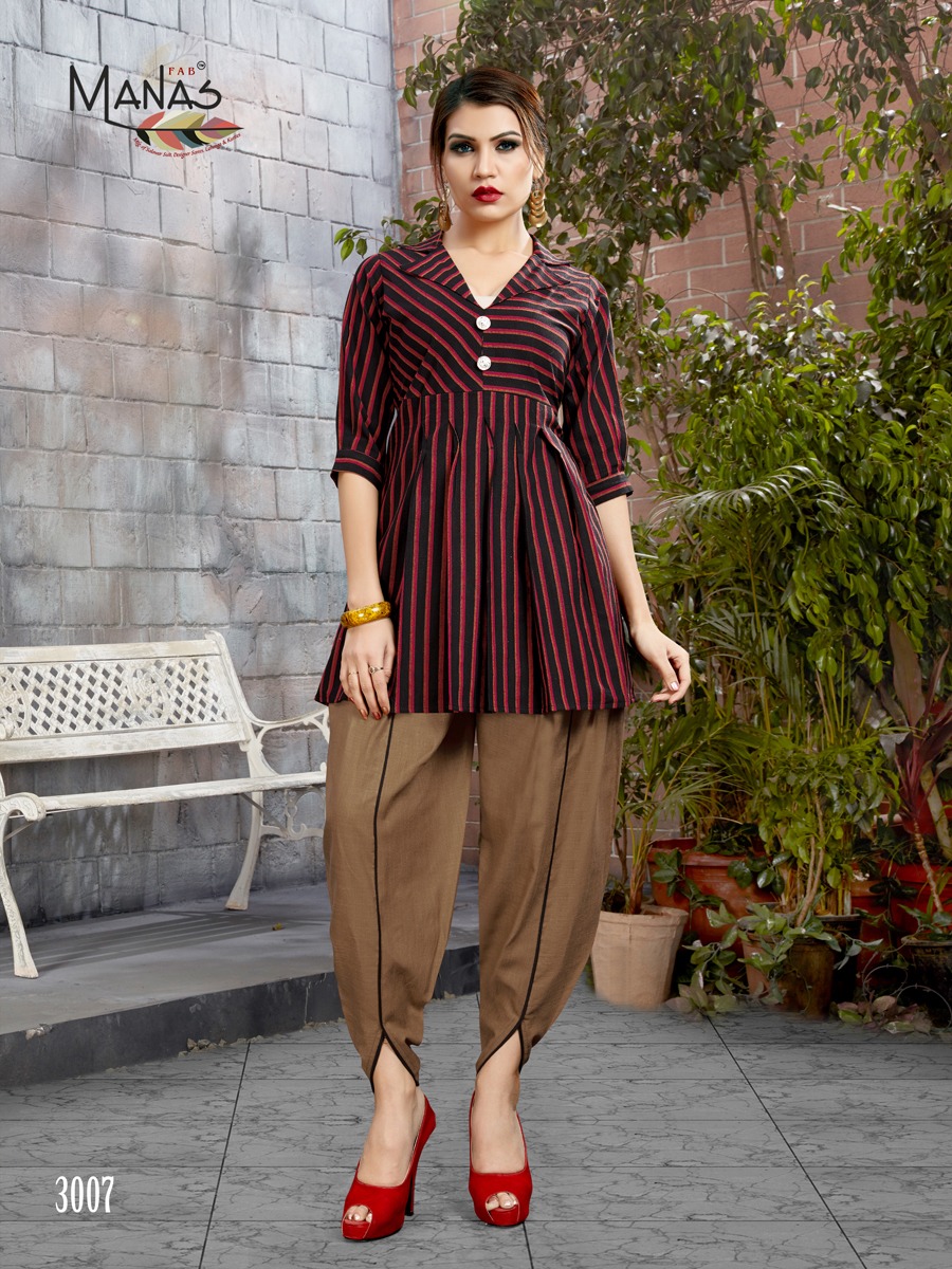 Albeli Vol 1 By Manas 3001 Series Fancy South Cotton Kurti With Dhoti Collection Wholesaler Surat