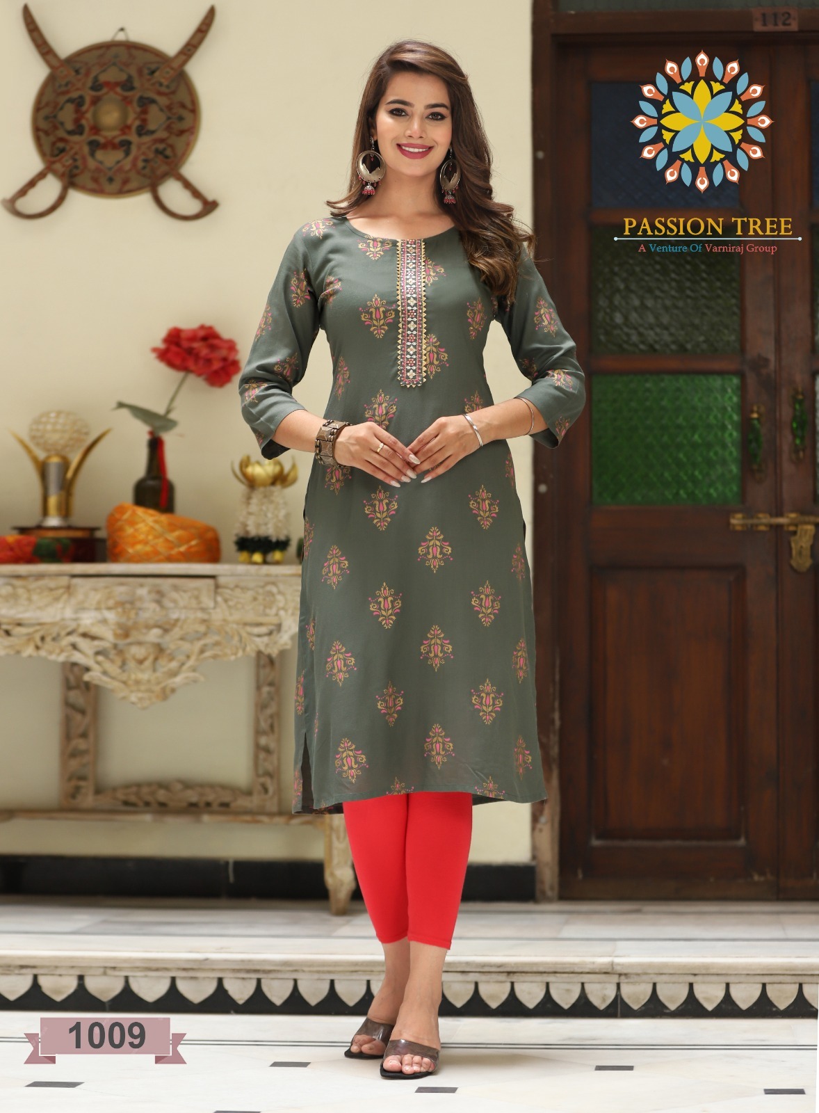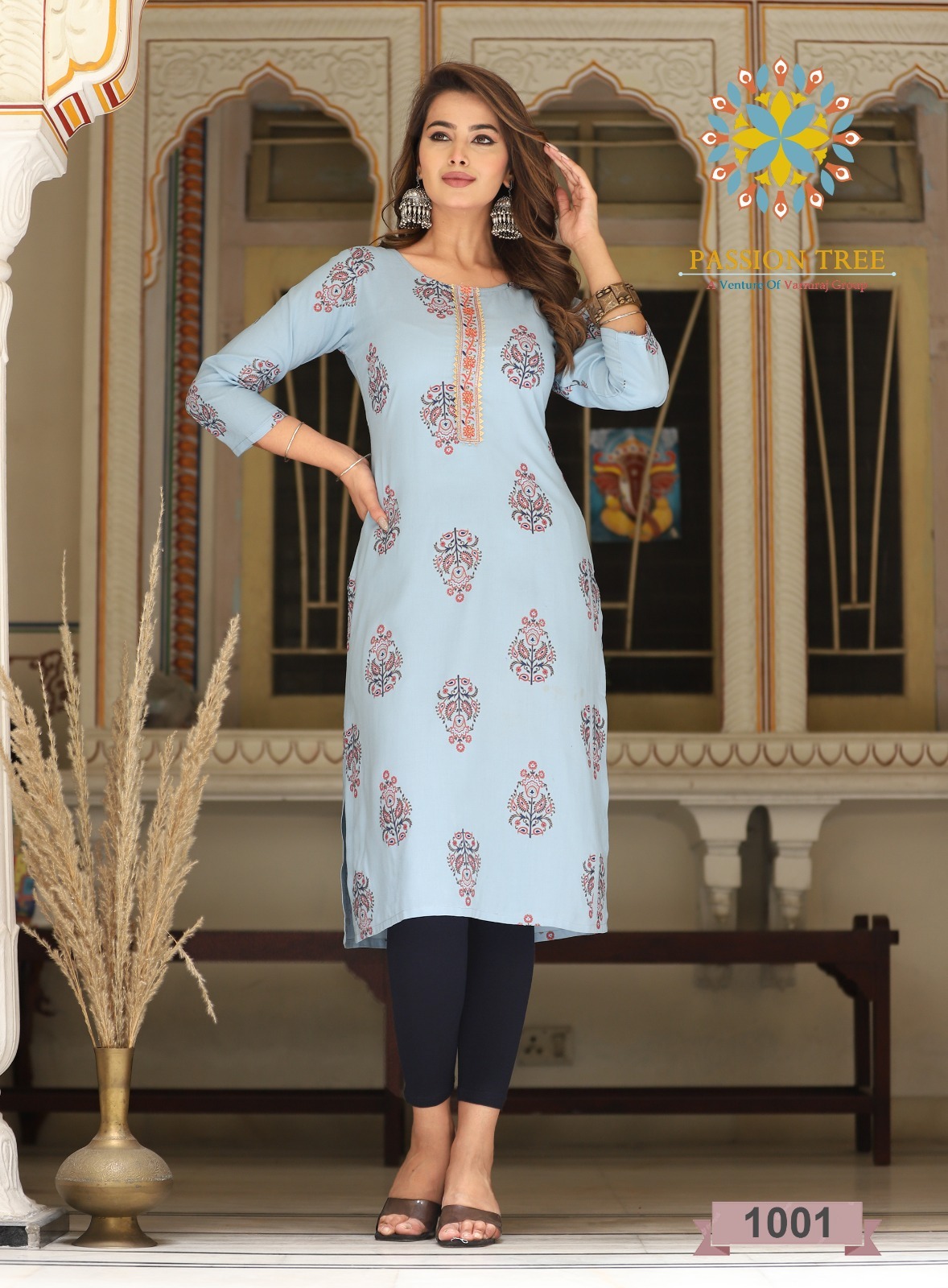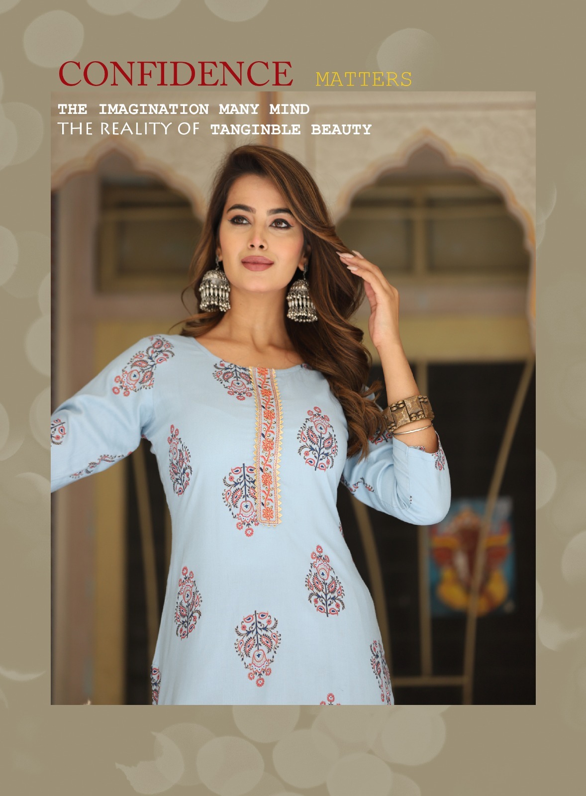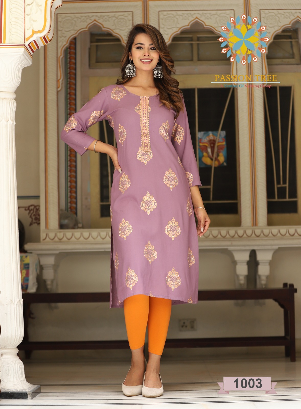 Albeli Vol 1 Passion Tree Rayon Gold Print Straight Kurti