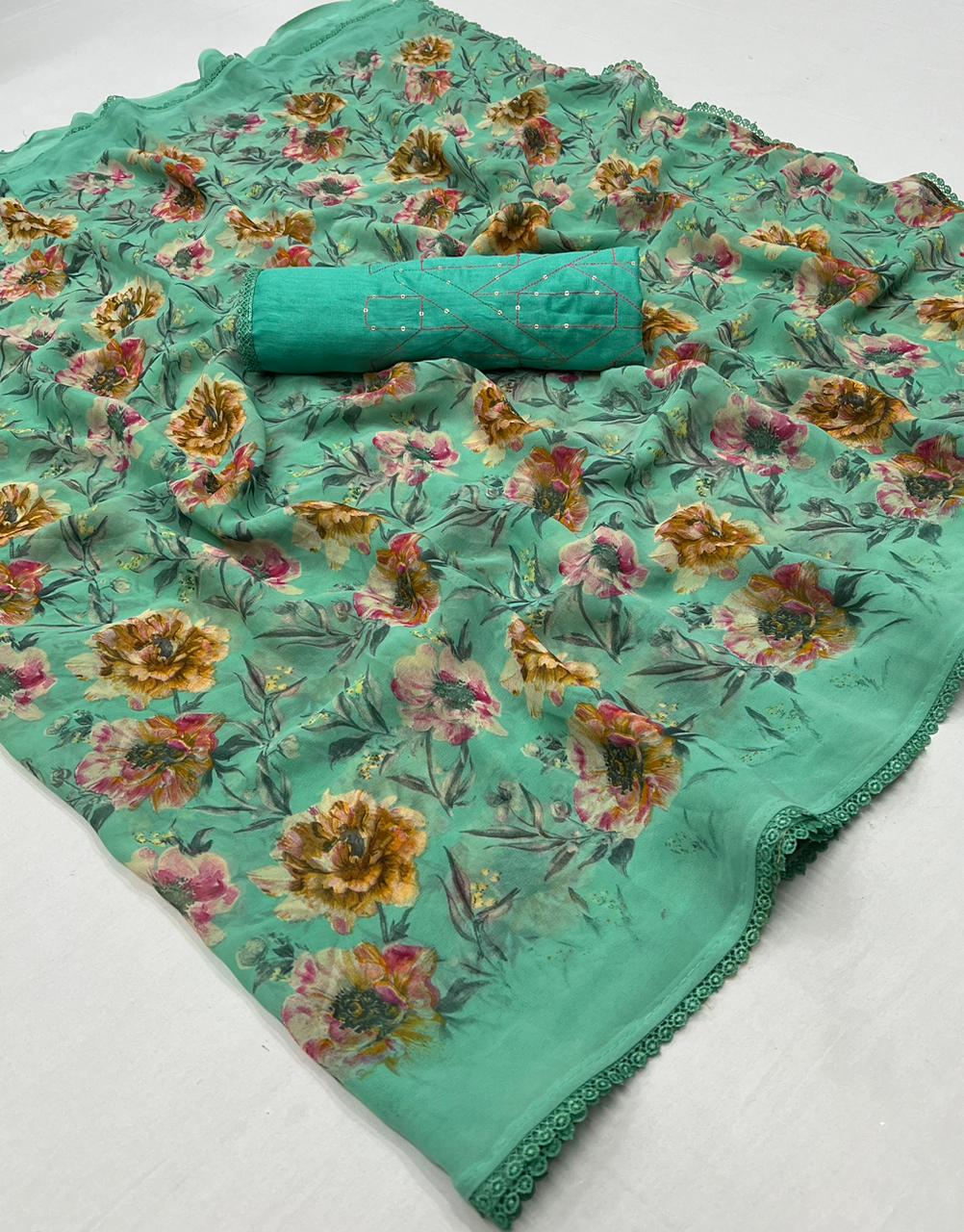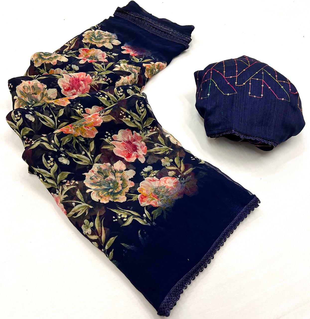 ?? *Brand- LT Fabrics* ?? *CATLOGUE :- ALEESHA-2* ?? *Fabric :- Heavy Georgette With Fancy Lace & Fancy Floral Print & Fancy Embroidery Blouse ?* ?? *Price:- 695/- Included Gst* Ship extra ?Book Fast ?Ready Stock ?Singles Also Available *?We Believe In Quality ?* 100+Singles |