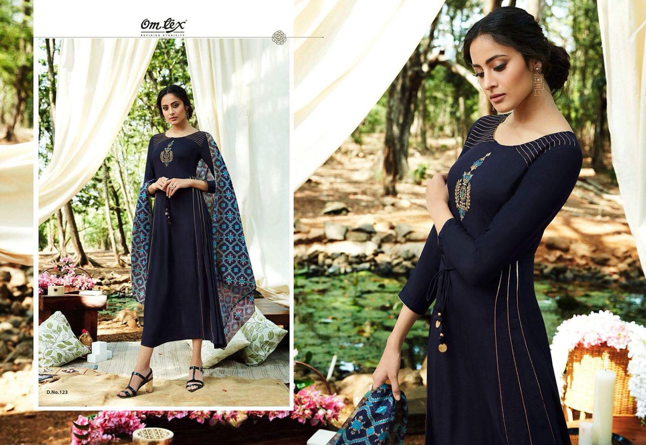 Buy Online Alene By Omtex Reyon Slub Long Gown Style Kurties With Chanderi Duppta Wholesale Suppliers And Trader Nitya Nx Surat 6 Pcs of Full Catalogue at Wholesale Price. Looking for Alene By Omtex Reyon Slub Long Gown Style Kurties With Chanderi Duppta Wholesale Suppliers And Trader Nitya Nx Surat Full Catalouge at Best Price? Buy Now Alene By Omtex Reyon Slub Long Gown Style Kurties With Chanderi Duppta Wholesale Suppliers And Trader Nitya Nx Surat at Wholesale Rate of Rs 8970 with Total 6 Pcs from authroized dealer and supplier of OM TEX Brand. Cost of Each piece is just only Rs 1495 which is very low and affordable price to resale the product in your retail store ,This is Surat based Wholesale Supplier & Dealer of OM TEX Brand. Click on Brand name to Know more about OM TEX Brand's products.Call or Whatsapp on 9898838984 for booking or enquiry