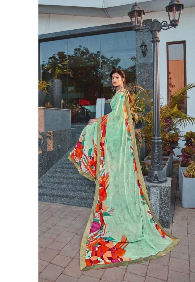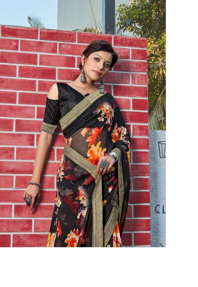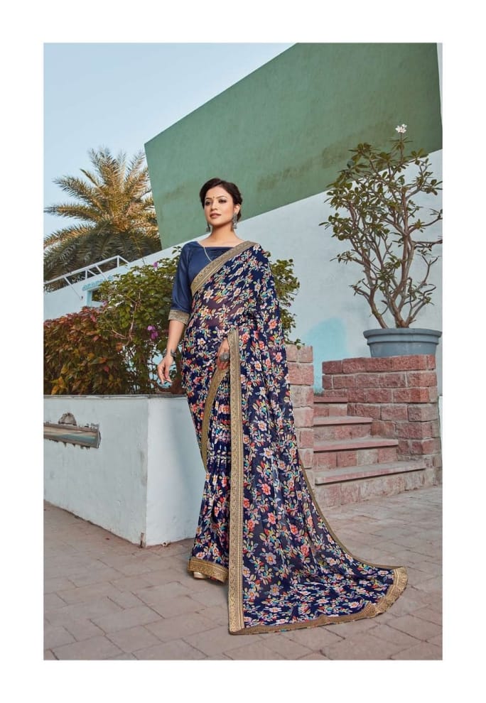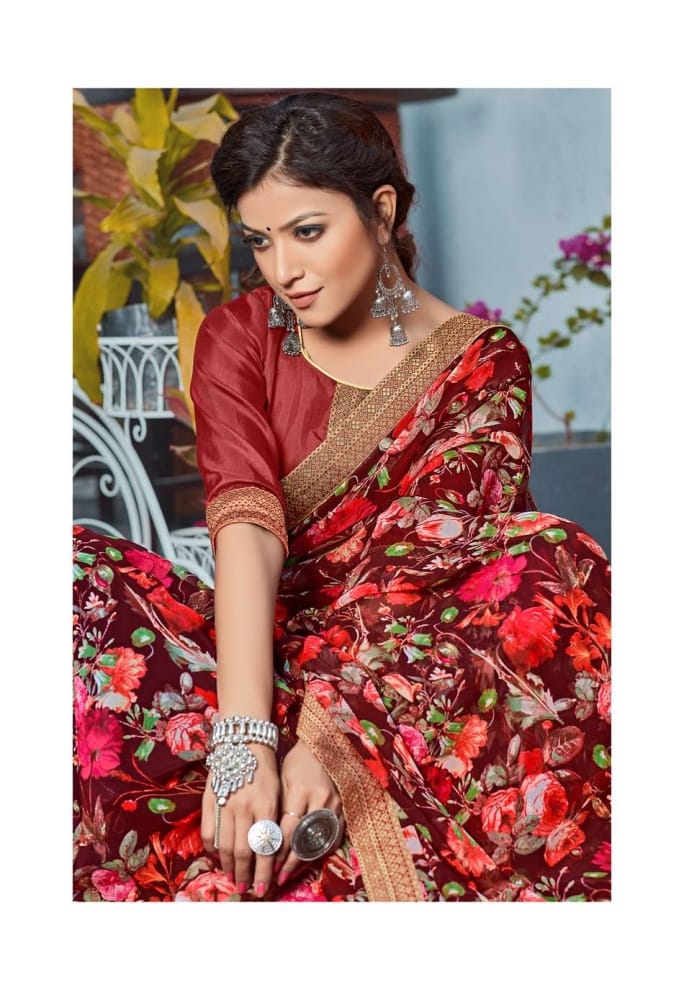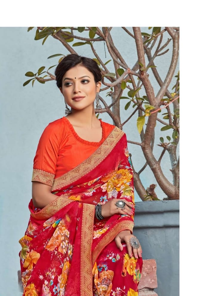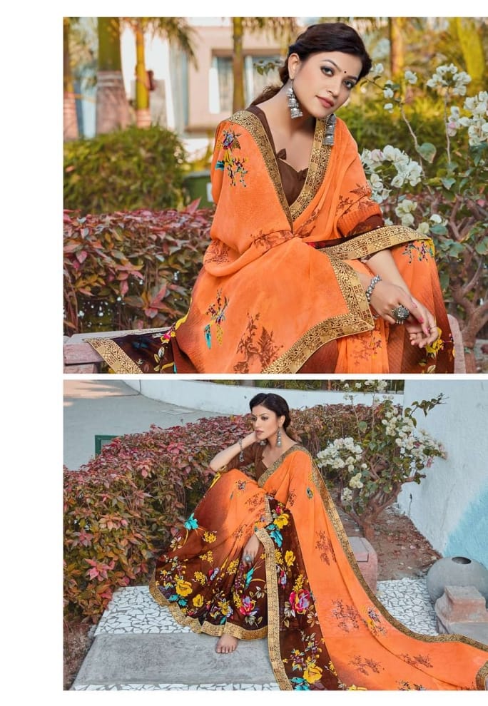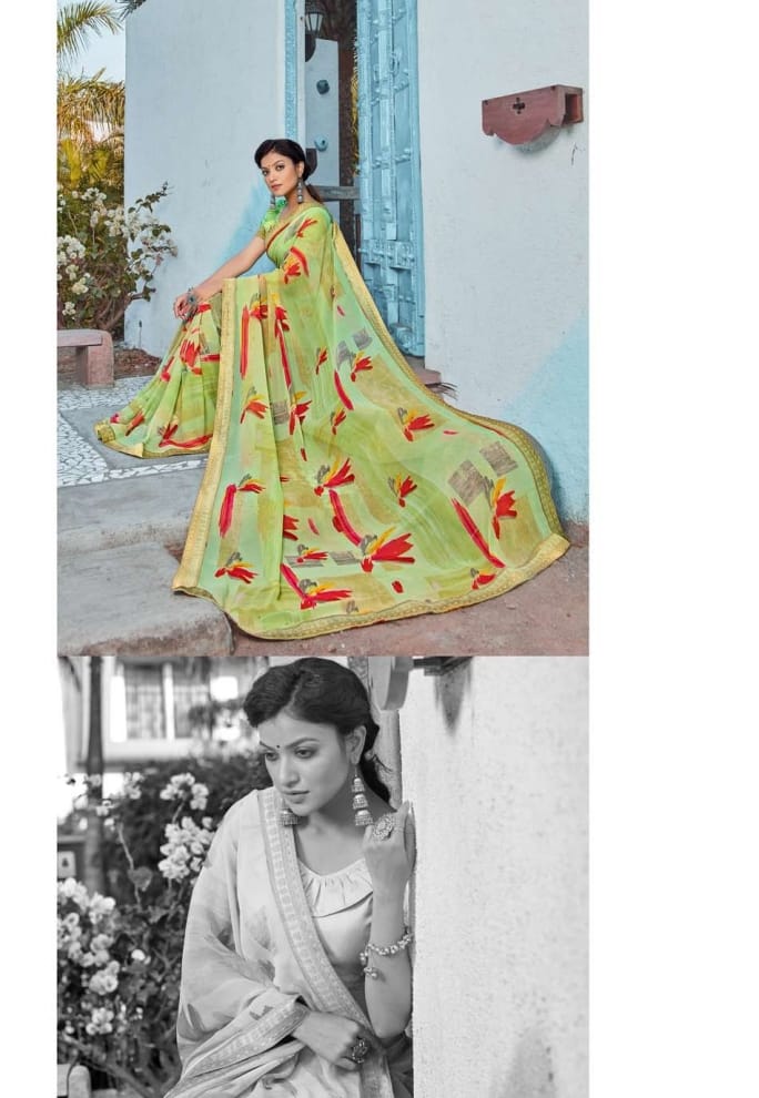 Alexa Shangrila Latest Bamber Georgette Collection Of New Bright Prints and Jequard Border....!! 12 pc 12 design 580/- |
