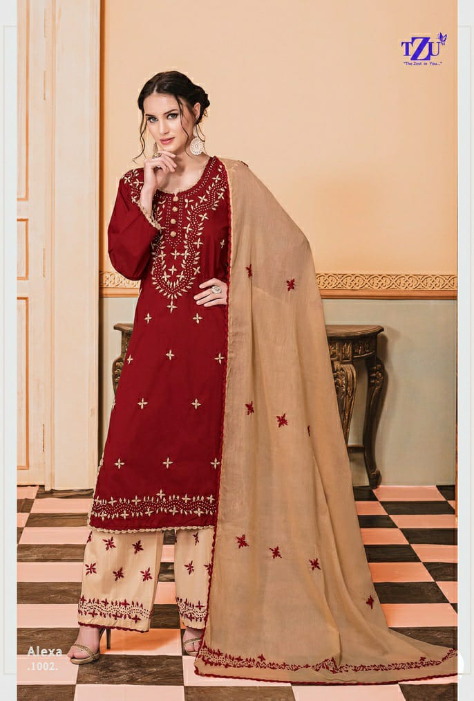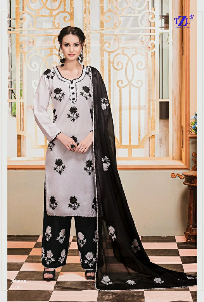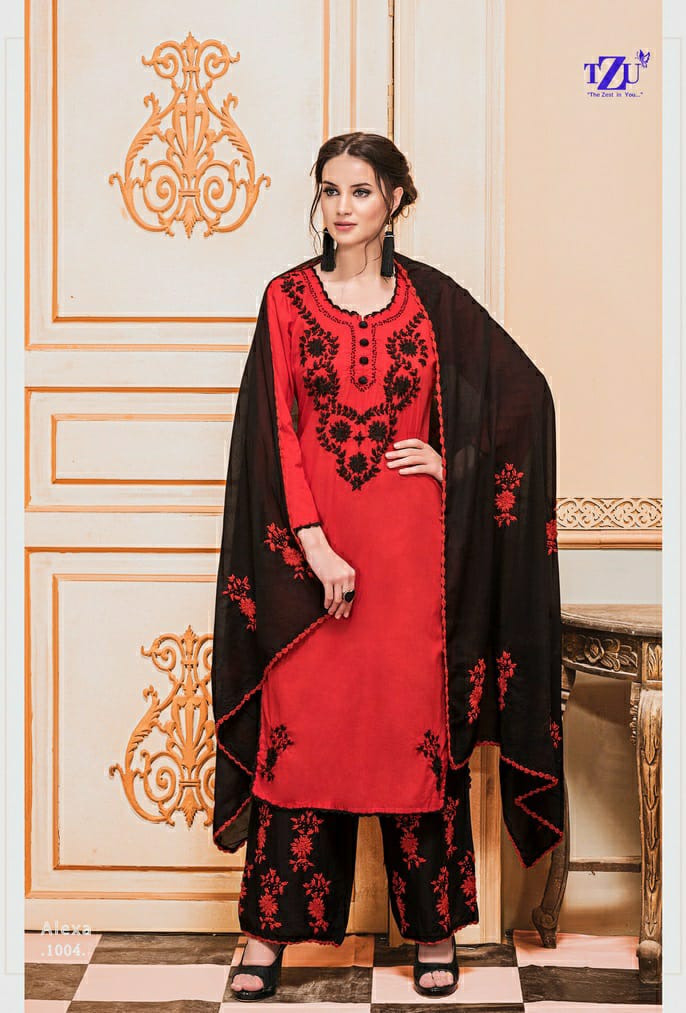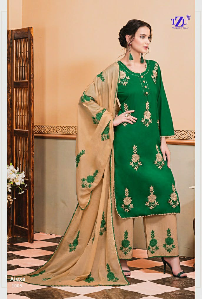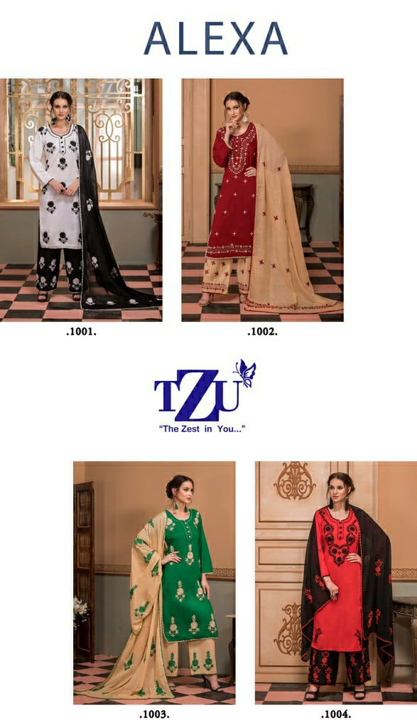 Buy Online Alexa Kurti With Bottom And Dupatta By Tzu Wholesale Supplier Traders In Surat 4 Pcs of Full Catalogue at Wholesale Price. Looking for Alexa Kurti With Bottom And Dupatta By Tzu Wholesale Supplier Traders In Surat Full Catalouge at Best Price? Buy Now Alexa Kurti With Bottom And Dupatta By Tzu Wholesale Supplier Traders In Surat at Wholesale Rate of Rs 4788 with Total 4 Pcs from authroized dealer and supplier of Brand. Cost of Each piece is just only Rs 1197 which is very low and affordable price to resale the product in your retail store ,This is Surat based Wholesale Supplier & Dealer of Brand. Click on Brand name to Know more about Brand's products.Call or Whatsapp on 9898838984 for booking or enquiry