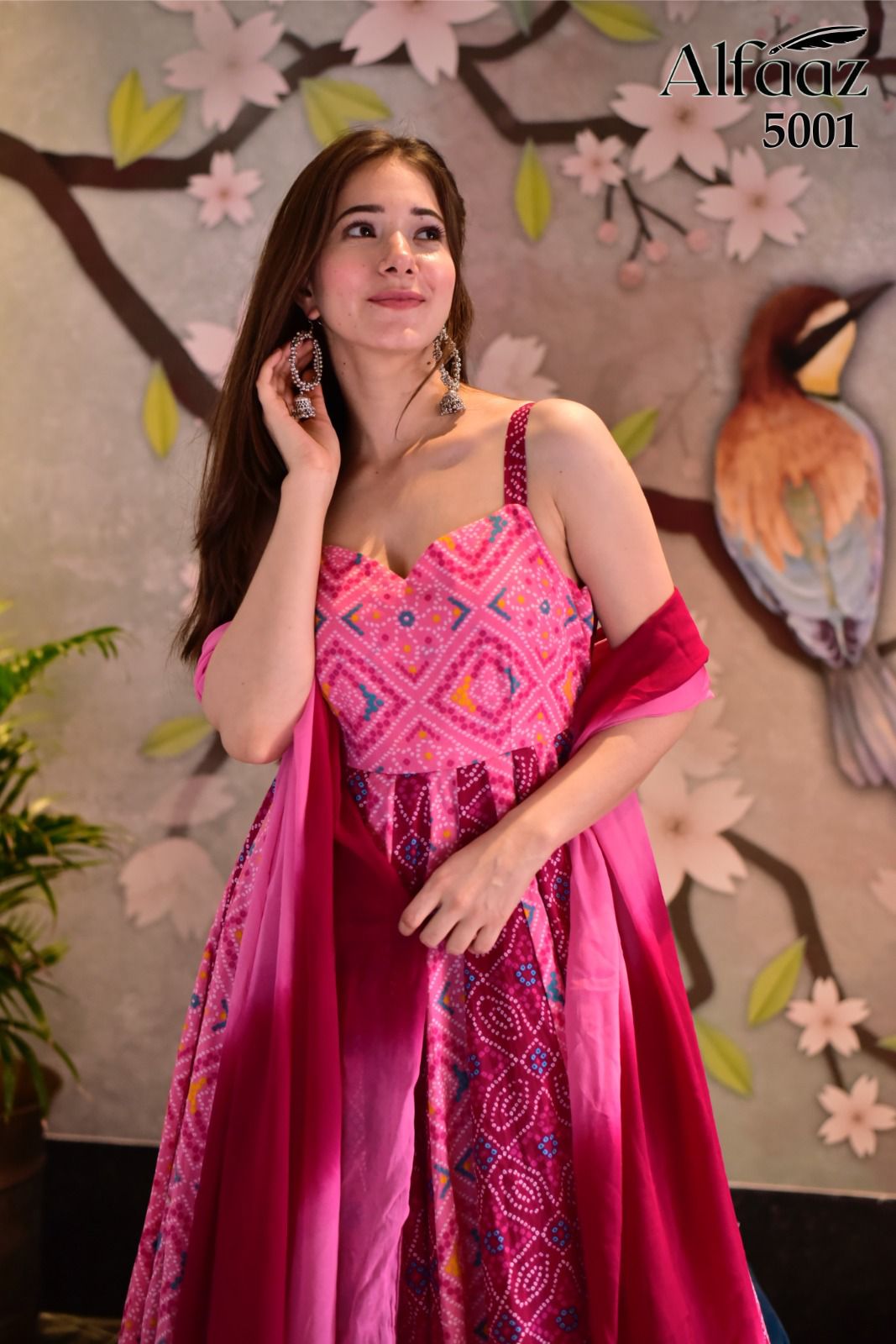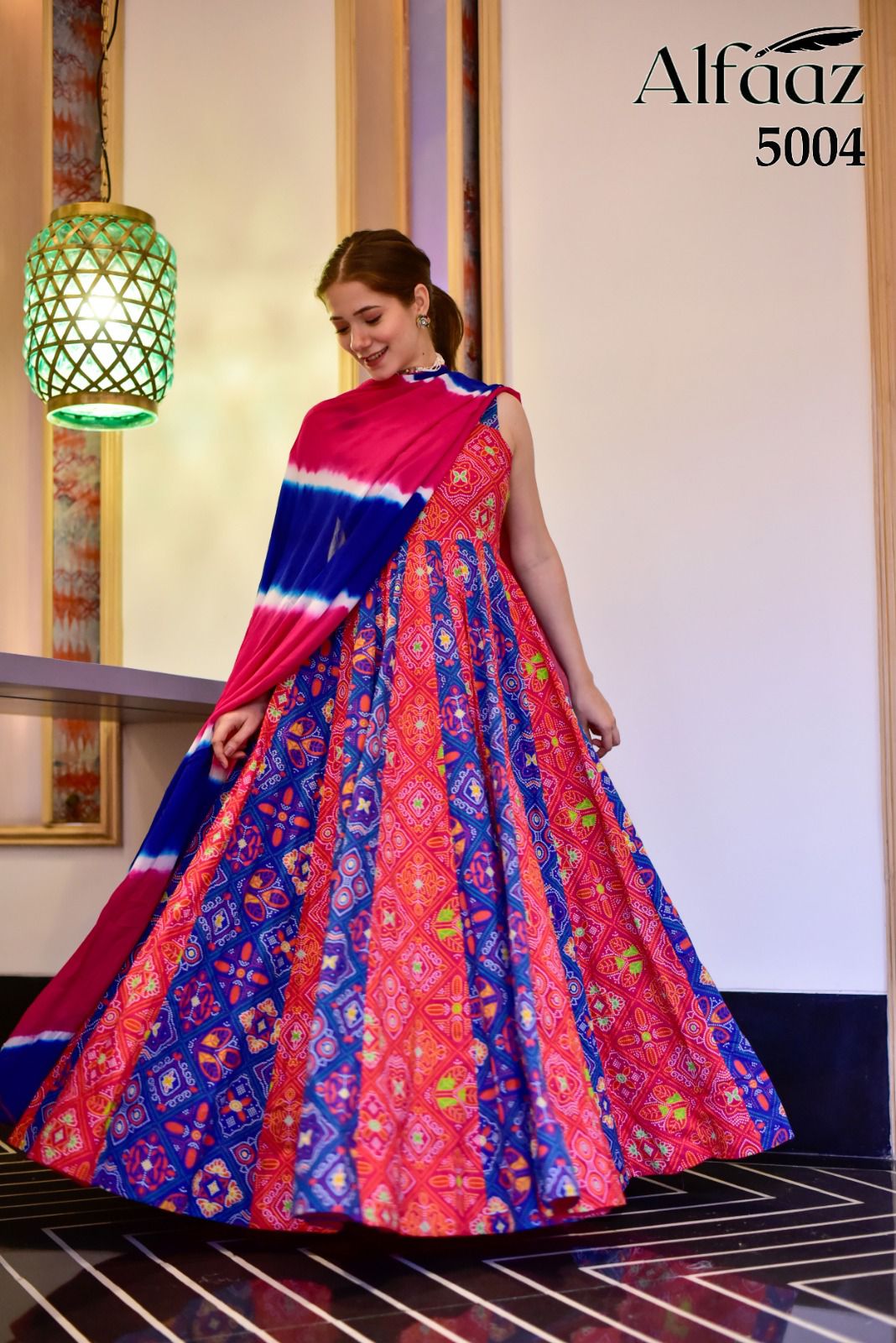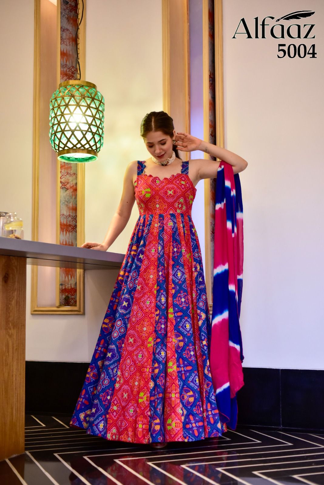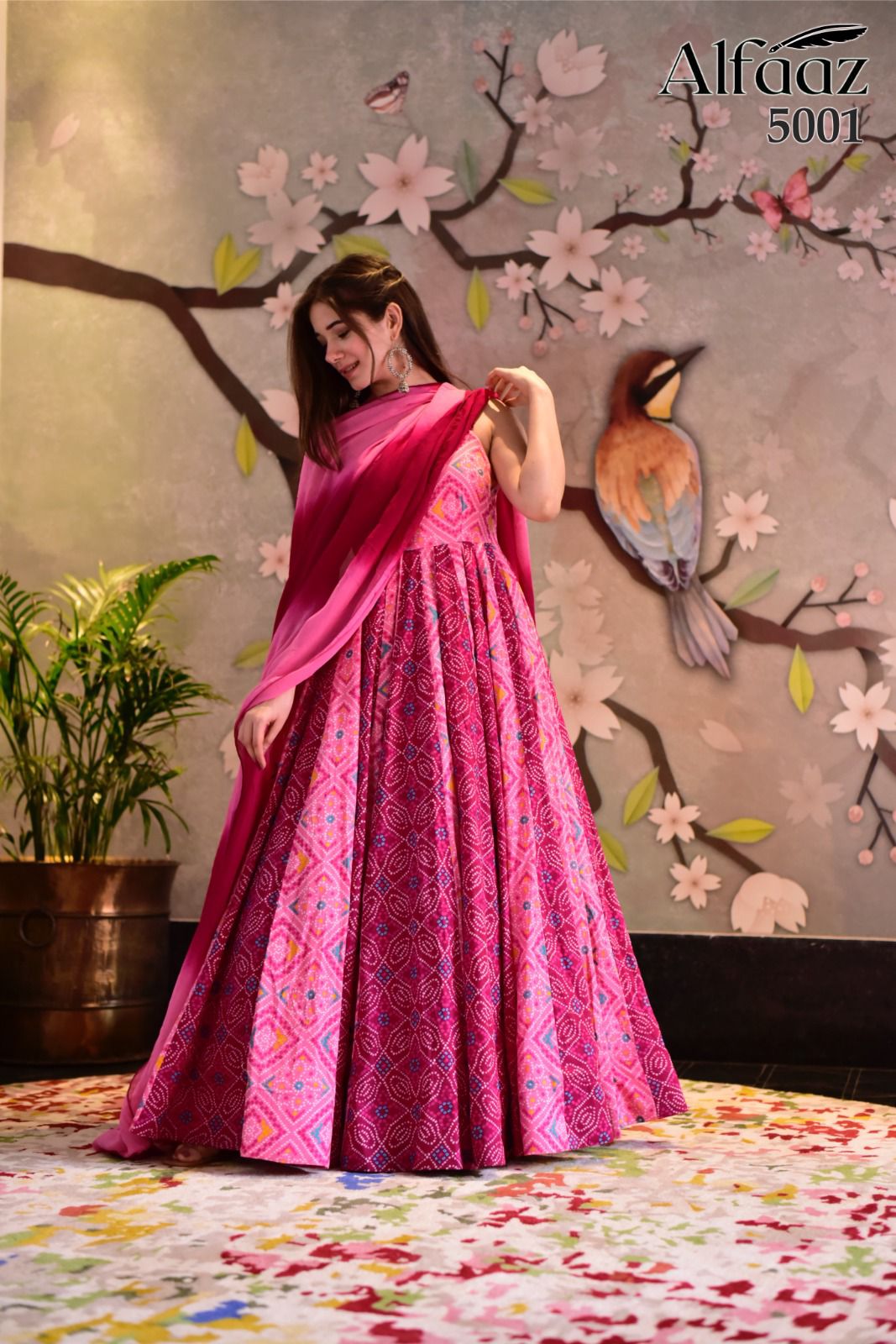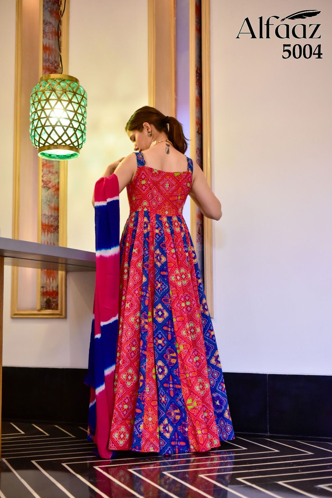 Buy Online Alfaaz Vol 5 By Alfaaz Designer Anarkali Type Bandhej Traditional Flaird Suits With Dupatta 4 Pcs of Full Catalogue at Wholesale Price. Looking for Alfaaz Vol 5 By Alfaaz Designer Anarkali Type Bandhej Traditional Flaird Suits With Dupatta Full Catalouge at Best Price? Buy Now Alfaaz Vol 5 By Alfaaz Designer Anarkali Type Bandhej Traditional Flaird Suits With Dupatta at Wholesale Rate of Rs 4796 with Total 4 Pcs from authroized dealer and supplier of Brand. Cost of Each piece is just only Rs 1199 which is very low and affordable price to resale the product in your retail store ,This is Surat based Wholesale Supplier & Dealer of Brand. Click on Brand name to Know more about Brand's products.Call or Whatsapp on 9898838984 for booking or enquiry