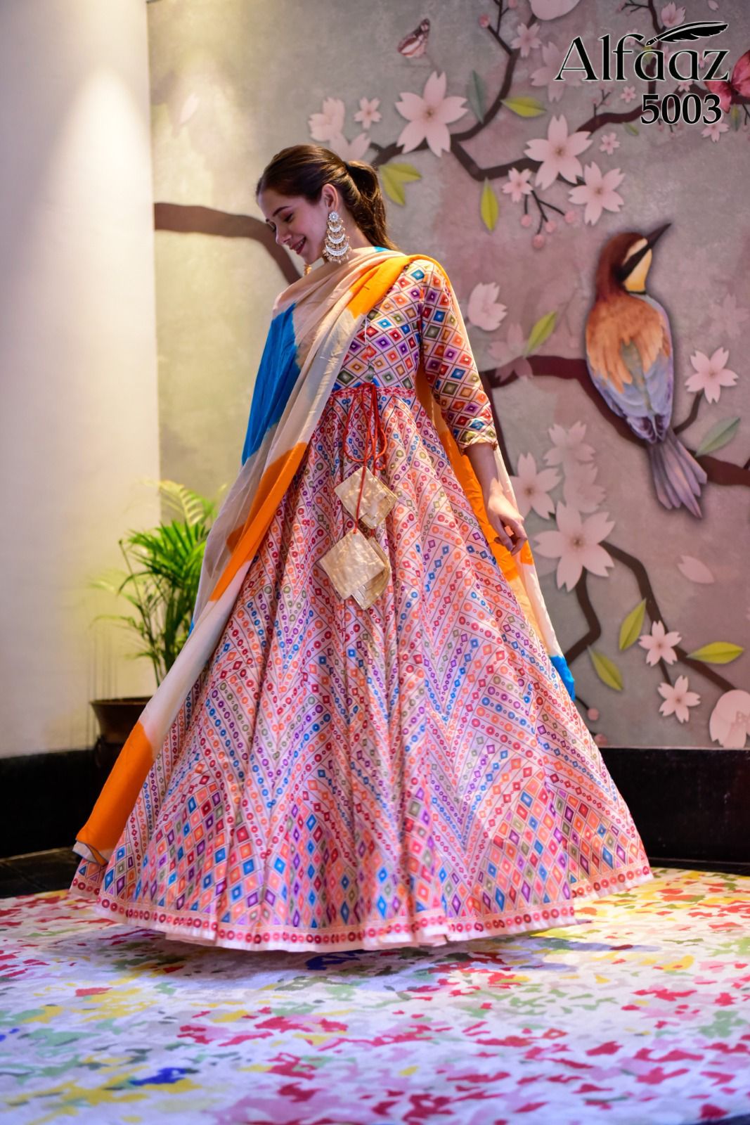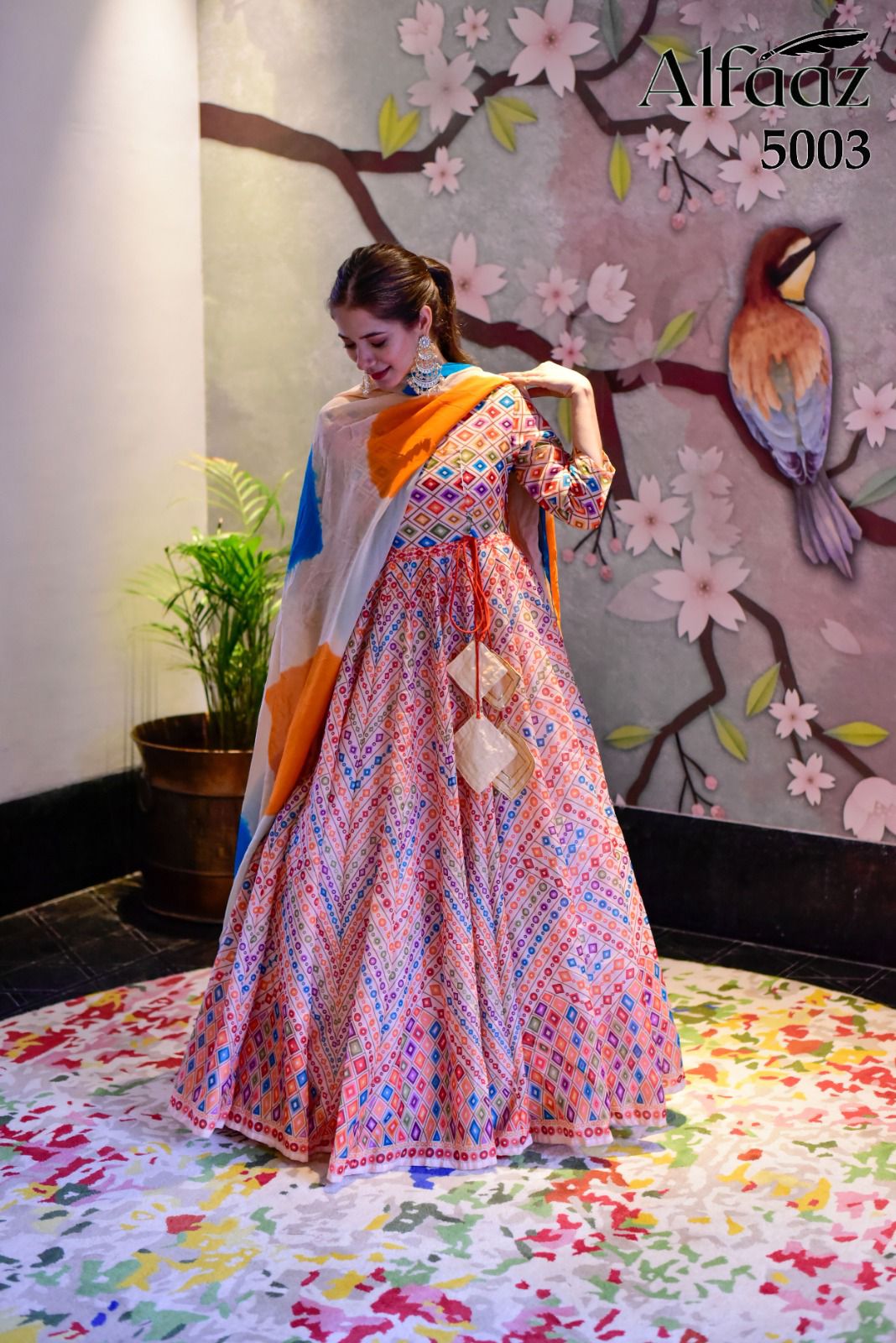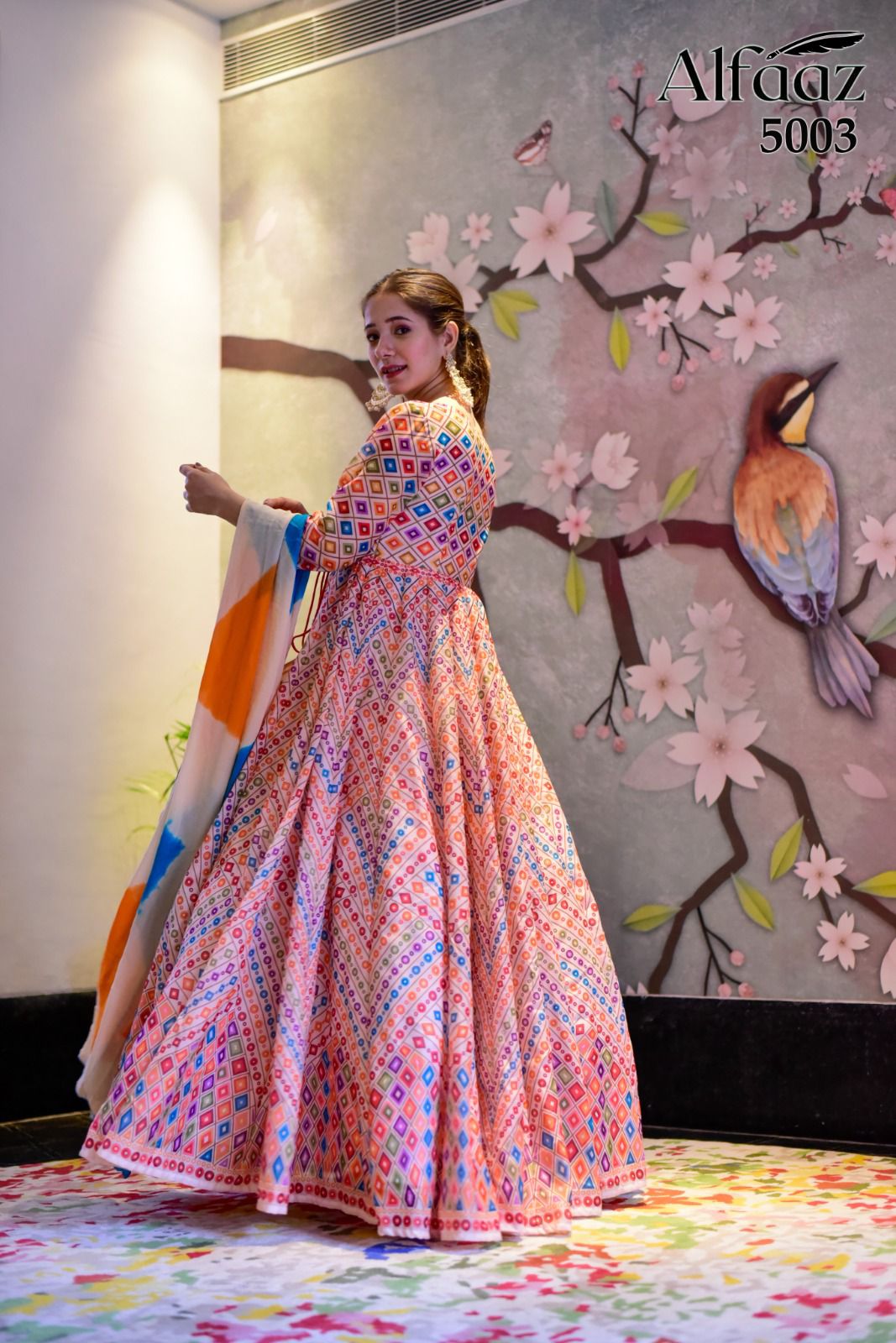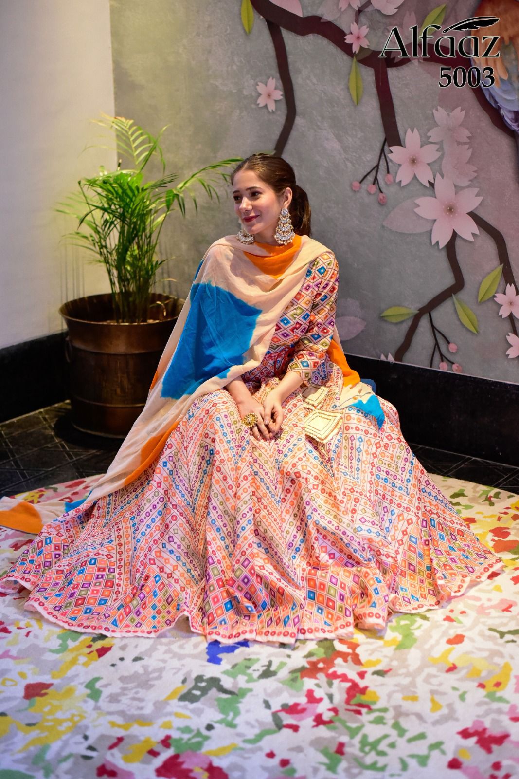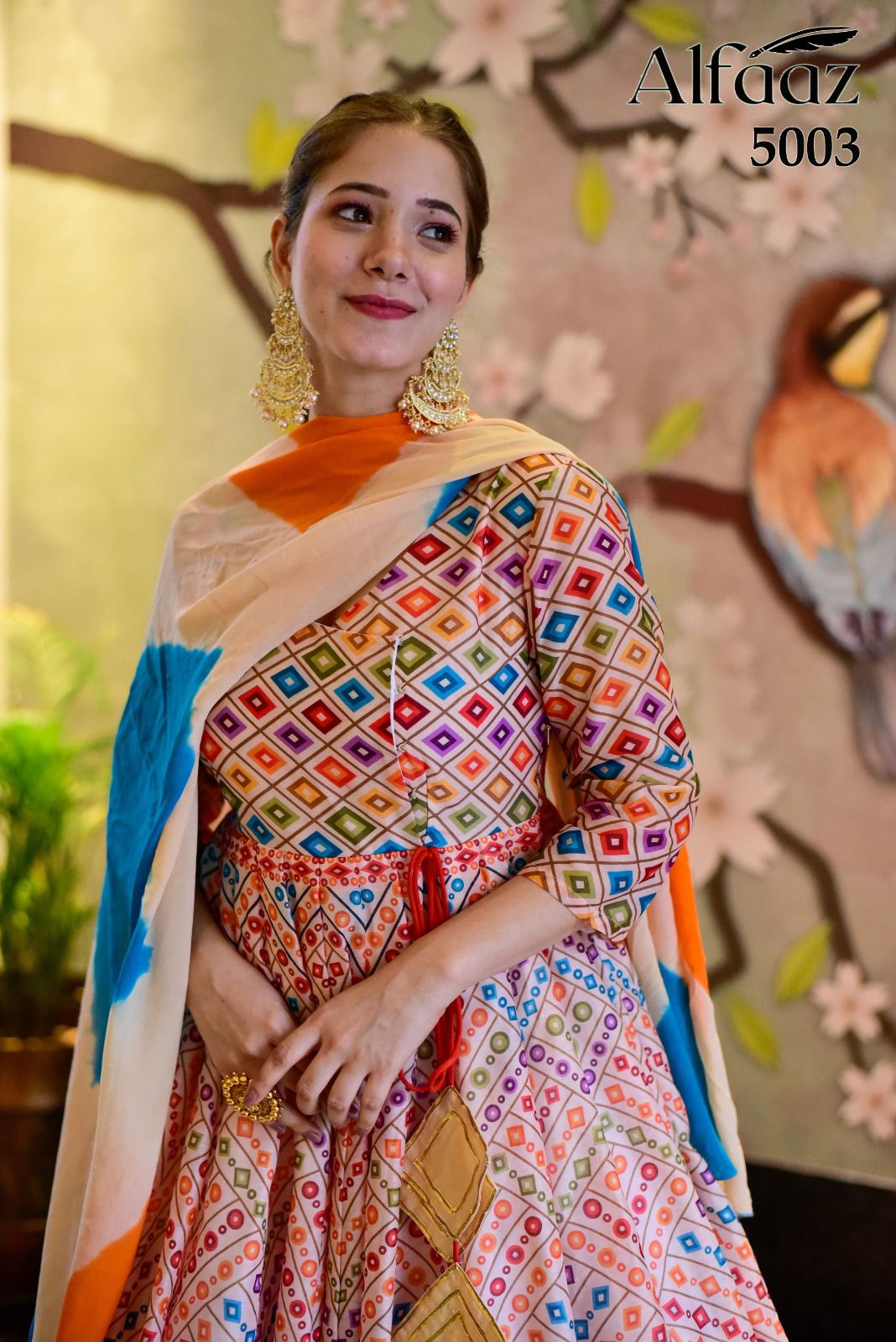 Buy Online Alfaaz Vol 5 By Alfaaz Designer Anarkali Type Bandhej Traditional Flaird Suits With Dupatta 4 Pcs of Full Catalogue at Wholesale Price. Looking for Alfaaz Vol 5 By Alfaaz Designer Anarkali Type Bandhej Traditional Flaird Suits With Dupatta Full Catalouge at Best Price? Buy Now Alfaaz Vol 5 By Alfaaz Designer Anarkali Type Bandhej Traditional Flaird Suits With Dupatta at Wholesale Rate of Rs 4796 with Total 4 Pcs from authroized dealer and supplier of Brand. Cost of Each piece is just only Rs 1199 which is very low and affordable price to resale the product in your retail store ,This is Surat based Wholesale Supplier & Dealer of Brand. Click on Brand name to Know more about Brand's products.Call or Whatsapp on 9898838984 for booking or enquiry