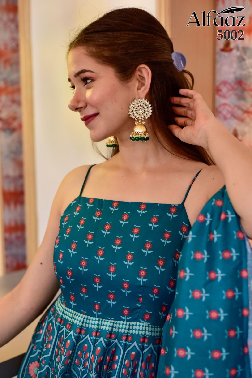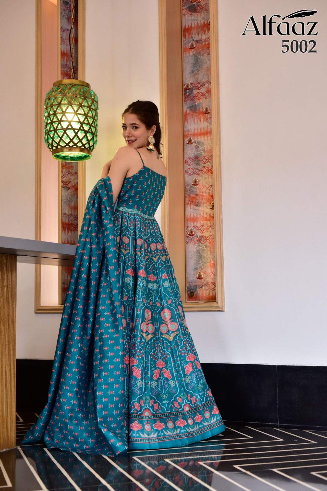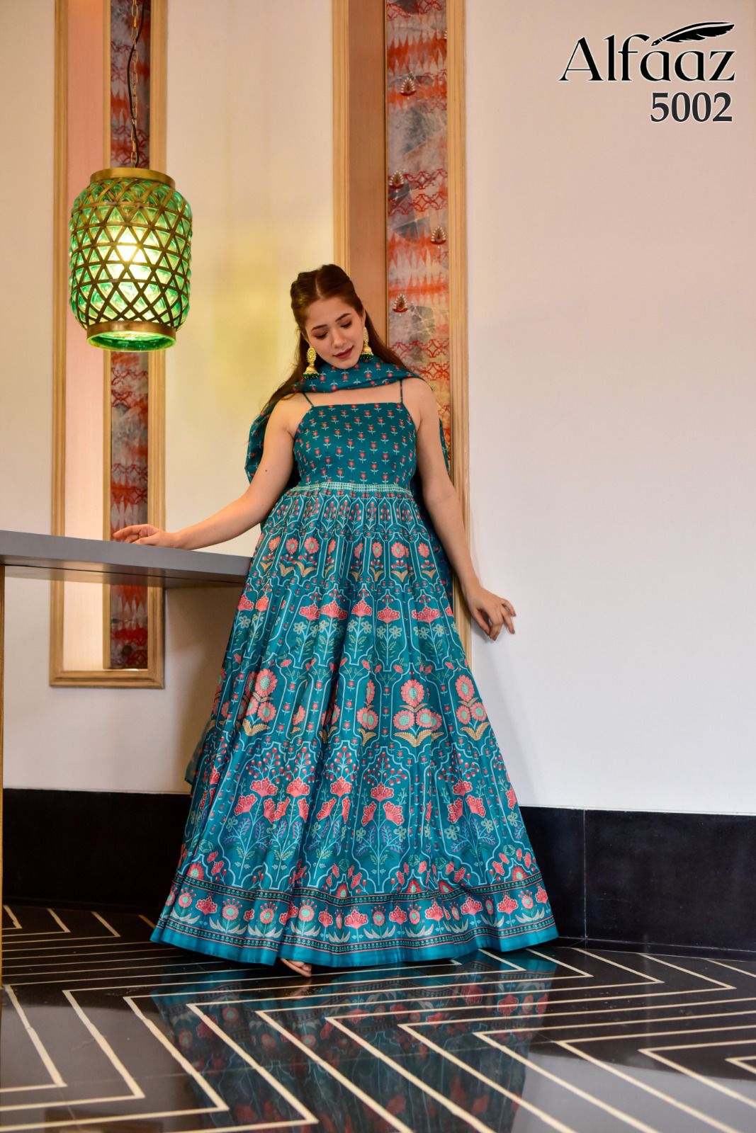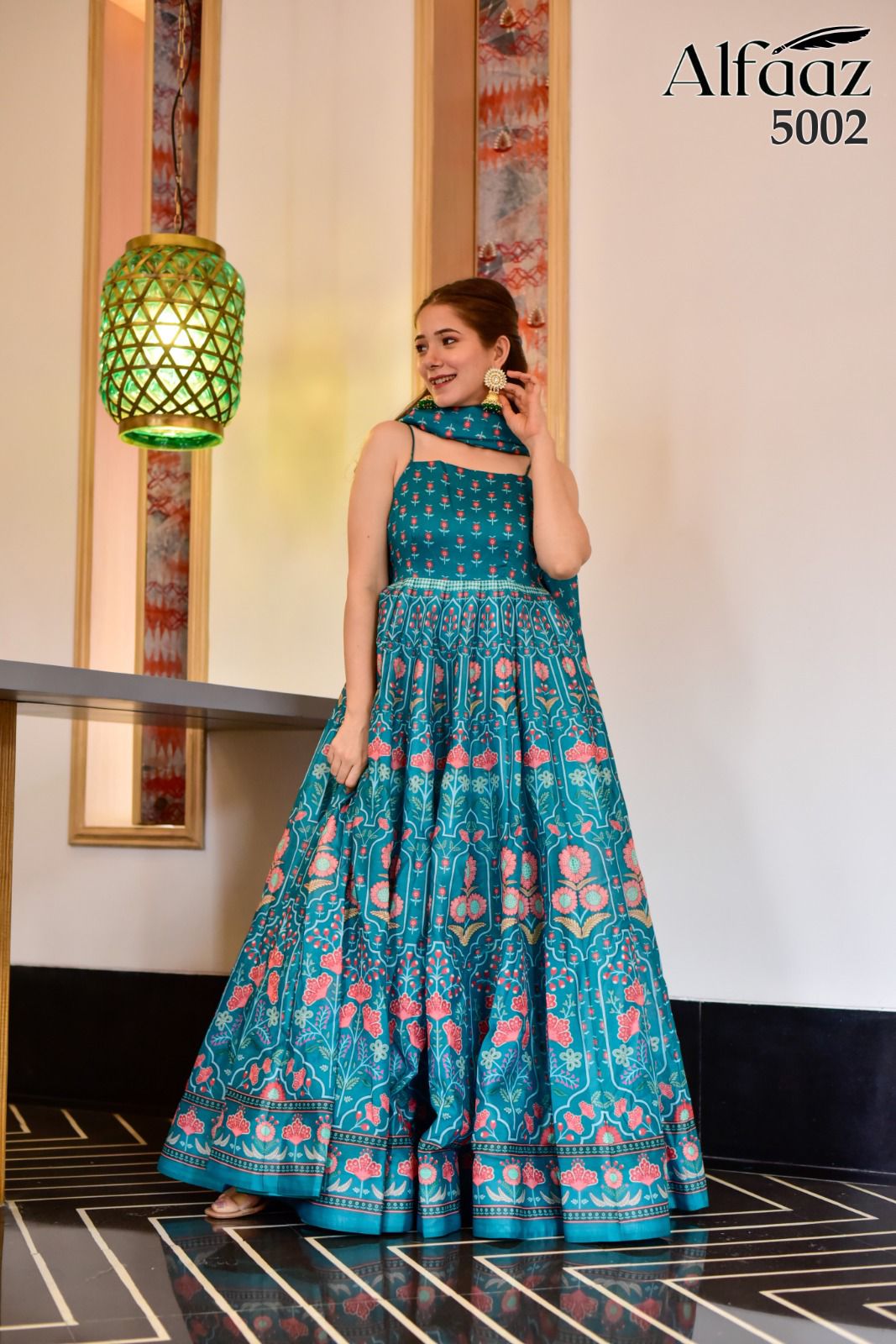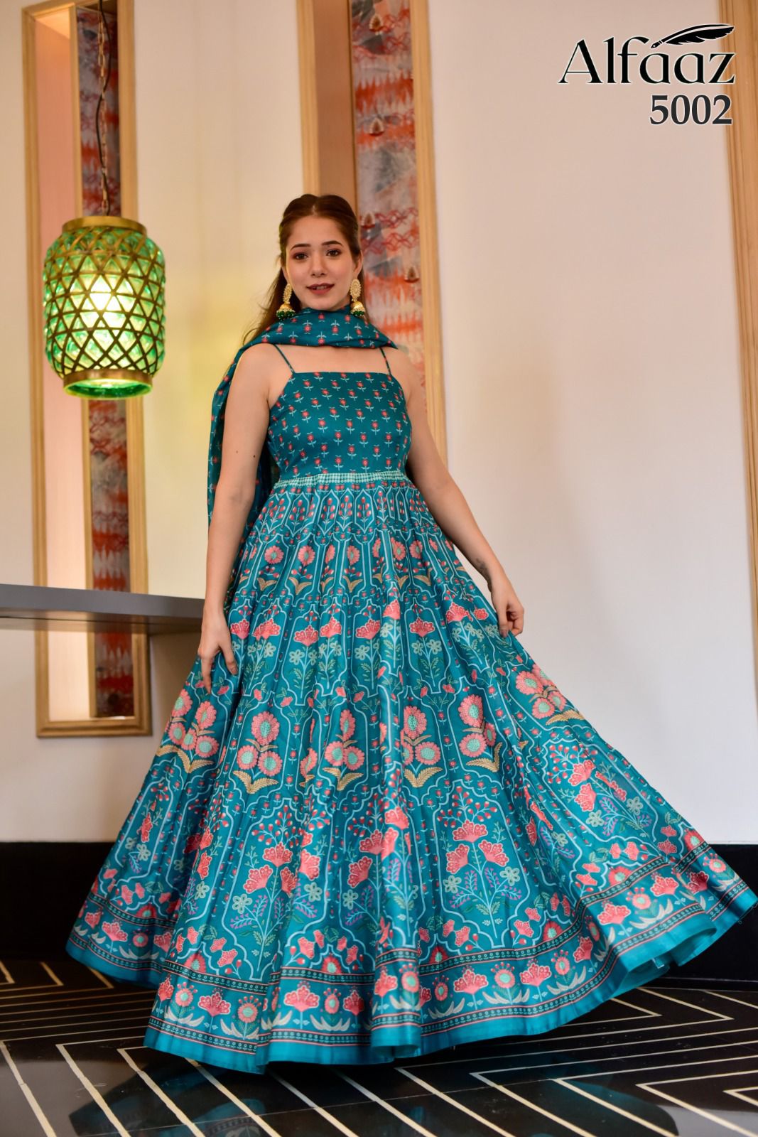 Buy Online Alfaaz Vol 5 By Alfaaz Designer Anarkali Type Bandhej Traditional Flaird Suits With Dupatta 4 Pcs of Full Catalogue at Wholesale Price. Looking for Alfaaz Vol 5 By Alfaaz Designer Anarkali Type Bandhej Traditional Flaird Suits With Dupatta Full Catalouge at Best Price? Buy Now Alfaaz Vol 5 By Alfaaz Designer Anarkali Type Bandhej Traditional Flaird Suits With Dupatta at Wholesale Rate of Rs 4796 with Total 4 Pcs from authroized dealer and supplier of Brand. Cost of Each piece is just only Rs 1199 which is very low and affordable price to resale the product in your retail store ,This is Surat based Wholesale Supplier & Dealer of Brand. Click on Brand name to Know more about Brand's products.Call or Whatsapp on 9898838984 for booking or enquiry