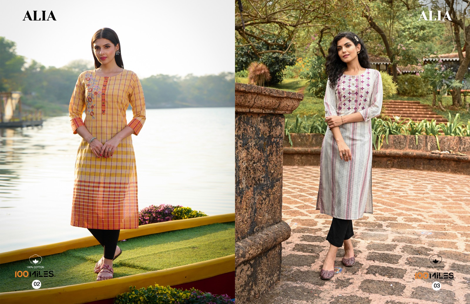 Buy Online Alia By 100 Miles 4 Pcs of Full Catalogue at Wholesale Price. Looking for Alia By 100 Miles Full Catalouge at Best Price? Buy Now Alia By 100 Miles at Wholesale Rate of Rs 1620 with Total 4 Pcs from authroized dealer and supplier of 100 MILES Brand. Cost of Each piece is just only Rs 405 which is very low and affordable price to resale the product in your retail store ,This is Surat based Wholesale Supplier & Dealer of 100 MILES Brand. Click on Brand name to Know more about 100 MILES Brand's products.Call or Whatsapp on 9898838984 for booking or enquiry
