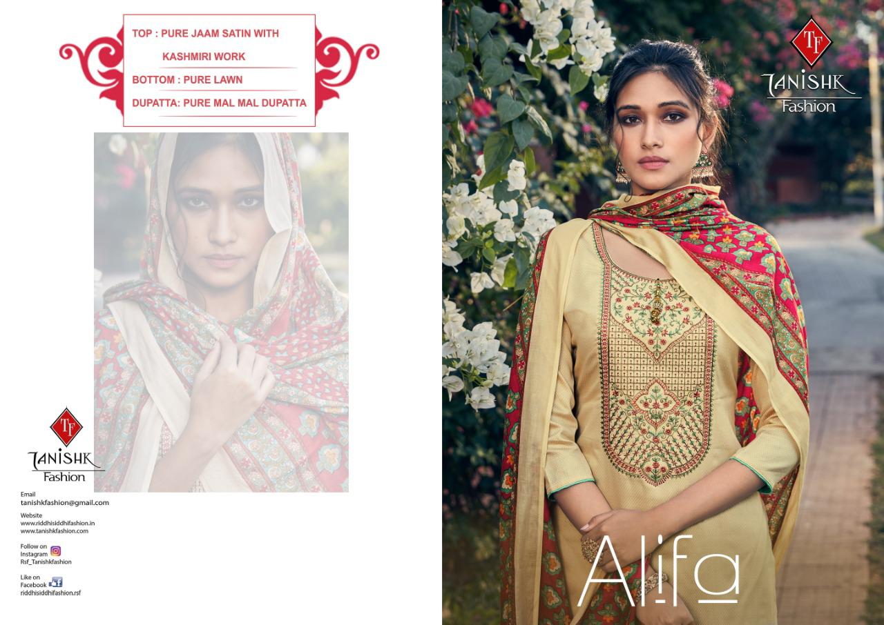 Buy Online Alifa By Tanishk Jam Silk Dress Materials Wholesale Supplier And Dealer Surat 8 Pcs of Full Catalogue at Wholesale Price. Looking for Alifa By Tanishk Jam Silk Dress Materials Wholesale Supplier And Dealer Surat Full Catalouge at Best Price? Buy Now Alifa By Tanishk Jam Silk Dress Materials Wholesale Supplier And Dealer Surat at Wholesale Rate of Rs 5400 with Total 8 Pcs from authroized dealer and supplier of Tanishk fashion Brand. Cost of Each piece is just only Rs 675 which is very low and affordable price to resale the product in your retail store ,This is Surat based Wholesale Supplier & Dealer of Tanishk fashion Brand. Click on Brand name to Know more about Tanishk fashion Brand's products.Call or Whatsapp on 9898838984 for booking or enquiry
