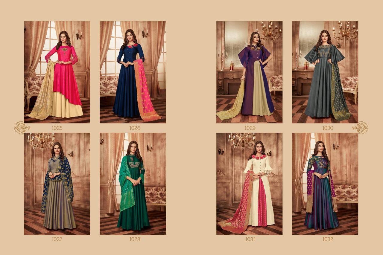 Alinaa vol 4 by tarrah series 1025 to 1032 silk designer gowns wholesale supplier surat Fabrics details and price attached Gst extra |