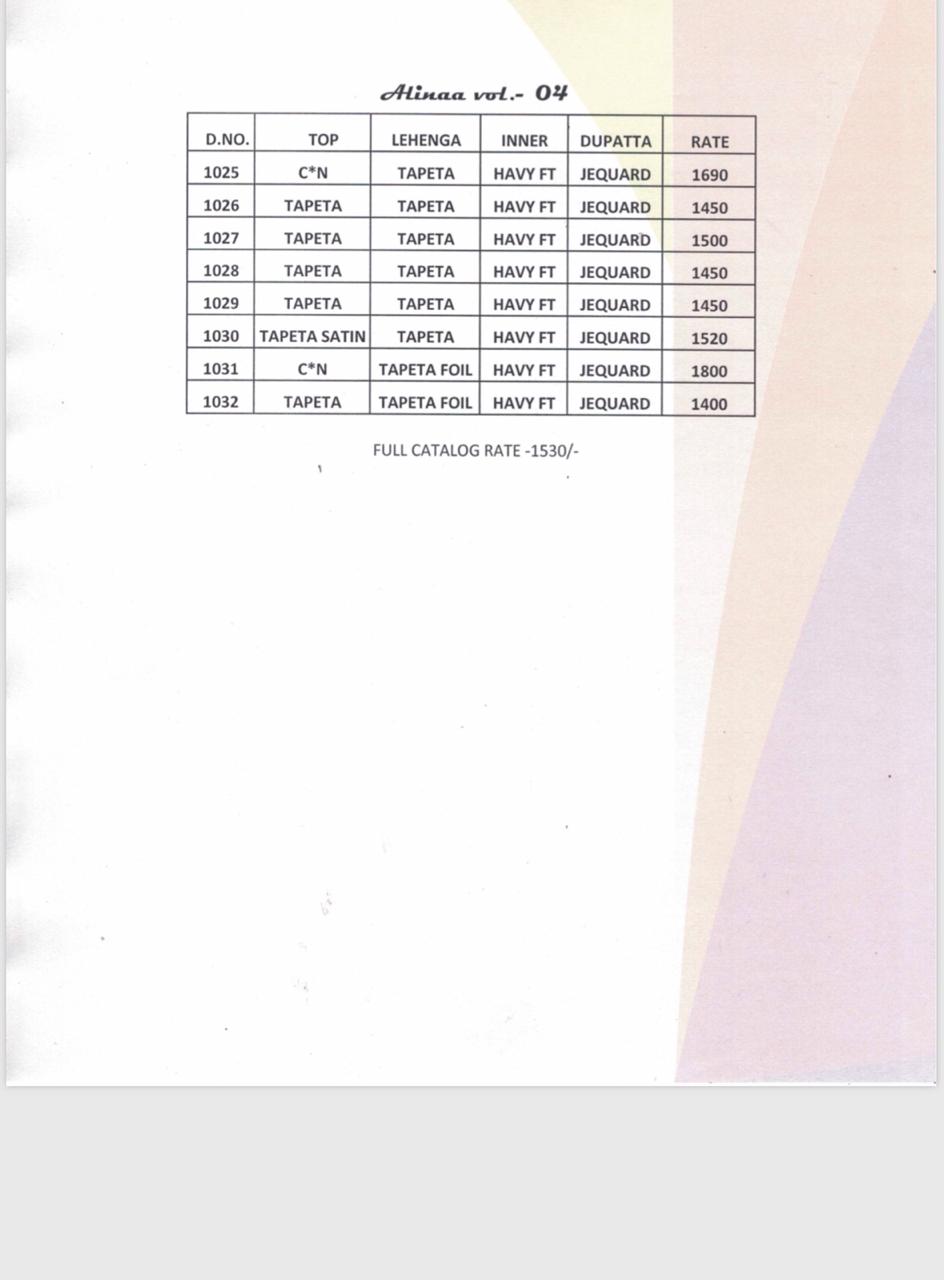 Buy Online Alinaa Vol 4 By Tarrah Series 1025 To 1032 Silk Designer Gowns Wholesale Supplier Surat 8 Pcs of Full Catalogue at Wholesale Price. Looking for Alinaa Vol 4 By Tarrah Series 1025 To 1032 Silk Designer Gowns Wholesale Supplier Surat Full Catalouge at Best Price? Buy Now Alinaa Vol 4 By Tarrah Series 1025 To 1032 Silk Designer Gowns Wholesale Supplier Surat at Wholesale Rate of Rs 12240 with Total 8 Pcs from authroized dealer and supplier of BRAND'S Brand. Cost of Each piece is just only Rs 1530 which is very low and affordable price to resale the product in your retail store ,This is Surat based Wholesale Supplier & Dealer of BRAND'S Brand. Click on Brand name to Know more about BRAND'S Brand's products.Call or Whatsapp on 9898838984 for booking or enquiry