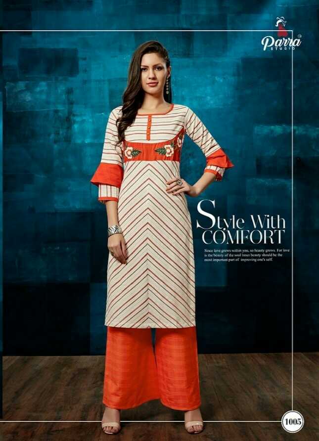 Buy Online Aliya By Parra Studio Cotton Pattarn Kurtis Wholesale Supplier Gujarat 5 Pcs of Full Catalogue at Wholesale Price. Looking for Aliya By Parra Studio Cotton Pattarn Kurtis Wholesale Supplier Gujarat Full Catalouge at Best Price? Buy Now Aliya By Parra Studio Cotton Pattarn Kurtis Wholesale Supplier Gujarat at Wholesale Rate of Rs 3625 with Total 5 Pcs from authroized dealer and supplier of Parra Studio Brand. Cost of Each piece is just only Rs 725 which is very low and affordable price to resale the product in your retail store ,This is Surat based Wholesale Supplier & Dealer of Parra Studio Brand. Click on Brand name to Know more about Parra Studio Brand's products.Call or Whatsapp on 9898838984 for booking or enquiry