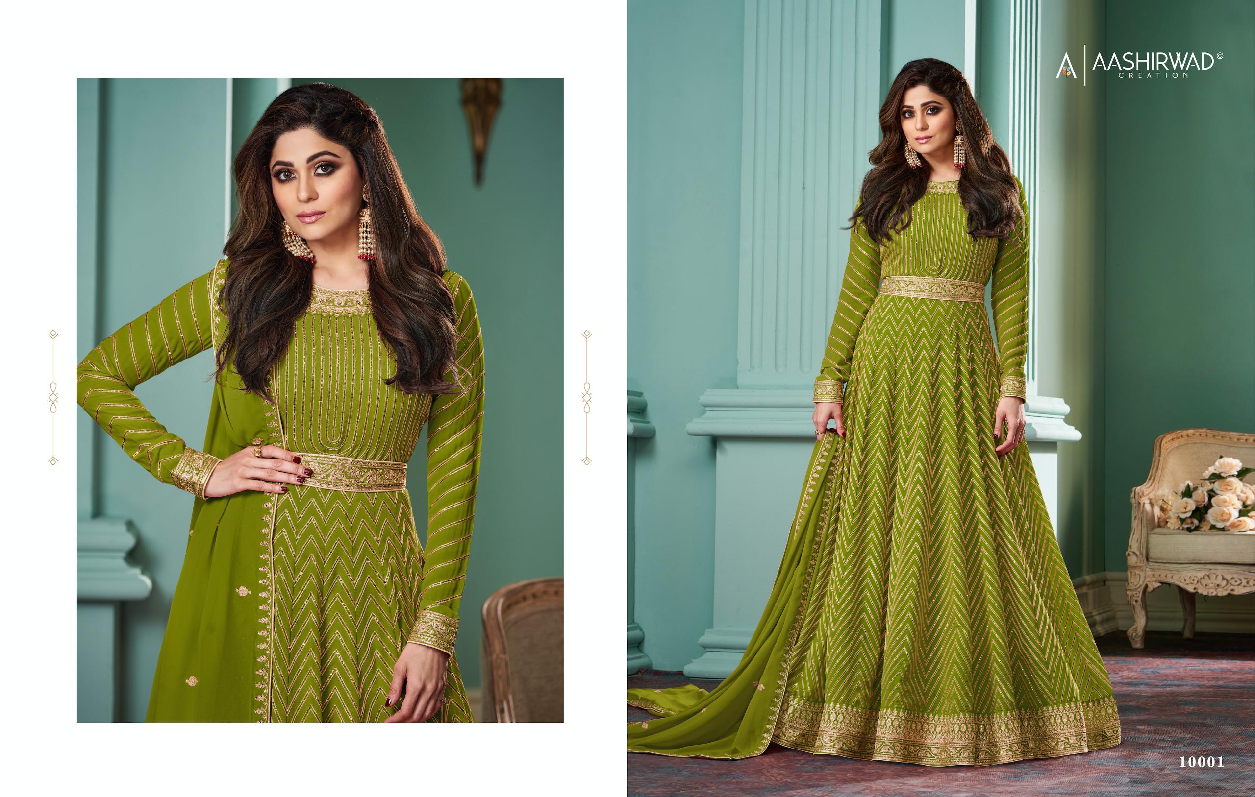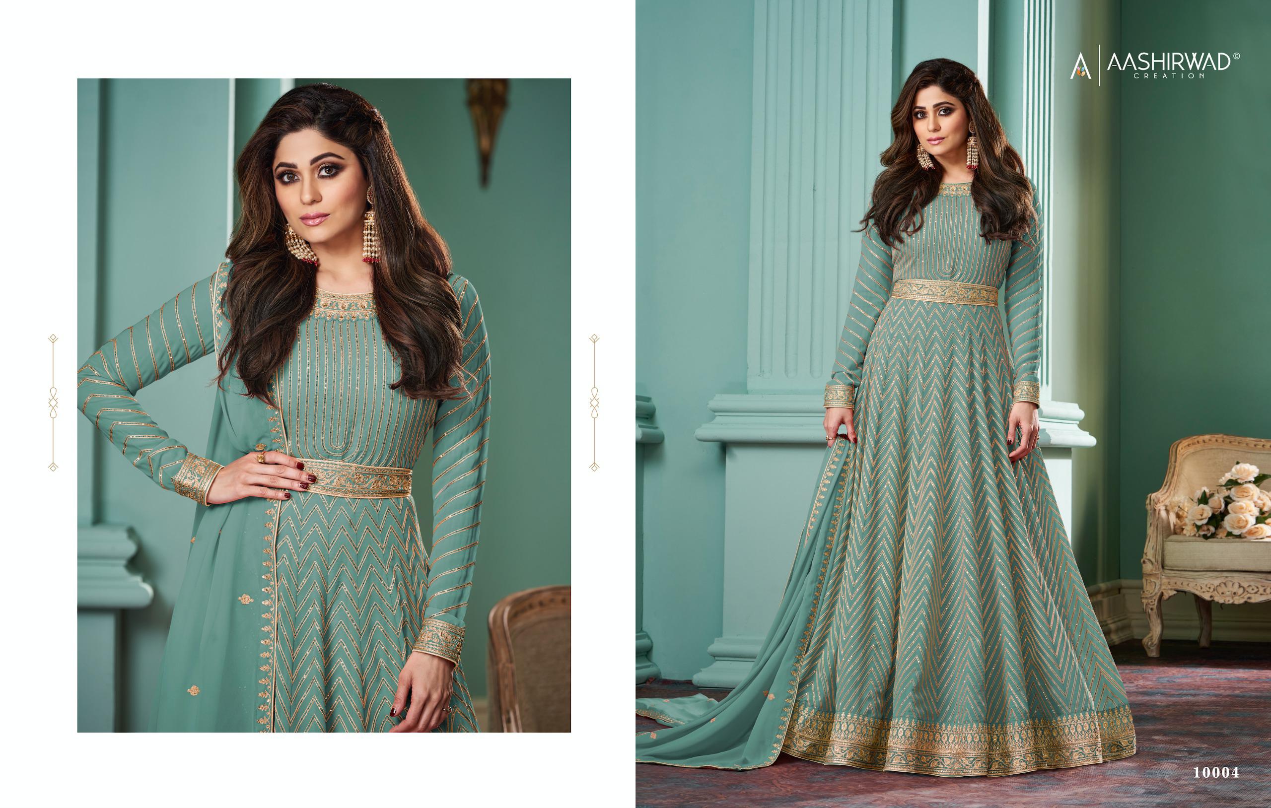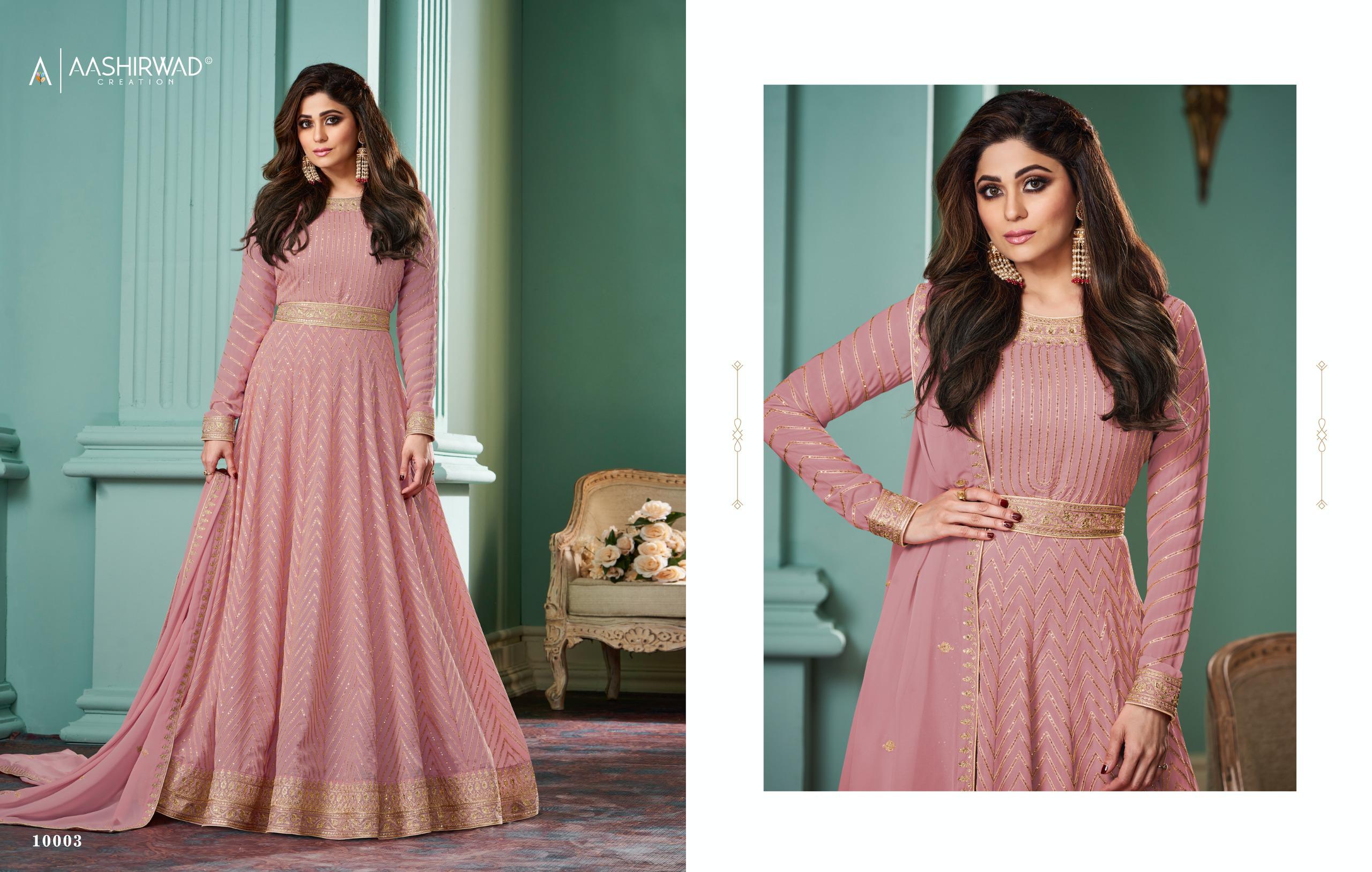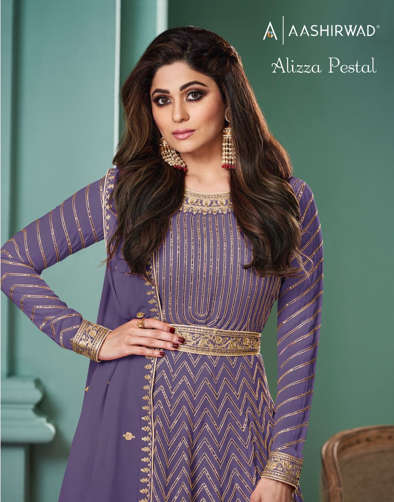 AASHIRWAD CREATION PRESENT NEW FREE SIZE STITCH COLLECTION (XL SIZE ) ?ALIZZA PESTAL & PLATINUM? ?FABRIC DETAILS !!!! TOP-REAL GEORGETTE (free size stitch ) DUPTTA- REAL GEORGETTE Price - 2300/- Gst 5% extra Singles Available Book Ur Order Fast Ready To Ship 100+ SINGLE |