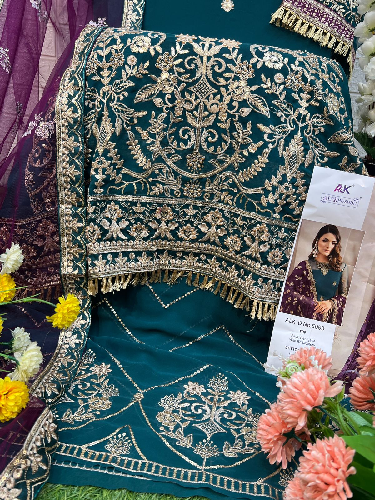 Buy Online Alk D No 5083 By Al Khushbu Georgette Pakistani Suit 5 Pcs of Full Catalogue at Wholesale Price. Looking for Alk D No 5083 By Al Khushbu Georgette Pakistani Suit Full Catalouge at Best Price? Buy Now Alk D No 5083 By Al Khushbu Georgette Pakistani Suit at Wholesale Rate of Rs 6995 with Total 5 Pcs from authroized dealer and supplier of Brand. Cost of Each piece is just only Rs 1399 which is very low and affordable price to resale the product in your retail store ,This is Surat based Wholesale Supplier & Dealer of Brand. Click on Brand name to Know more about Brand's products.Call or Whatsapp on 9898838984 for booking or enquiry