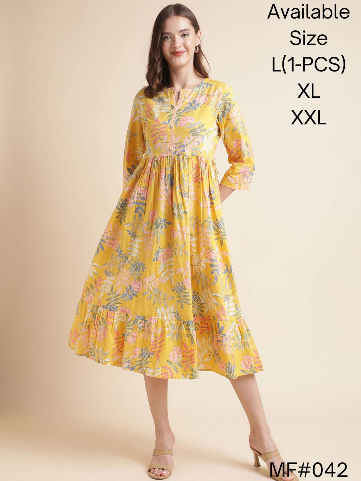 💃🏻💃🏻💃🏻💃🏻 All new festive collection this season 🥳 Heavy Printed Dresses for festive season . Grab this beautiful only Kurti💥 *Fabric - cotton* Available in 5 sizes