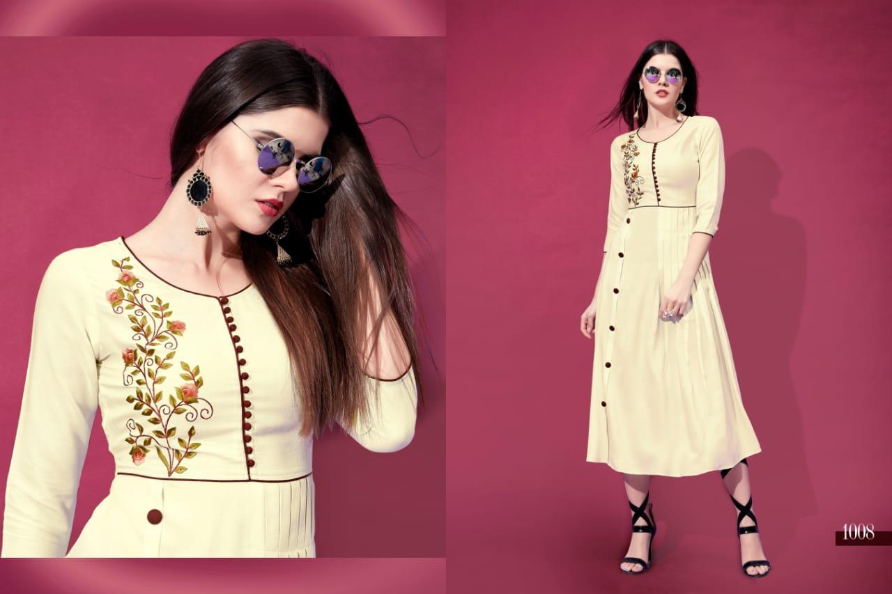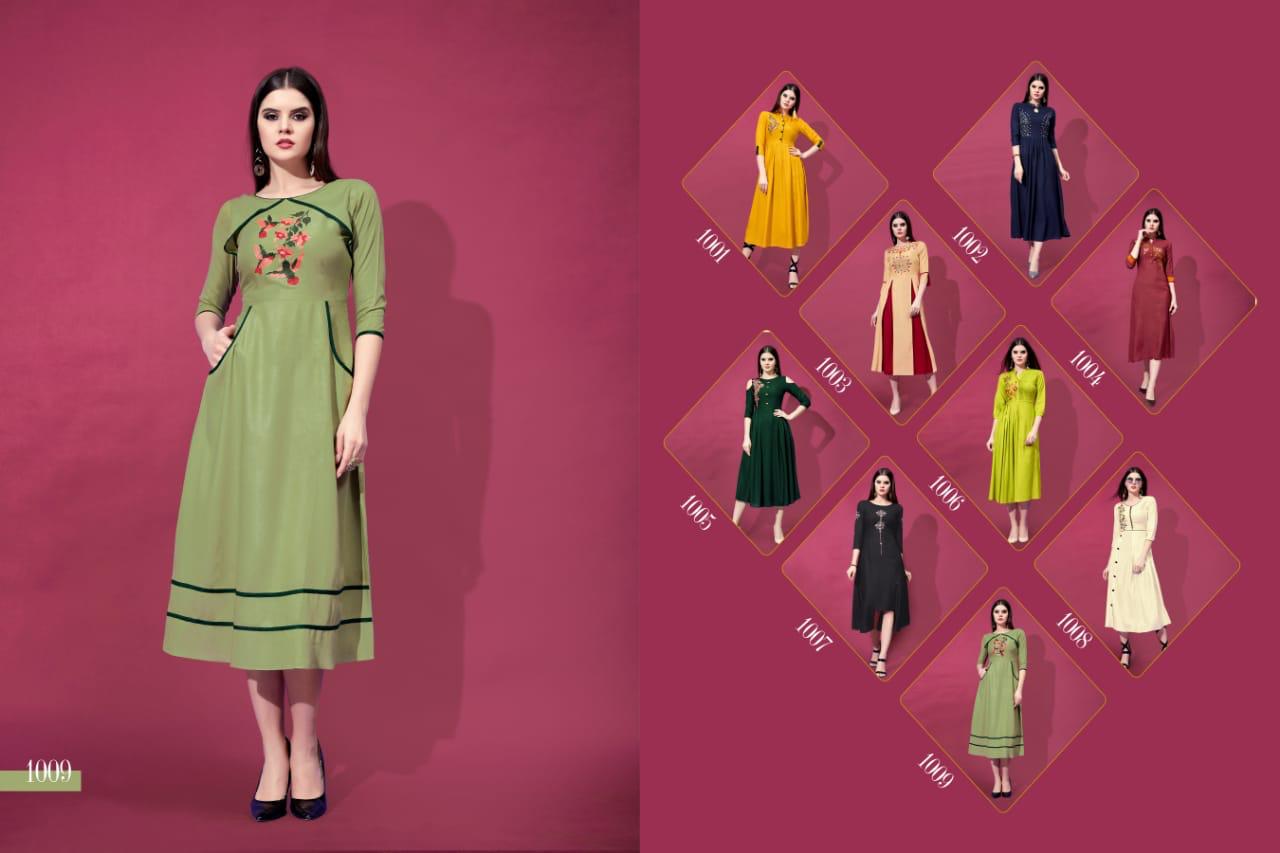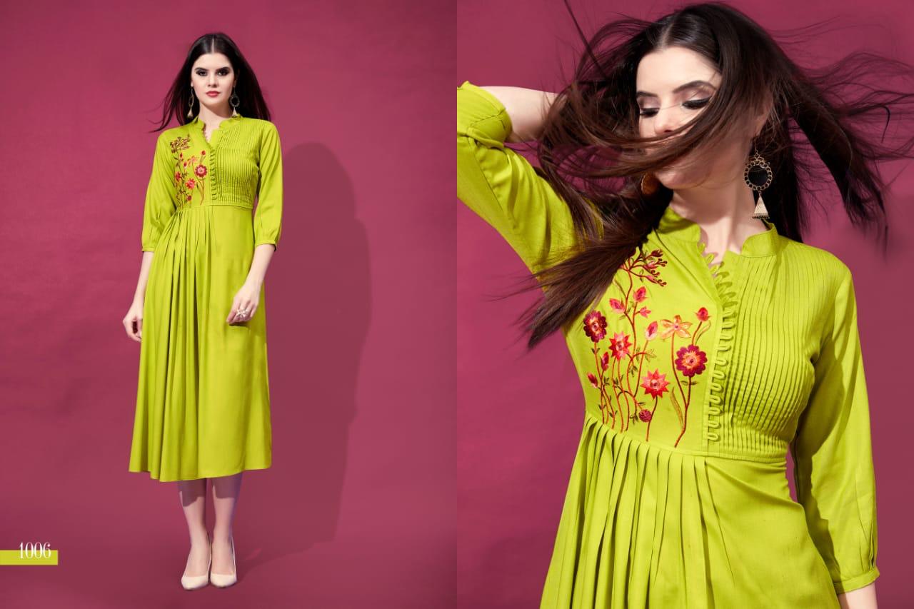 Buy Online Allora By Best Choice 1001 Series Fancy Reyon Kurti Collection Wholesaler Surat 9 Pcs of Full Catalogue at Wholesale Price. Looking for Allora By Best Choice 1001 Series Fancy Reyon Kurti Collection Wholesaler Surat Full Catalouge at Best Price? Buy Now Allora By Best Choice 1001 Series Fancy Reyon Kurti Collection Wholesaler Surat at Wholesale Rate of Rs 5085 with Total 9 Pcs from authroized dealer and supplier of Brand. Cost of Each piece is just only Rs 565 which is very low and affordable price to resale the product in your retail store ,This is Surat based Wholesale Supplier & Dealer of Brand. Click on Brand name to Know more about Brand's products.Call or Whatsapp on 9898838984 for booking or enquiry