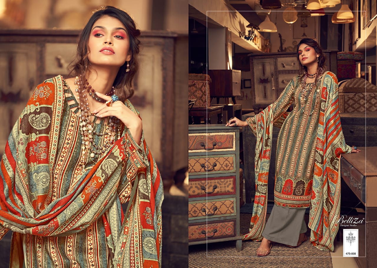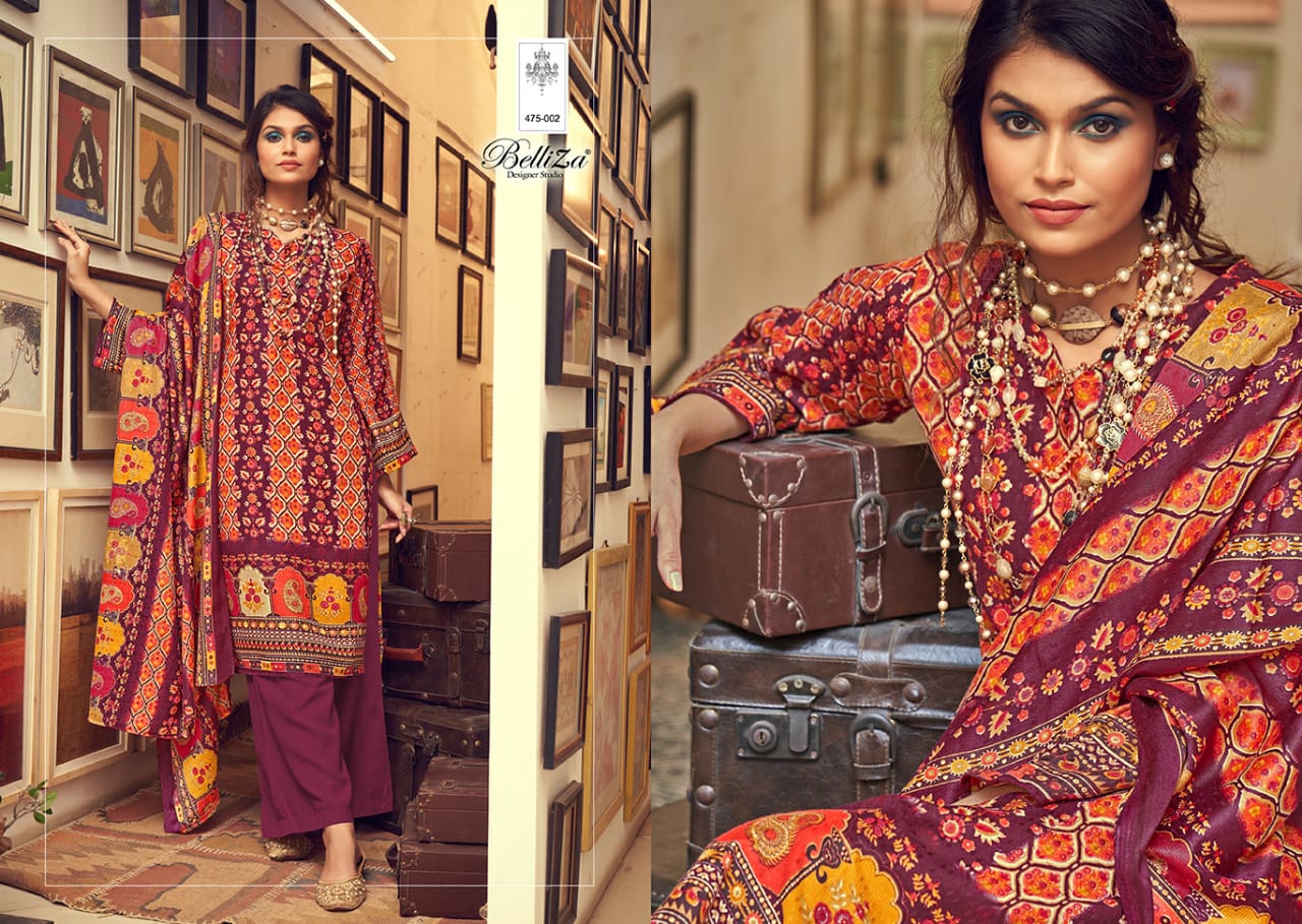 # Pure Pashmina Collection _*......BelliZa DesigNer StuDio......*_ _presents_ *"AL'MARINA"* _pure premium pashmina_ Vol-3 ??Top: 100% Pure Pashmina Digital Style Print (2.50 mtrs) ??Dupatta: Pure Pashmina Shawl (2.30 mtr) ??Bottom: Pure Pashmina Spun (3 mtrs apx) ??Pcs: 10 ??Selling Rate: 485/- (GST extra) At Belliza, Quality Pashmina Fabrics with Exquisite Designing at Best Price is our 'Cherished Legacy'. |
