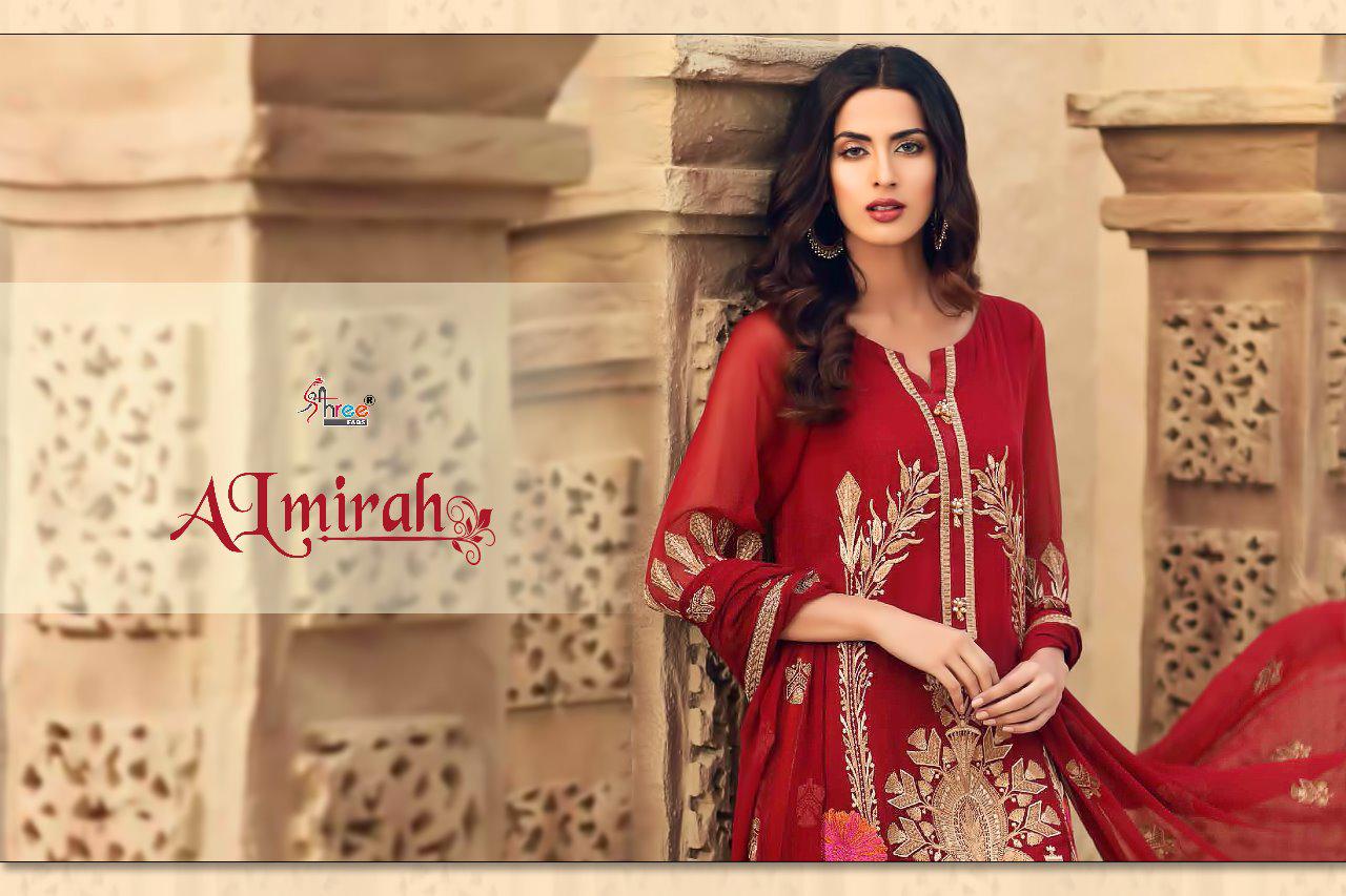 ALMIRAH TOP PURE COTTON WITH EMBRODERY BOTTOM SEMILAWN DUPPTA NAJMIN SIFFON WITH EMBRODERY DES 6 Rate 899+ gst Shree fabs surat |