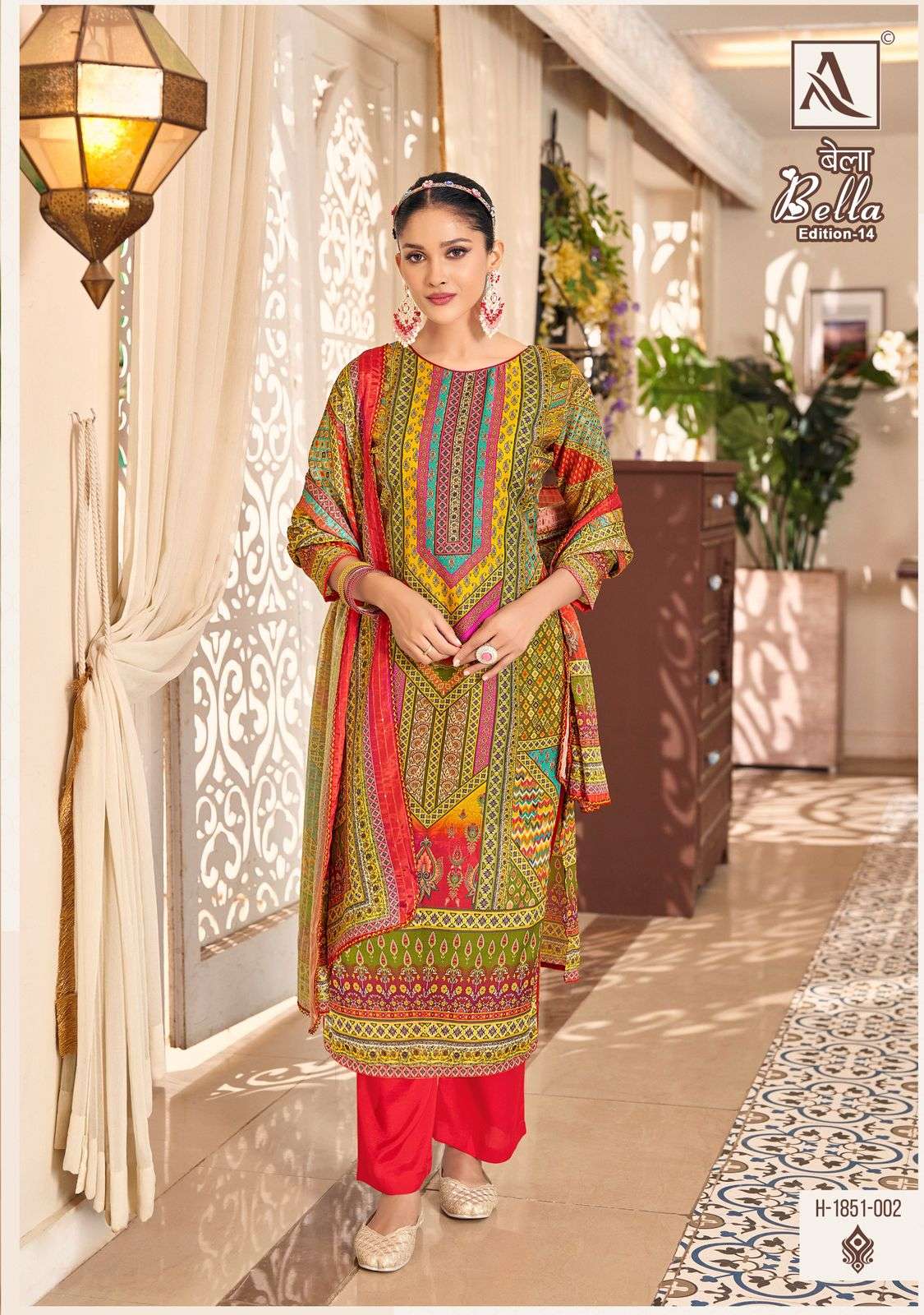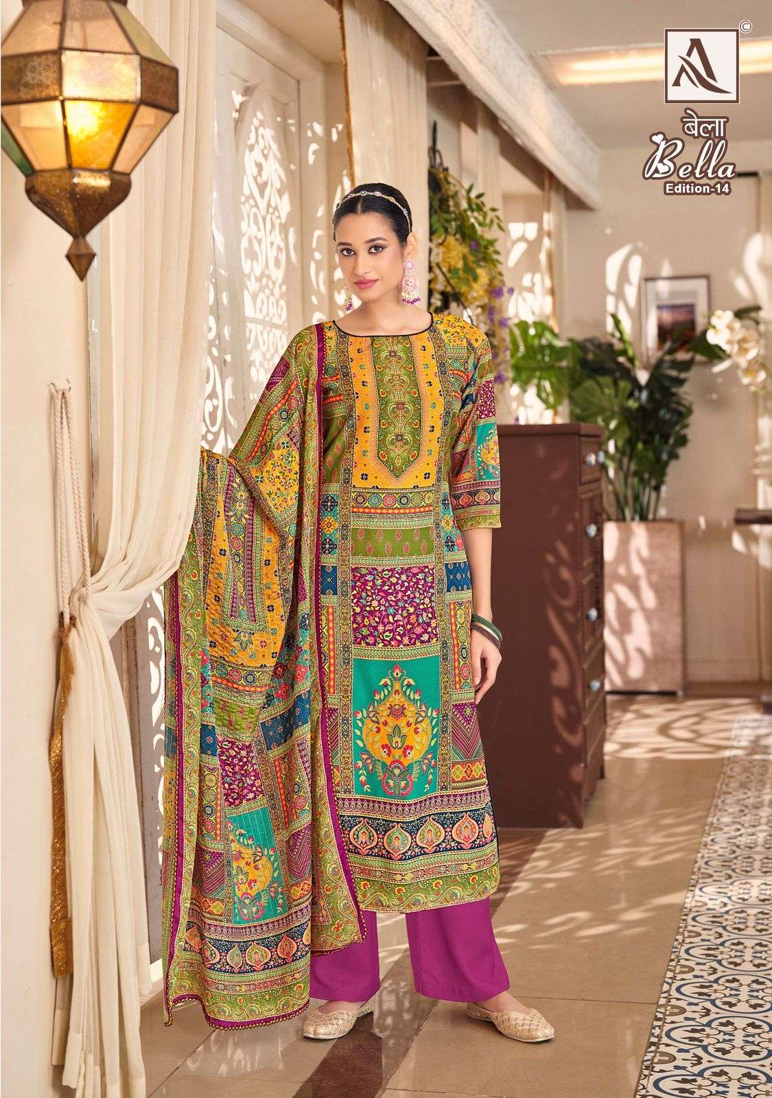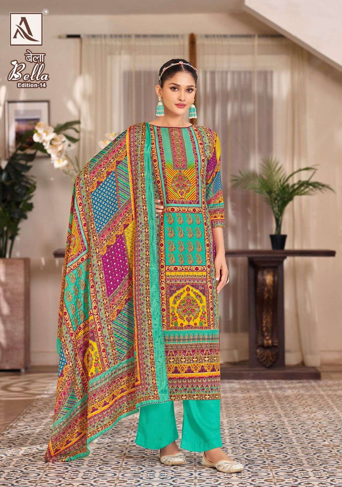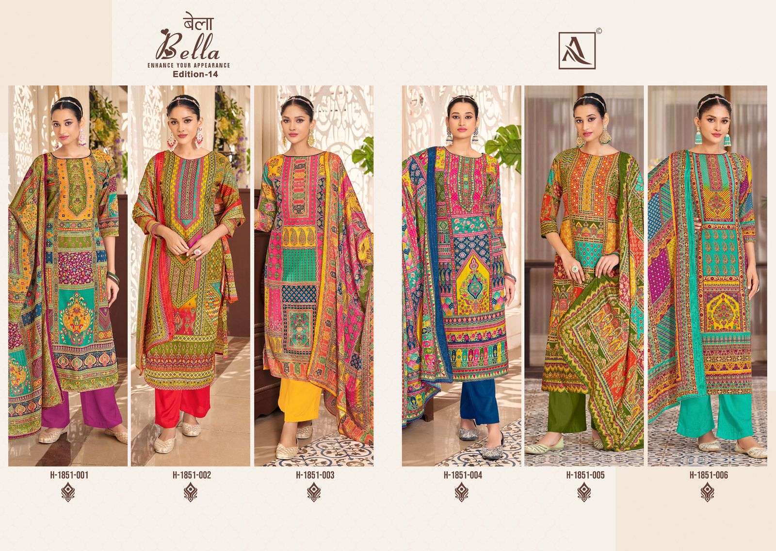 Buy Online ALOK BELLA 14 by Alok suit Digital Print Suit collection manufacturer surat 6 Pcs of Full Catalogue at Wholesale Price. Looking for ALOK BELLA 14 by Alok suit Digital Print Suit collection manufacturer surat Full Catalouge at Best Price? Buy Now ALOK BELLA 14 by Alok suit Digital Print Suit collection manufacturer surat at Wholesale Rate of Rs 4146 with Total 6 Pcs from authroized dealer and supplier of ALOK SUIT Brand. Cost of Each piece is just only Rs 691 which is very low and affordable price to resale the product in your retail store ,This is Surat based Wholesale Supplier & Dealer of ALOK SUIT Brand. Click on Brand name to Know more about ALOK SUIT Brand's products.Call or Whatsapp on 9898838984 for booking or enquiry