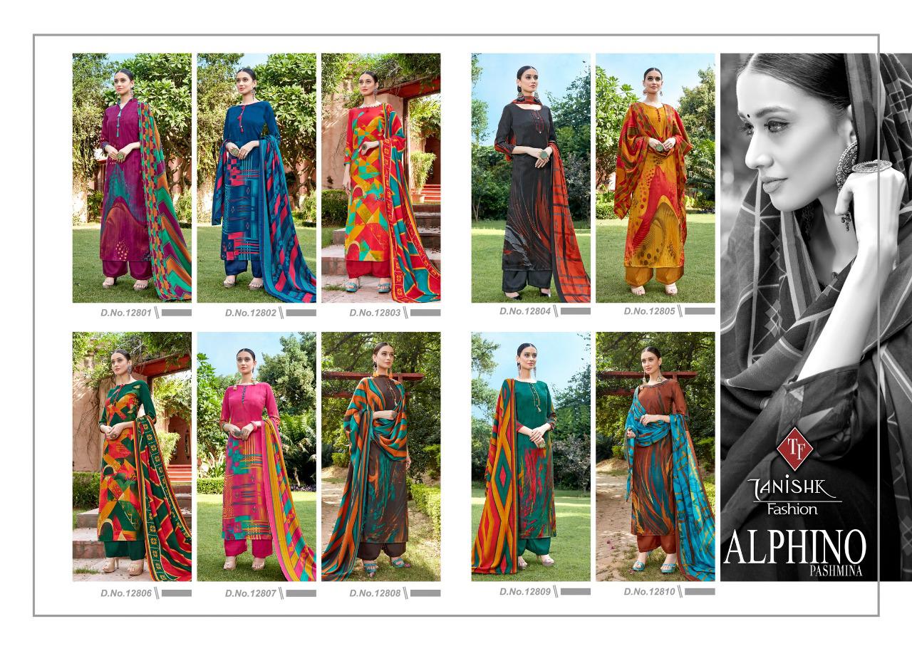Buy Online Alphino Pashmina By Tanishk Fashion Pashmina Dress Materials Wholesale Supplier India 10 Pcs of Full Catalogue at Wholesale Price. Looking for Alphino Pashmina By Tanishk Fashion Pashmina Dress Materials Wholesale Supplier India Full Catalouge at Best Price? Buy Now Alphino Pashmina By Tanishk Fashion Pashmina Dress Materials Wholesale Supplier India at Wholesale Rate of Rs 5250 with Total 10 Pcs from authroized dealer and supplier of Tanishk fashion Brand. Cost of Each piece is just only Rs 525 which is very low and affordable price to resale the product in your retail store ,This is Surat based Wholesale Supplier & Dealer of Tanishk fashion Brand. Click on Brand name to Know more about Tanishk fashion Brand's products.Call or Whatsapp on 9898838984 for booking or enquiry