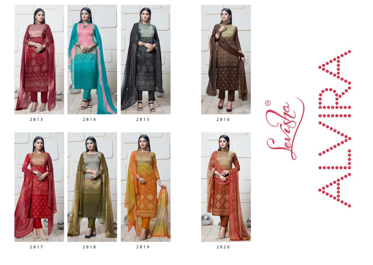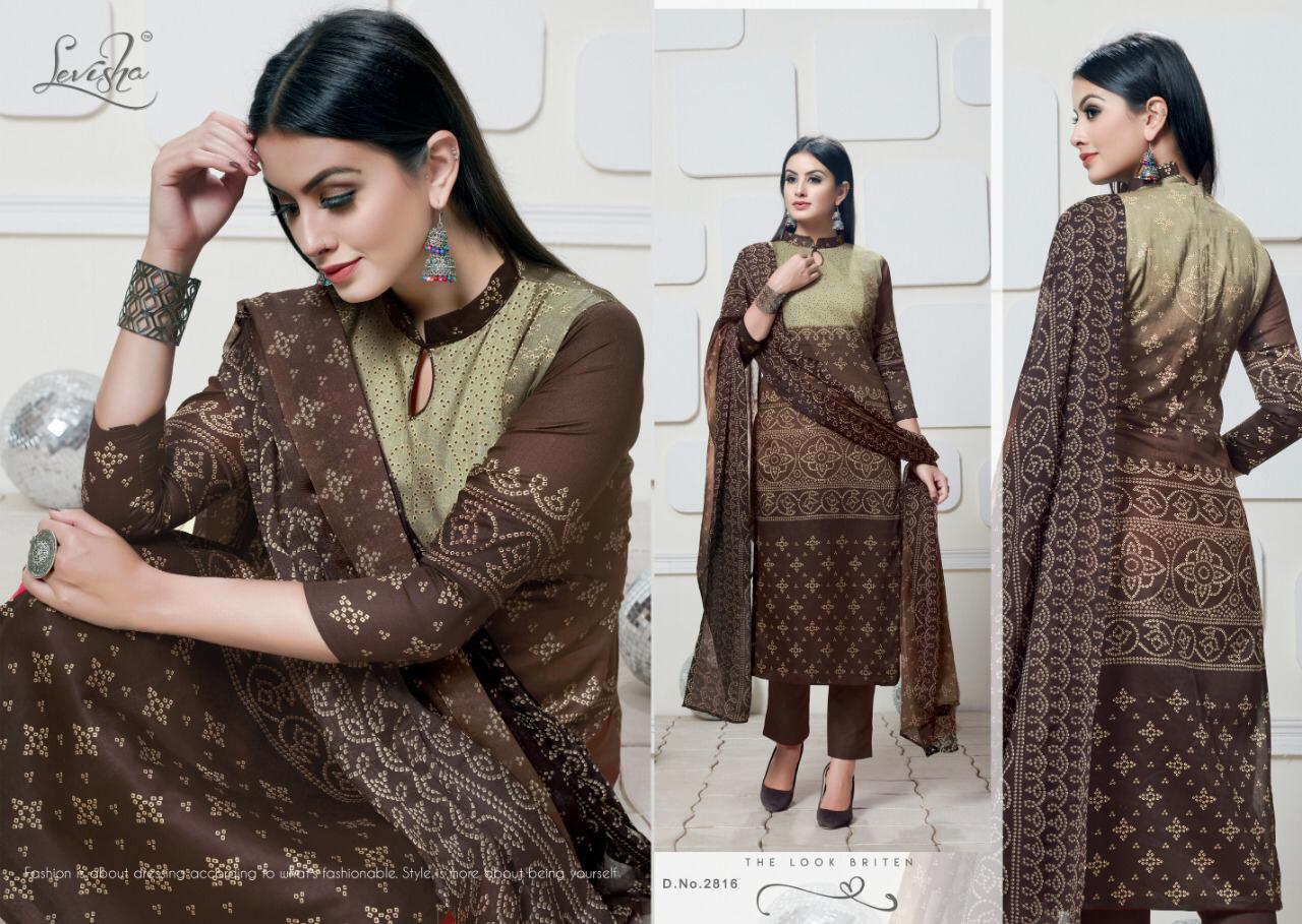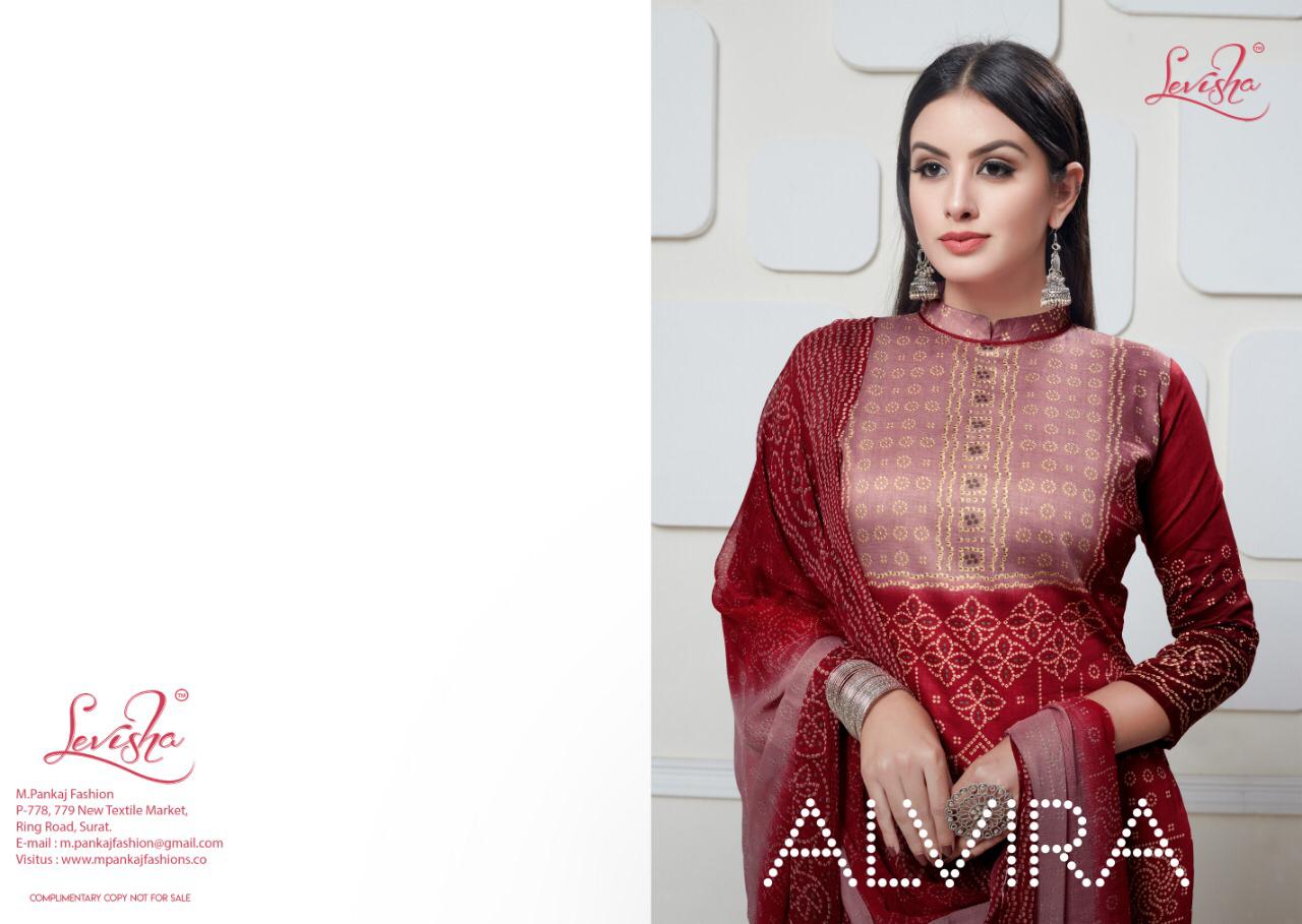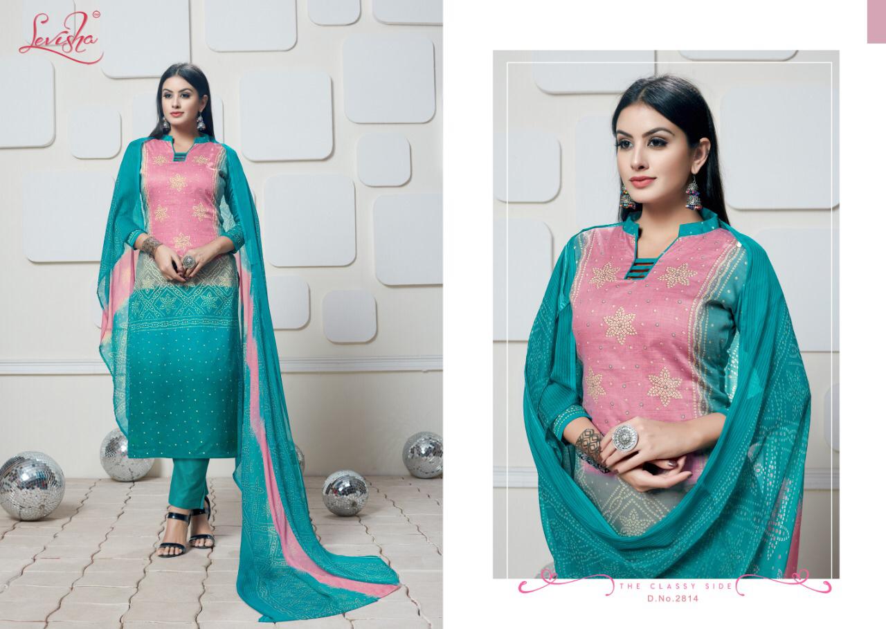 Buy Online Alvira Bandhani Collection By Levisha 2813 Series Fancy Cotton Satin Bandhani Printed Salwar Kameez Catlog Wholesaler Surat 8 Pcs of Full Catalogue at Wholesale Price. Looking for Alvira Bandhani Collection By Levisha 2813 Series Fancy Cotton Satin Bandhani Printed Salwar Kameez Catlog Wholesaler Surat Full Catalouge at Best Price? Buy Now Alvira Bandhani Collection By Levisha 2813 Series Fancy Cotton Satin Bandhani Printed Salwar Kameez Catlog Wholesaler Surat at Wholesale Rate of Rs 3800 with Total 8 Pcs from authroized dealer and supplier of LEVISHA Brand. Cost of Each piece is just only Rs 475 which is very low and affordable price to resale the product in your retail store ,This is Surat based Wholesale Supplier & Dealer of LEVISHA Brand. Click on Brand name to Know more about LEVISHA Brand's products.Call or Whatsapp on 9898838984 for booking or enquiry