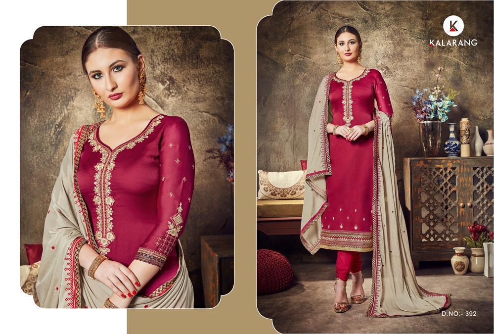 ? *Kalarang.* has launched _Catalog name_ : *Alvira* ? _Fabric Details_ ? ?Top :- SATIN GEORGETTE WITH HEAVY EMBROIDERY & SLEEVE WORK ?Bottom:- HEAVY SANTOON ?Dupatta:- PURE CHINON DUPPATTA WITH HEAVY EMBROIDERY & FANCY BROCADE BORDER ?Total Design :- 4 ?Rate : Rs.999/- per piece ?Dispatching 5 to 6 days later ?Booking started from now... ?Order yours soon... Rate -999 per pcs . Set To Set. GST 5 Percent Extra. |