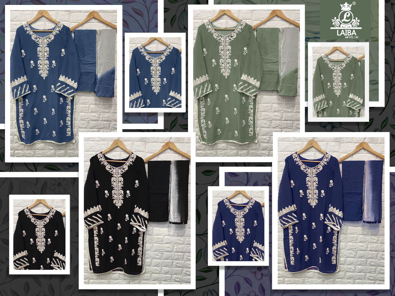 Buy Online Am Vol 143 By Laiba The Designer Studio Pakistani Collection Manufacturer Traders And Dealer From India 4 Pcs of Full Catalogue at Wholesale Price. Looking for Am Vol 143 By Laiba The Designer Studio Pakistani Collection Manufacturer Traders And Dealer From India Full Catalouge at Best Price? Buy Now Am Vol 143 By Laiba The Designer Studio Pakistani Collection Manufacturer Traders And Dealer From India at Wholesale Rate of Rs 5196 with Total 4 Pcs from authroized dealer and supplier of Brand. Cost of Each piece is just only Rs 1299 which is very low and affordable price to resale the product in your retail store ,This is Surat based Wholesale Supplier & Dealer of Brand. Click on Brand name to Know more about Brand's products.Call or Whatsapp on 9898838984 for booking or enquiry