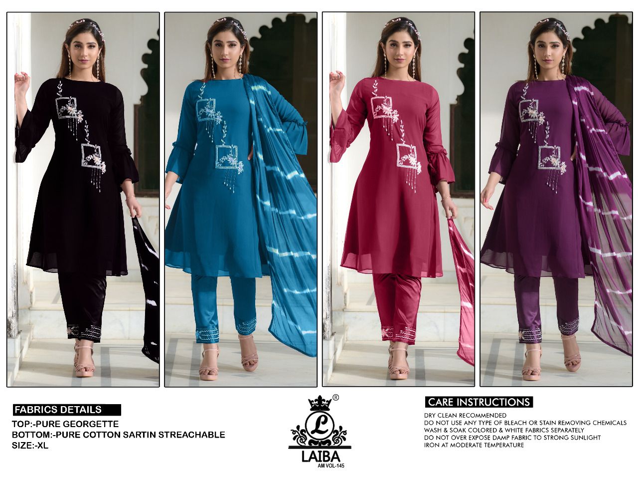 Am Vol 145 By Laiba The Designer Studio Georgette Top Bottom With Dupatta Pakistani Collection Wholesaler Supplier From Surat