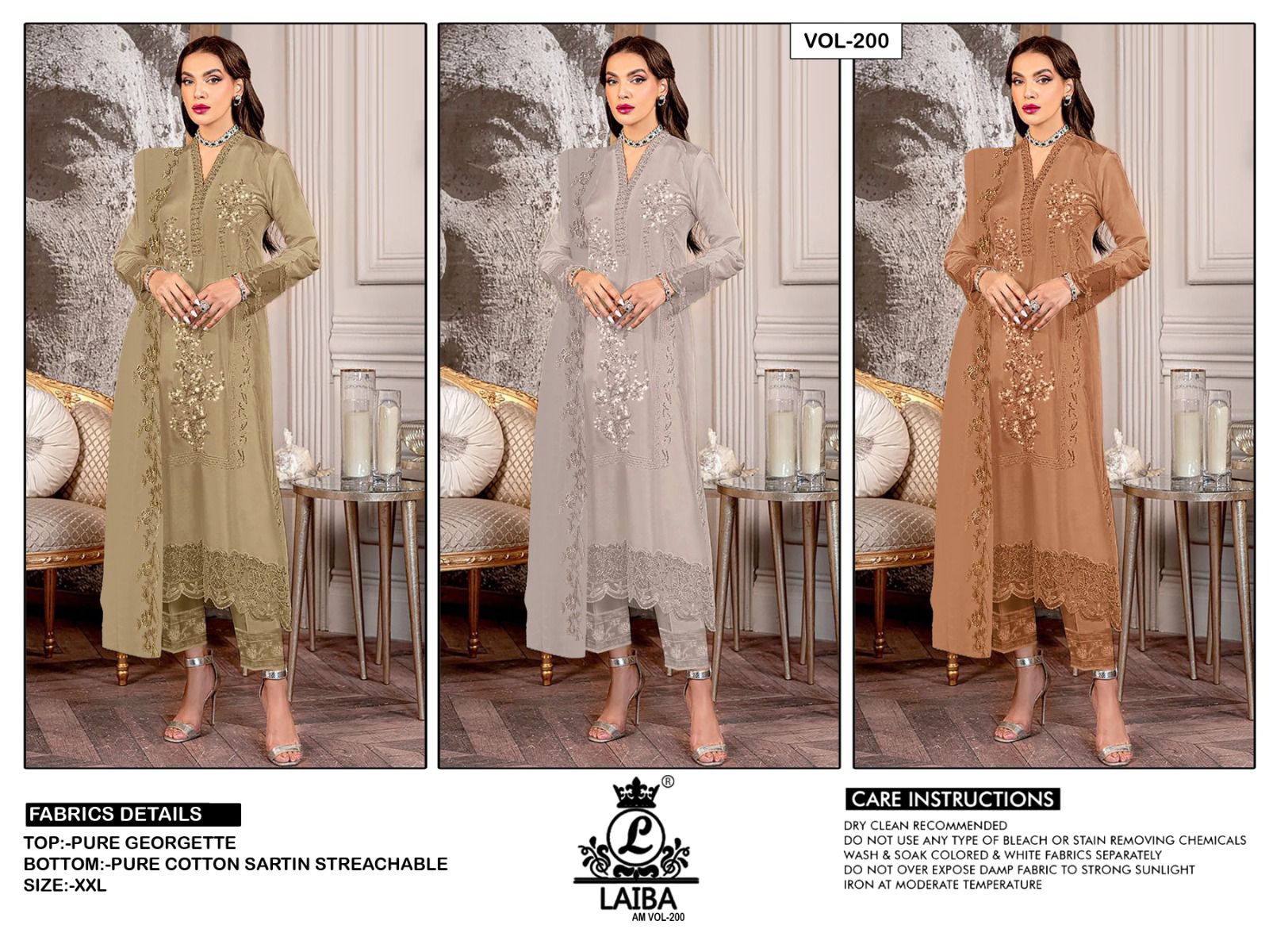Buy Online Am Vol 200 By Laiba The Designer Studio Manufacturing Surat 3 Pcs of Full Catalogue at Wholesale Price. Looking for Am Vol 200 By Laiba The Designer Studio Manufacturing Surat Full Catalouge at Best Price? Buy Now Am Vol 200 By Laiba The Designer Studio Manufacturing Surat at Wholesale Rate of Rs 4053 with Total 3 Pcs from authroized dealer and supplier of Brand. Cost of Each piece is just only Rs 1351 which is very low and affordable price to resale the product in your retail store ,This is Surat based Wholesale Supplier & Dealer of Brand. Click on Brand name to Know more about Brand's products.Call or Whatsapp on 9898838984 for booking or enquiry