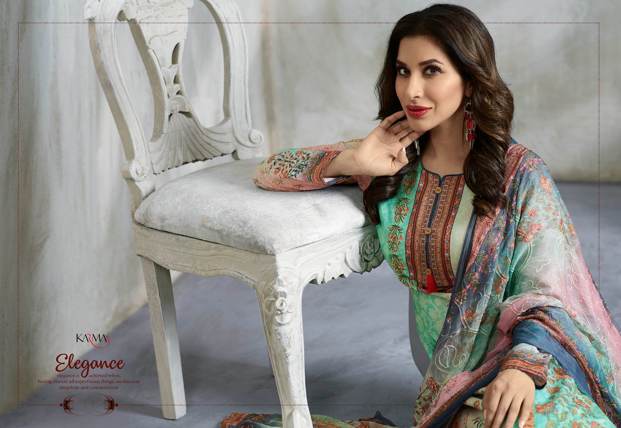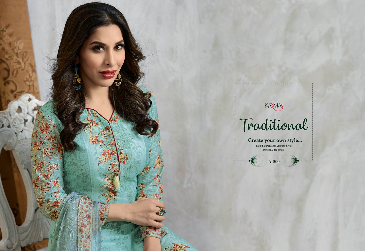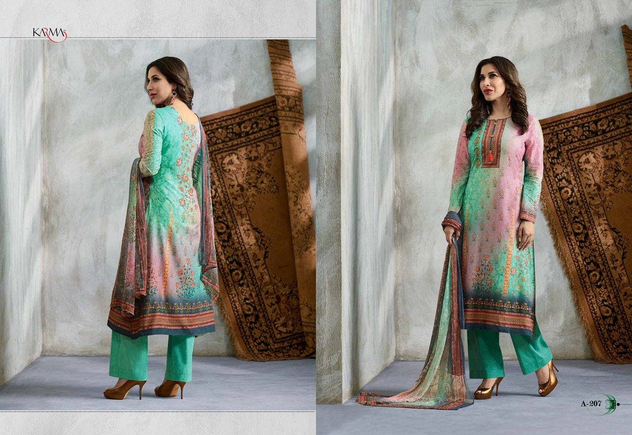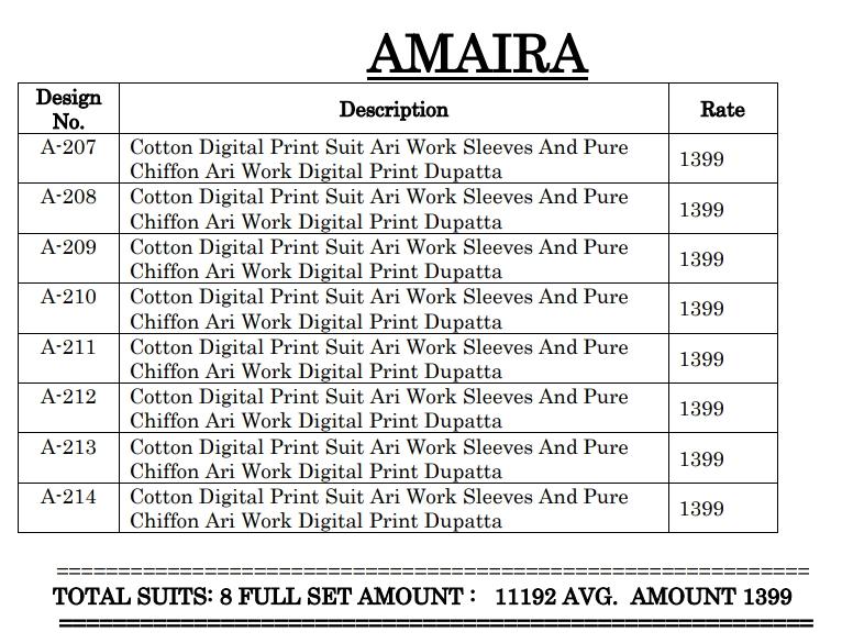 *KARMA* ? *AMAIRA*? *SAUFIE CHAUDHARY* *A-207 SERIES..* *RATE LIST & FABRIC DESCRIPTION ATTACHED..* *SET TO SET ONLY..* GST 5 Percent Extra. Delivery from tomorrow. |