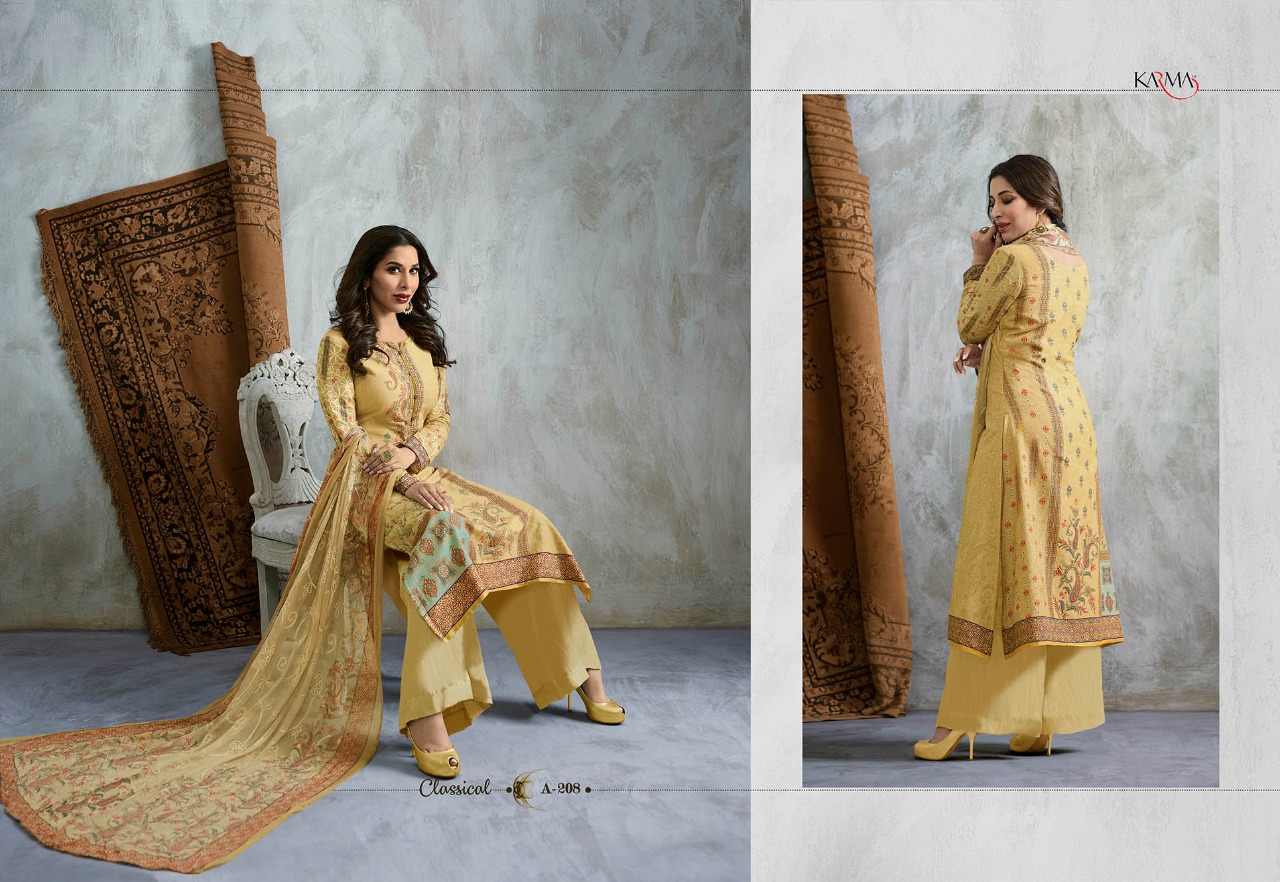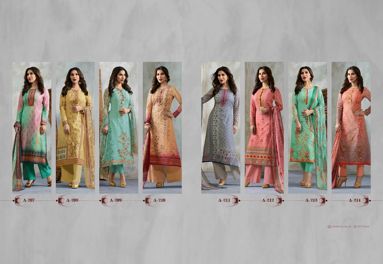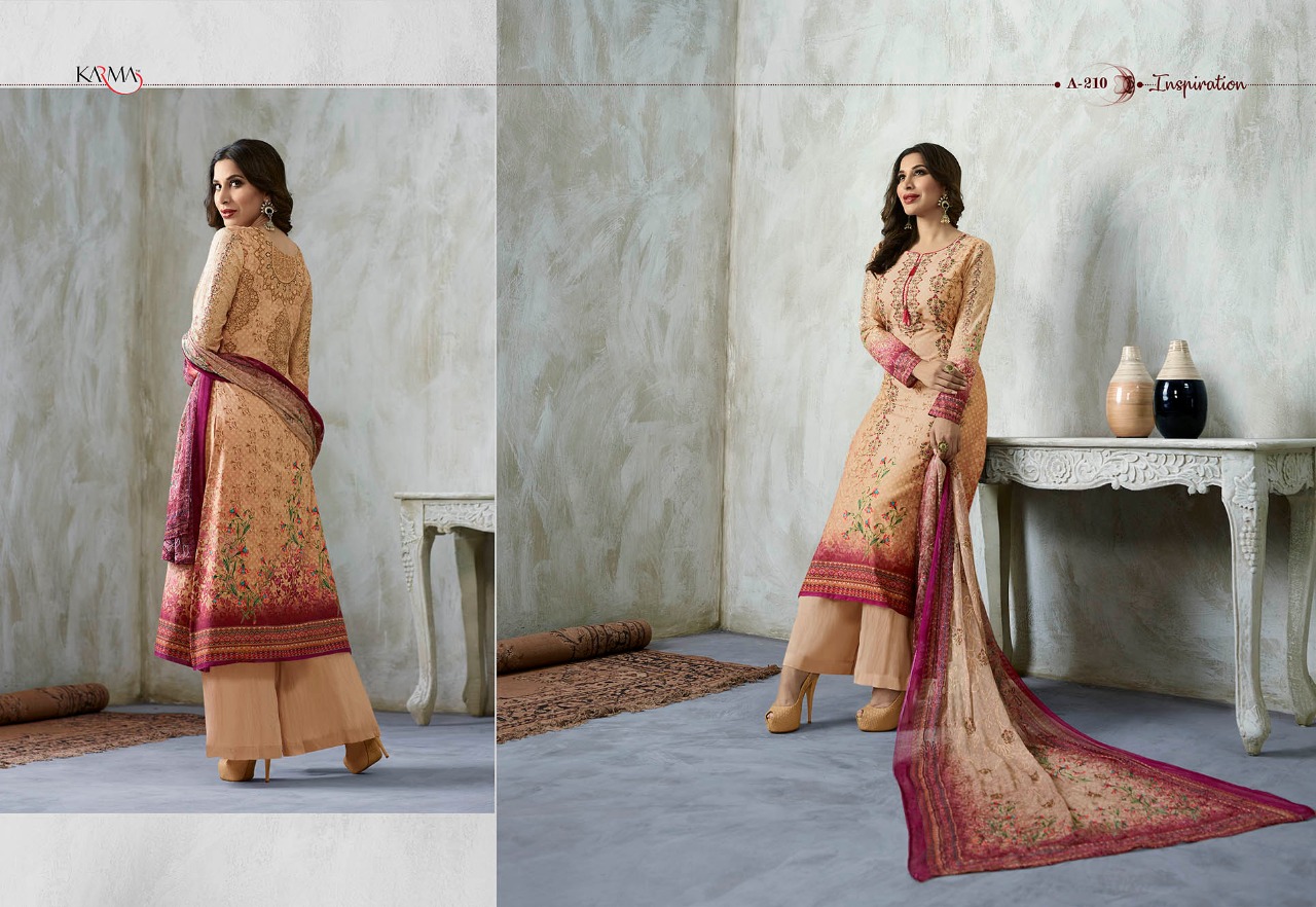 *KARMA* ? *AMAIRA*? *SAUFIE CHAUDHARY* *A-207 SERIES..* *RATE LIST & FABRIC DESCRIPTION ATTACHED..* *SET TO SET ONLY..* GST 5 Percent Extra. Delivery from tomorrow. |
