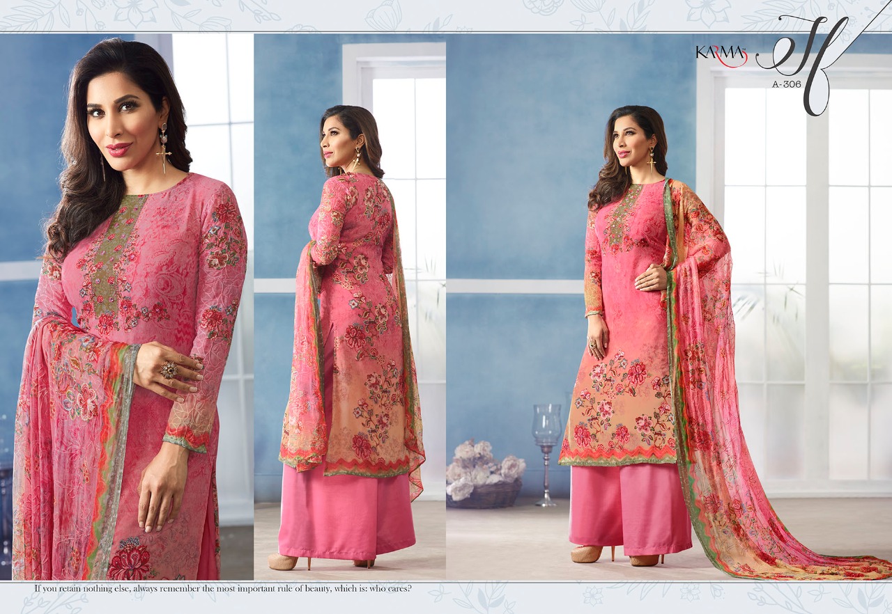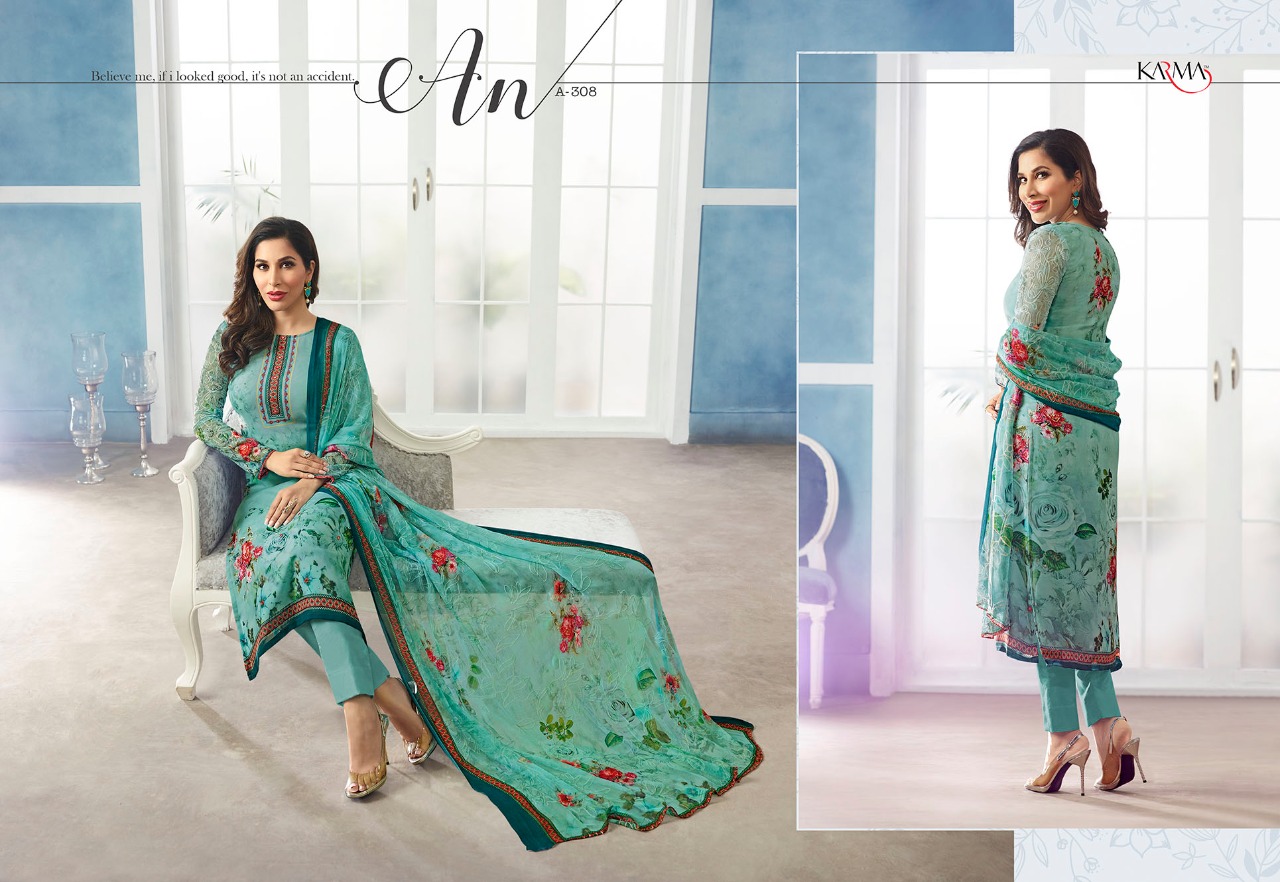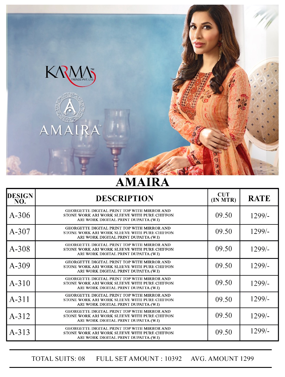 Buy Online Amaira By Karma Digital Printed Georgette Designer Suits Wholesale Supplier And Dealer Surat 8 Pcs of Full Catalogue at Wholesale Price. Looking for Amaira By Karma Digital Printed Georgette Designer Suits Wholesale Supplier And Dealer Surat Full Catalouge at Best Price? Buy Now Amaira By Karma Digital Printed Georgette Designer Suits Wholesale Supplier And Dealer Surat at Wholesale Rate of Rs 10392 with Total 8 Pcs from authroized dealer and supplier of KARMA Brand. Cost of Each piece is just only Rs 1299 which is very low and affordable price to resale the product in your retail store ,This is Surat based Wholesale Supplier & Dealer of KARMA Brand. Click on Brand name to Know more about KARMA Brand's products.Call or Whatsapp on 9898838984 for booking or enquiry