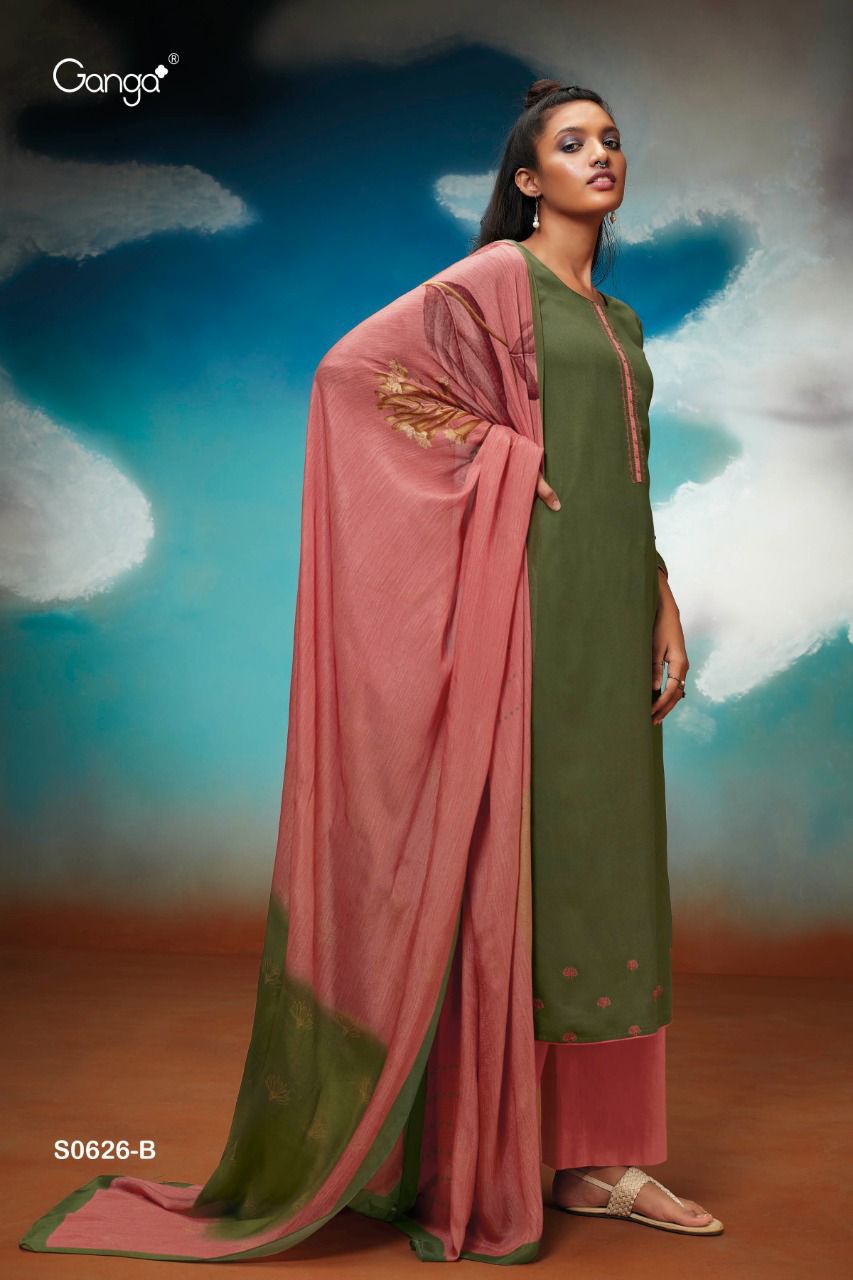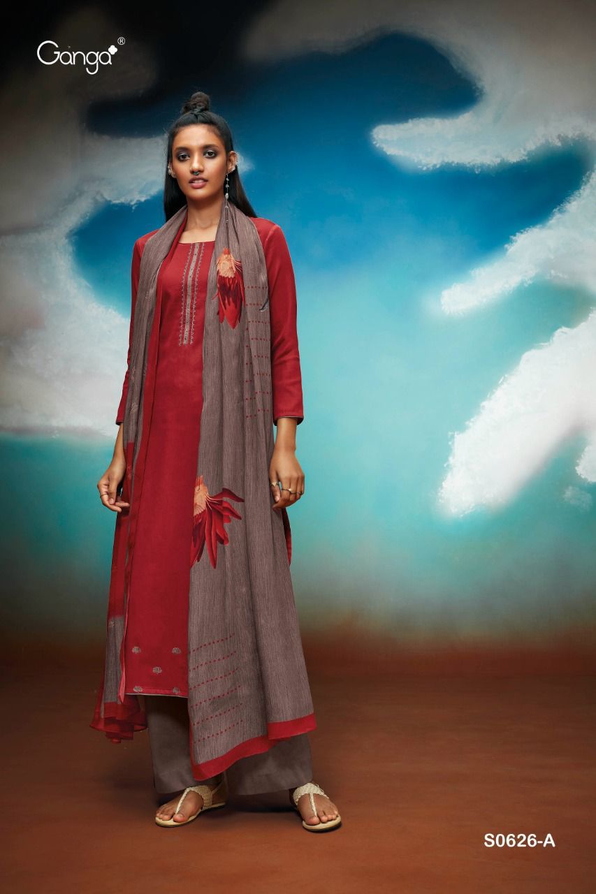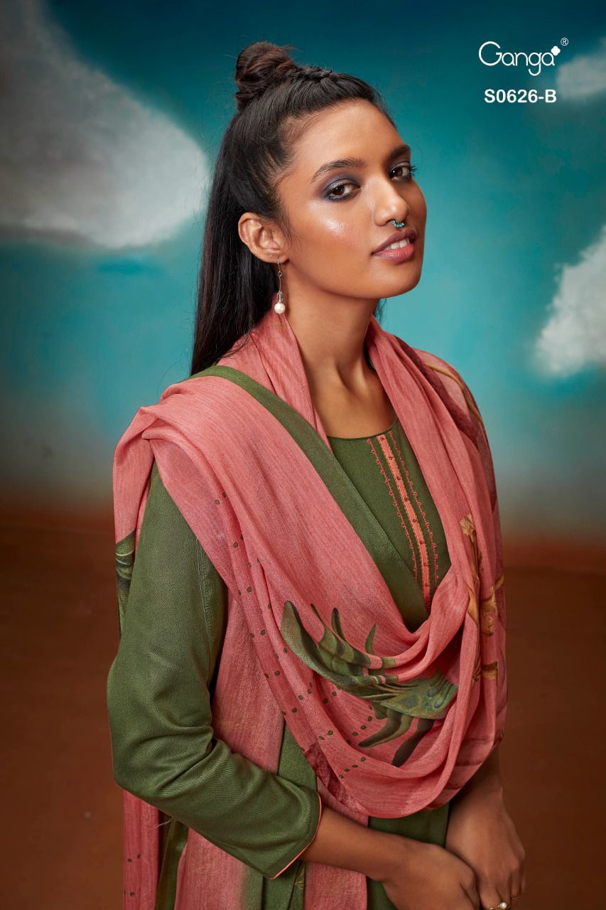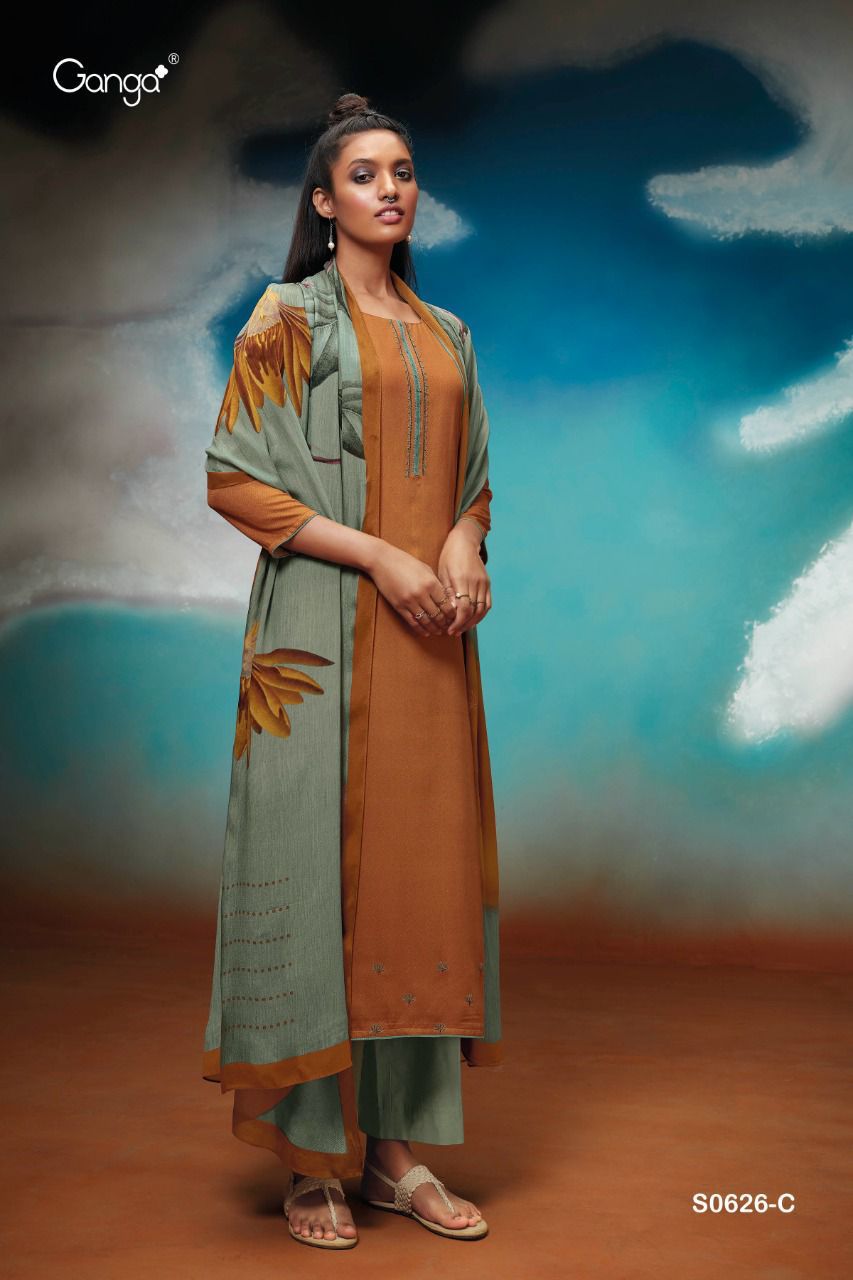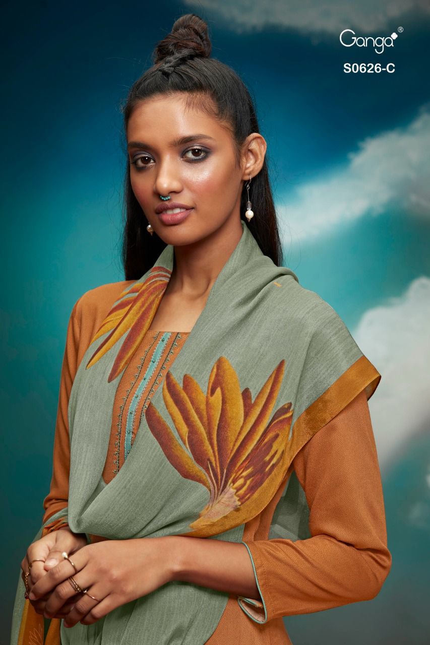 *GANGA* AMAYA 626 *WOOL DOBBY PRINTED WITH EMBROIDERY & HANDWORK* |