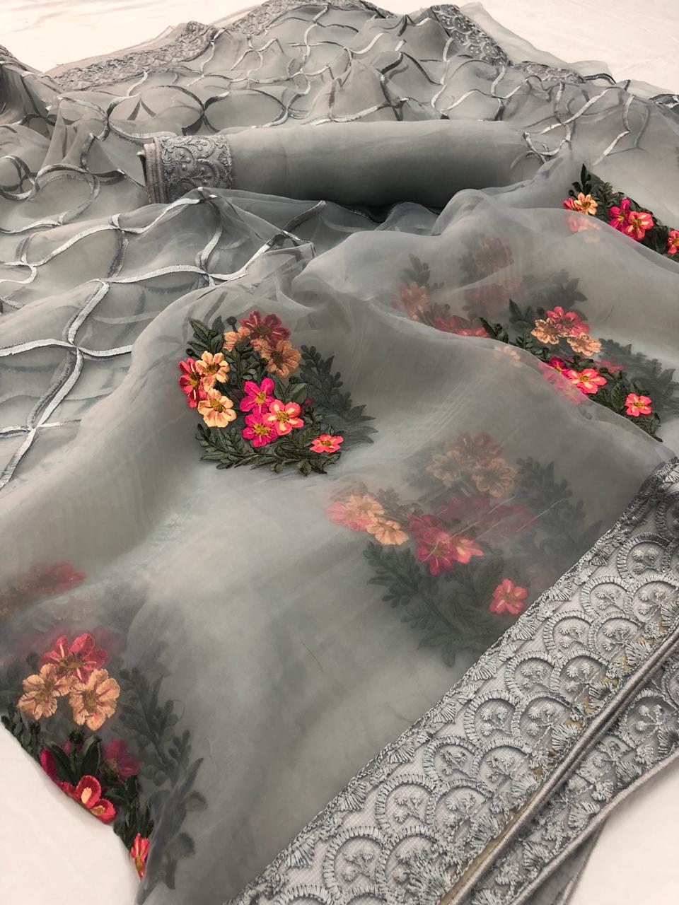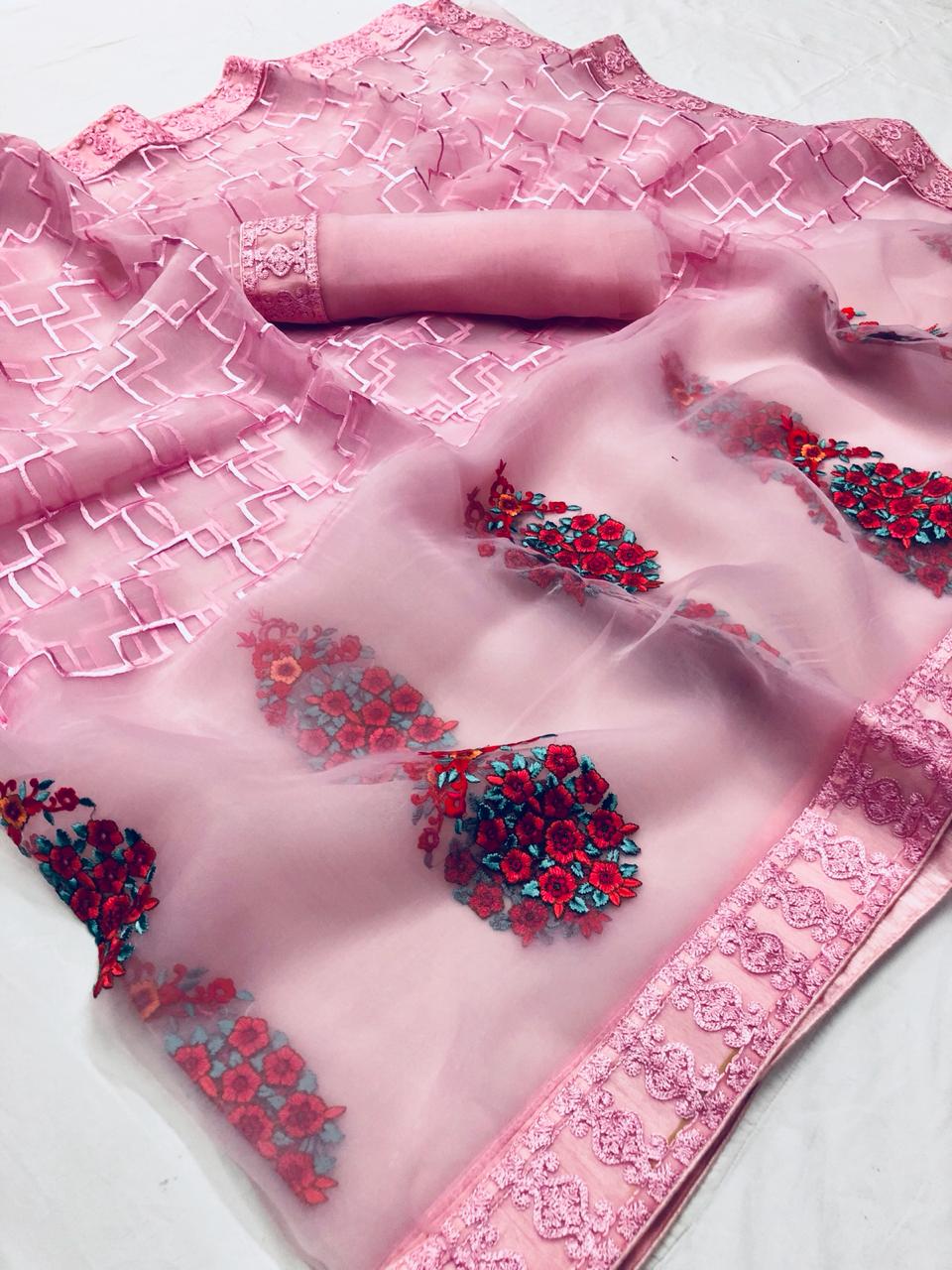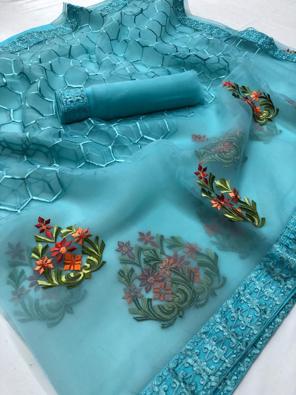 Amayra By Lt Fabrics Deaigner Organza Embroidery Saree Collection Wholesale Dealer Surat