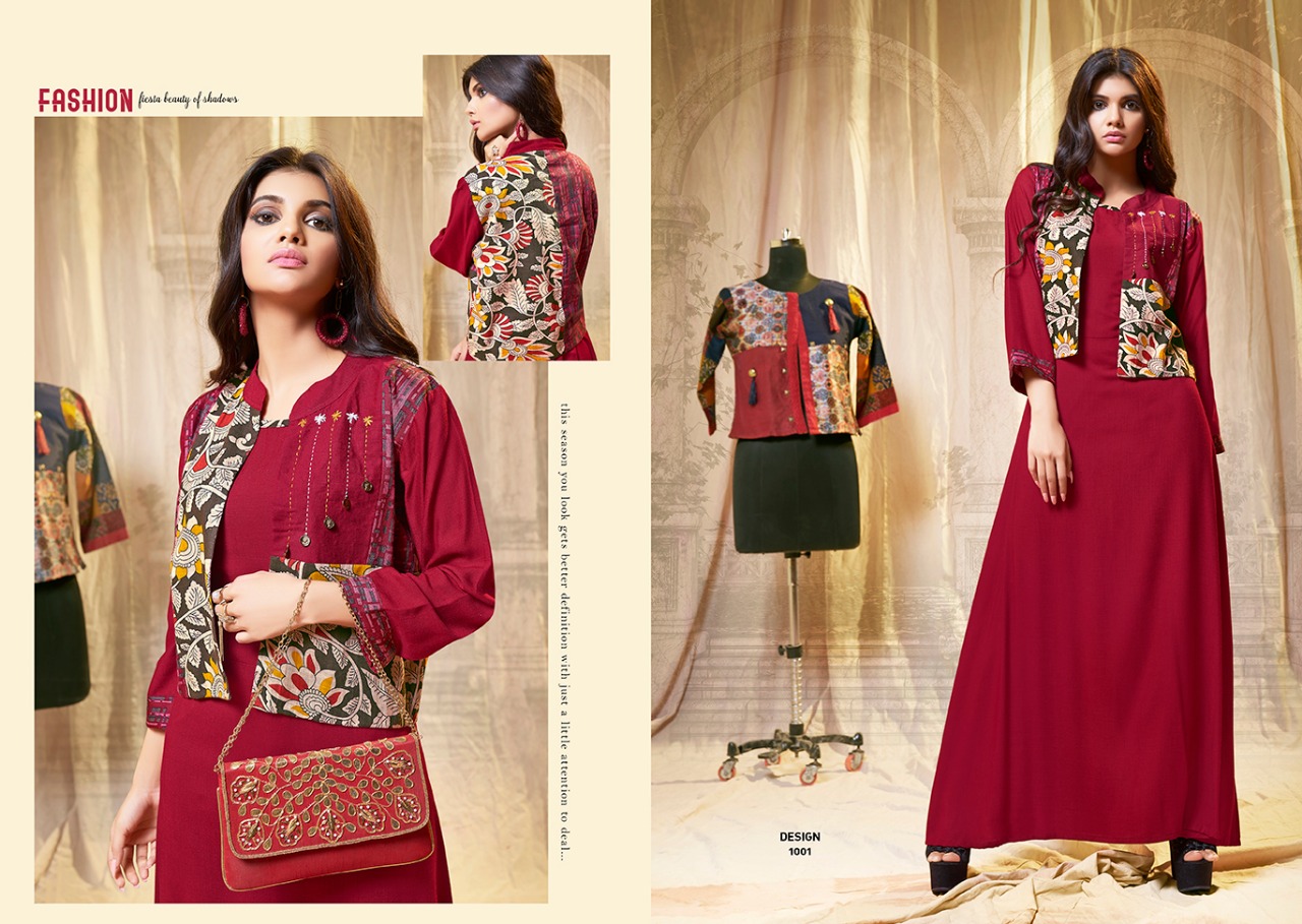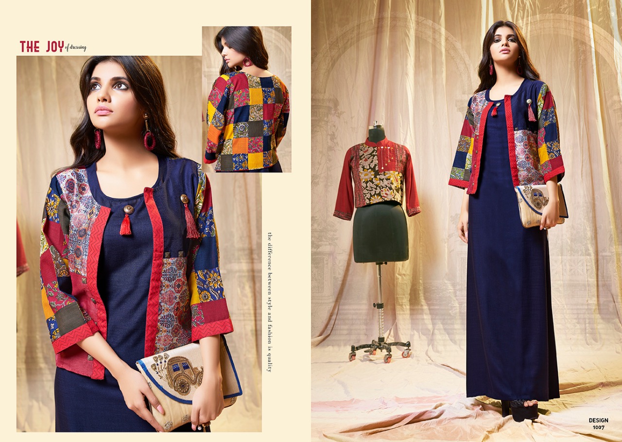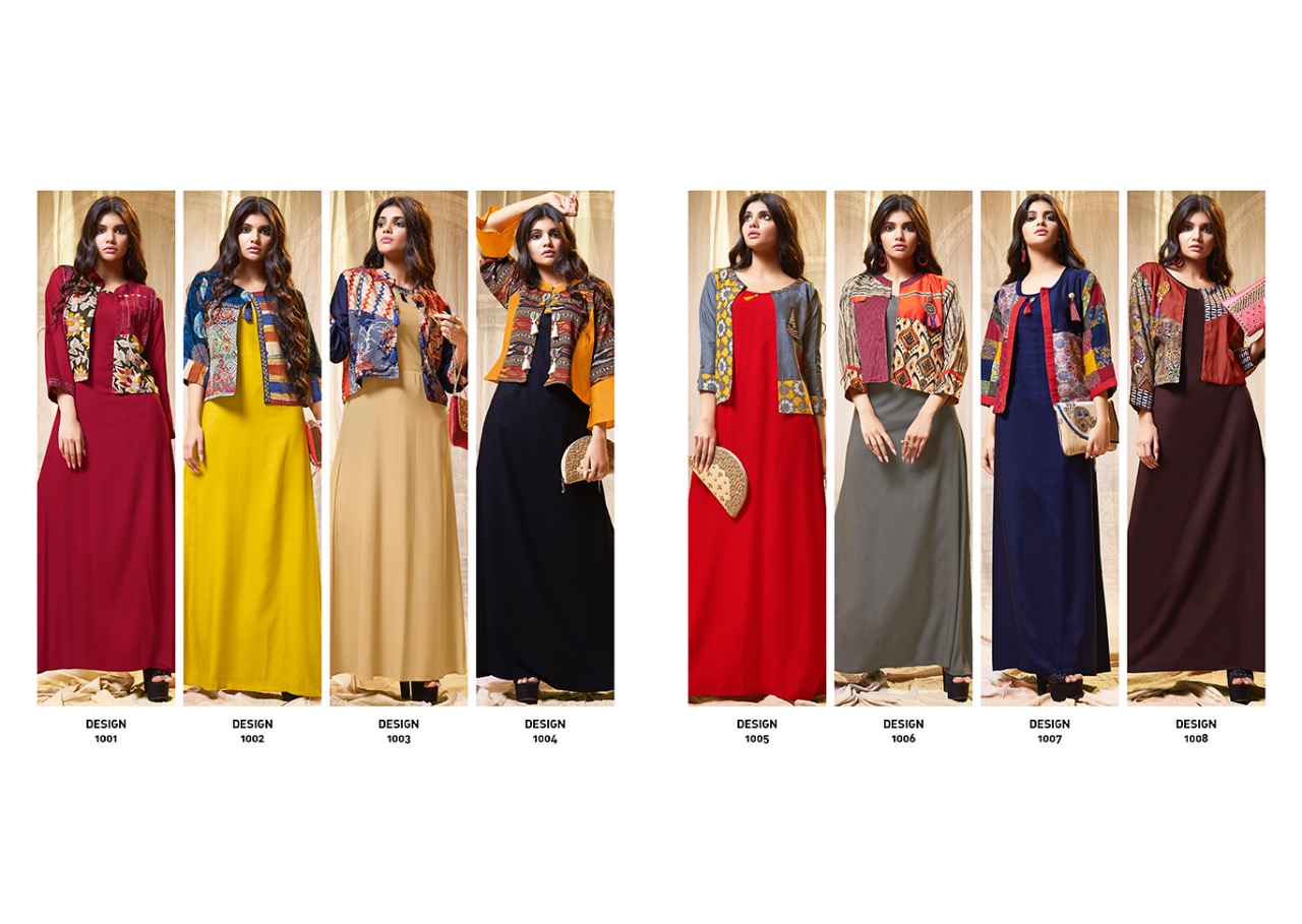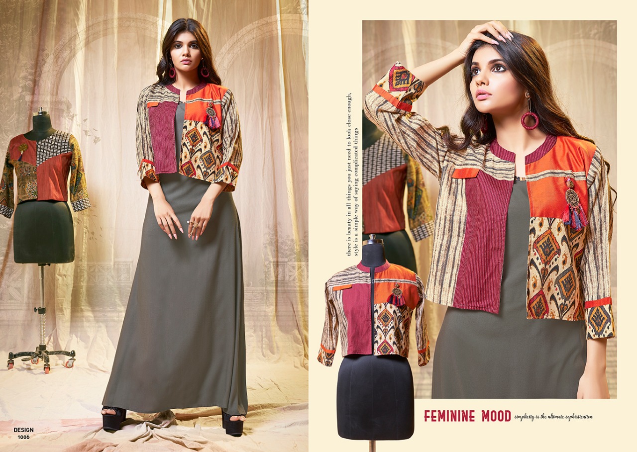 Amaze By S More Fashion Reyon Slub Gown Style Kurtis With Printed Designer Jacket Wholesale Supplier And Trader Nitya Nx Gujarat
