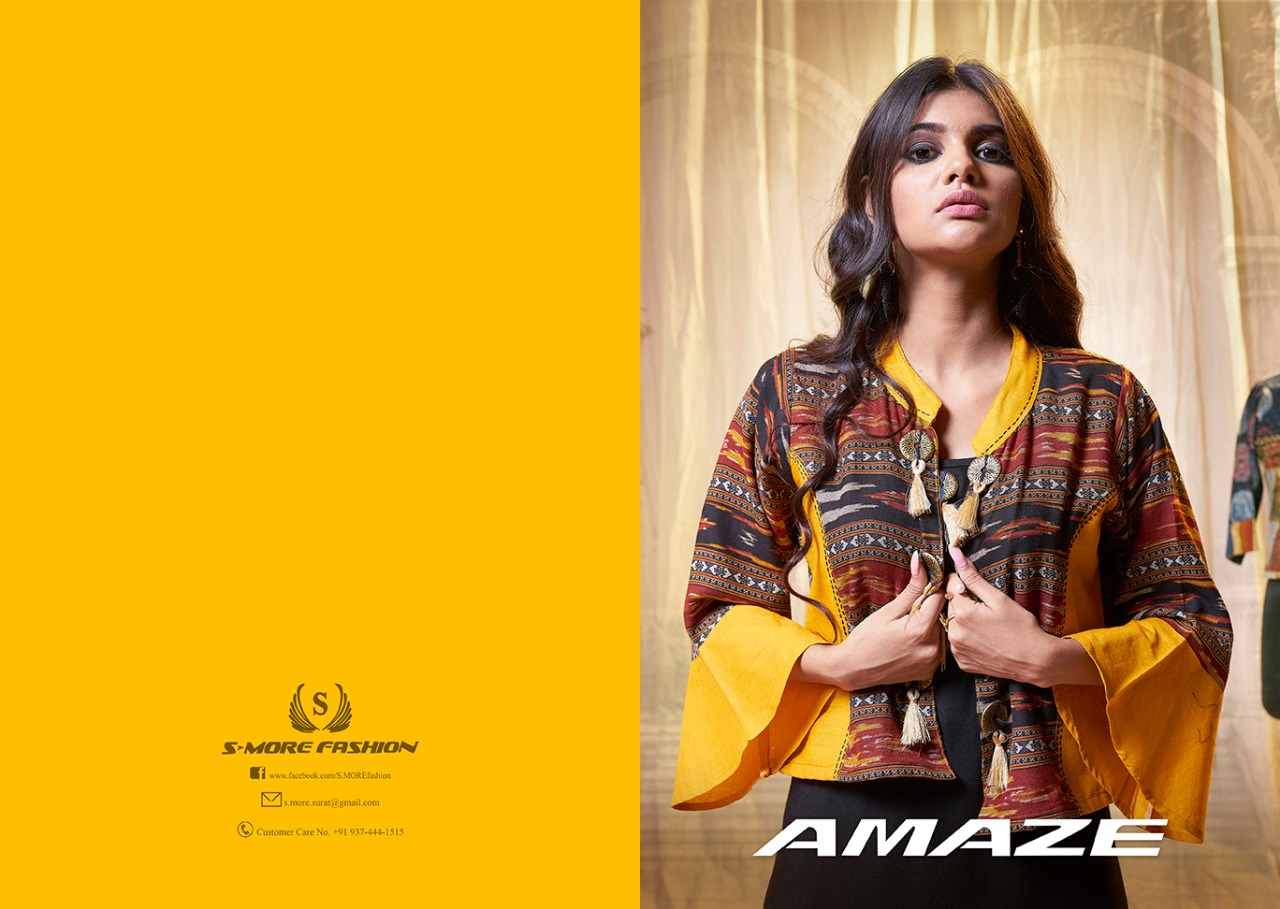 Buy Online Amaze By S More Fashion Reyon Slub Gown Style Kurtis With Printed Designer Jacket Wholesale Supplier And Trader Nitya Nx Gujarat 8 Pcs of Full Catalogue at Wholesale Price. Looking for Amaze By S More Fashion Reyon Slub Gown Style Kurtis With Printed Designer Jacket Wholesale Supplier And Trader Nitya Nx Gujarat Full Catalouge at Best Price? Buy Now Amaze By S More Fashion Reyon Slub Gown Style Kurtis With Printed Designer Jacket Wholesale Supplier And Trader Nitya Nx Gujarat at Wholesale Rate of Rs 5000 with Total 8 Pcs from authroized dealer and supplier of S MORE FASHION Brand. Cost of Each piece is just only Rs 625 which is very low and affordable price to resale the product in your retail store ,This is Surat based Wholesale Supplier & Dealer of S MORE FASHION Brand. Click on Brand name to Know more about S MORE FASHION Brand's products.Call or Whatsapp on 9898838984 for booking or enquiry